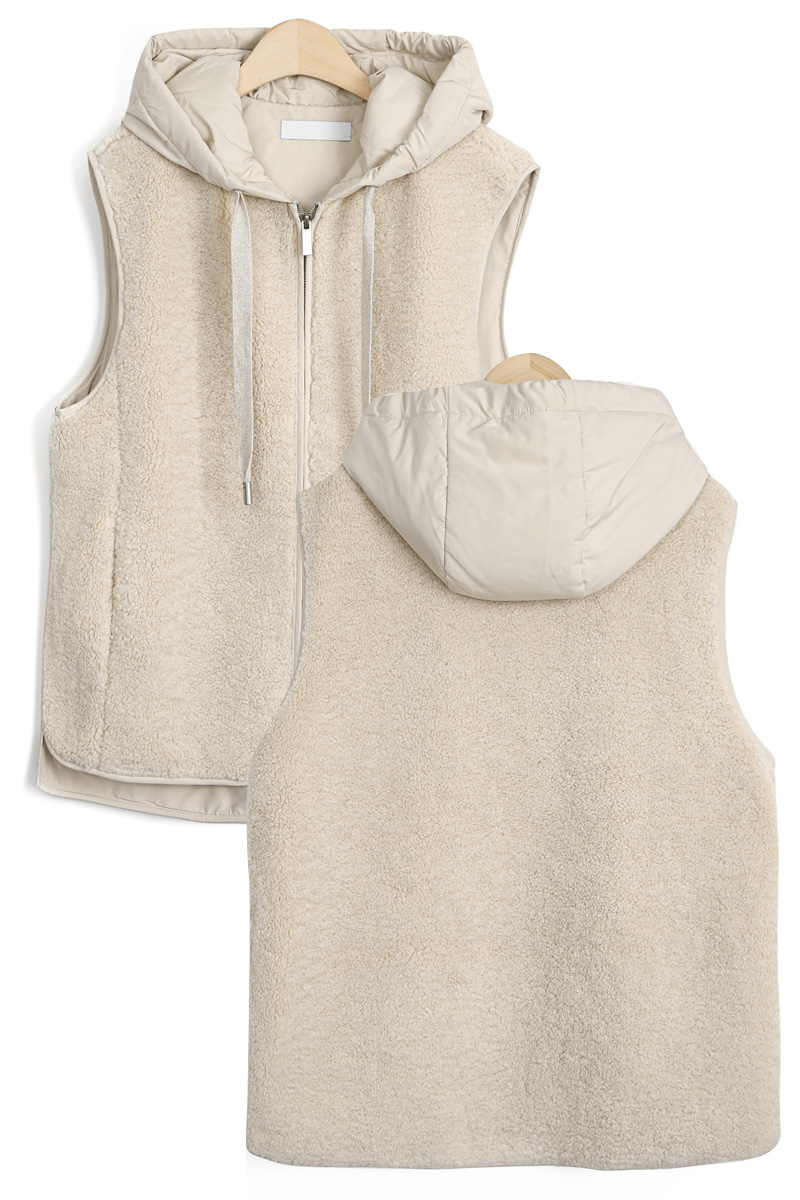 VEST199 양털 후드 베스트 ₩115,000 ₩106,000 뽀글뽀글 부드러운 터치감부터 감동하실거예요 :) 포근한 착용감 플러스 알파 부드러운 실루엣 연출하는 아우터급 조끼 시즌 리오더 완료