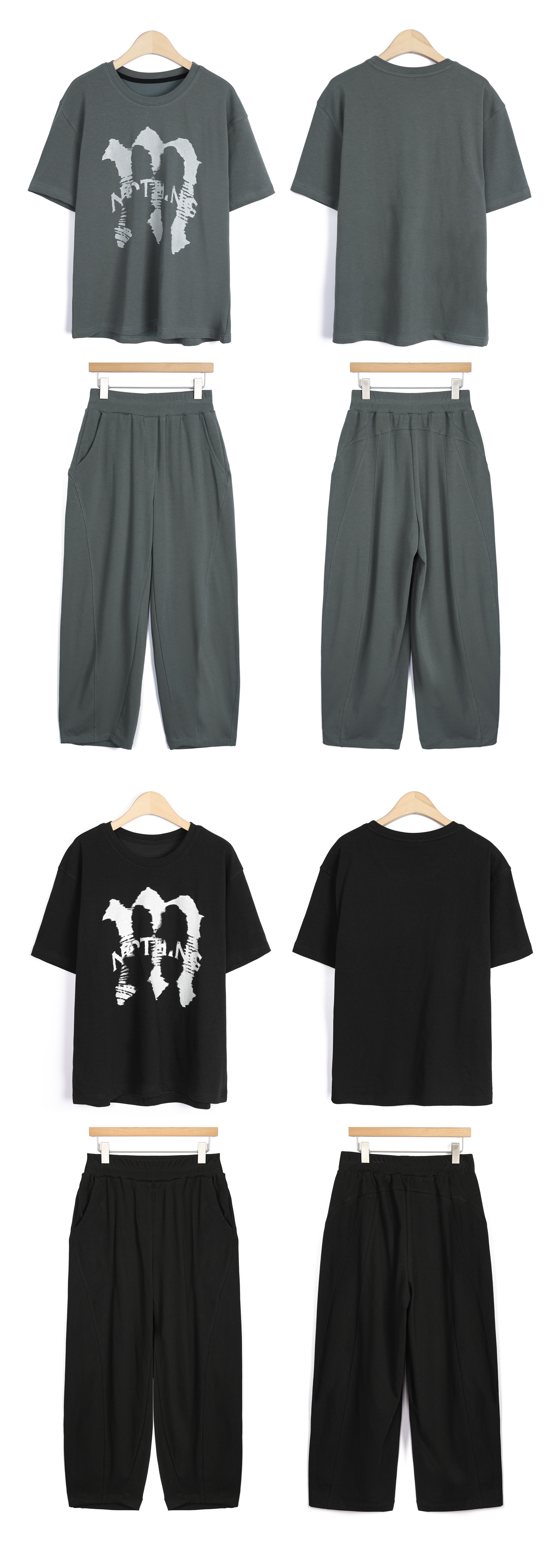 SET117 코튼 스판 와이드 트레이닝 셋업