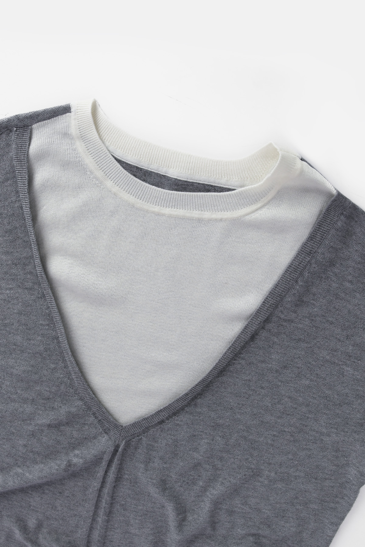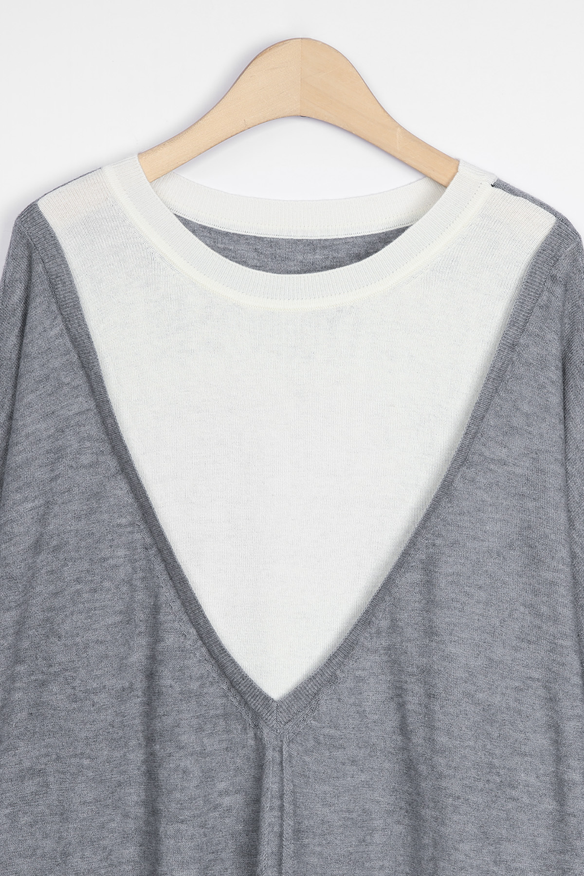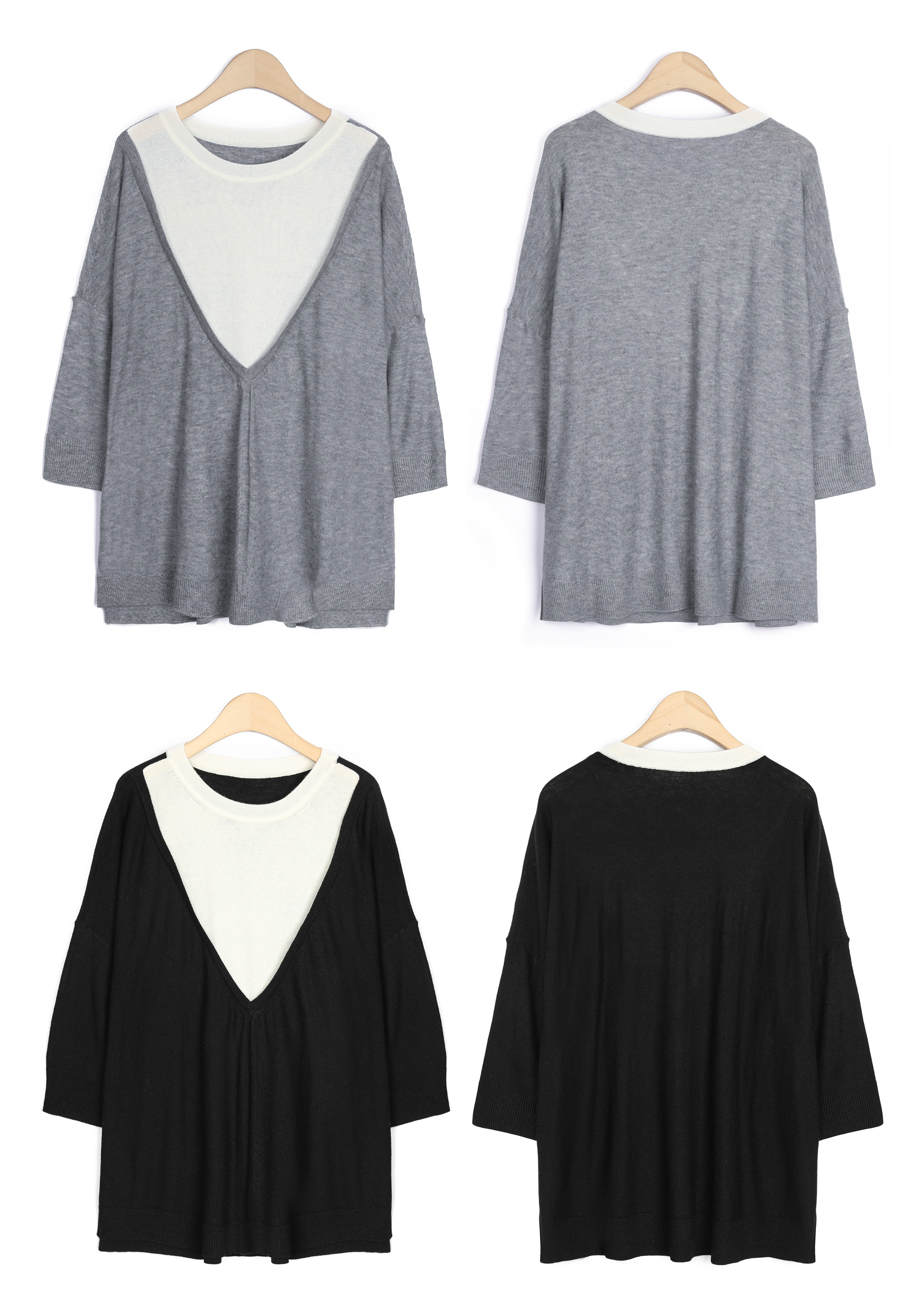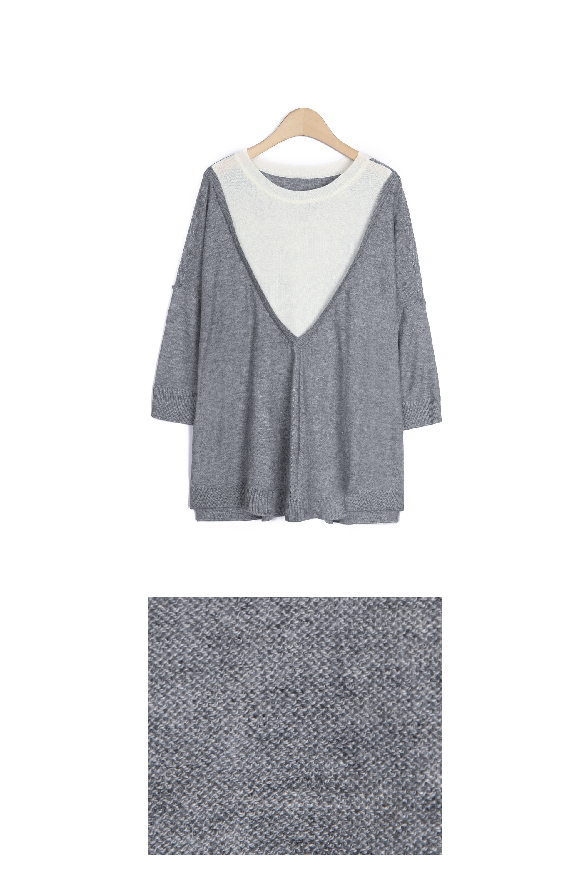 KNIT551 듀얼 프론트 레이어드 브이넥 7부 니트