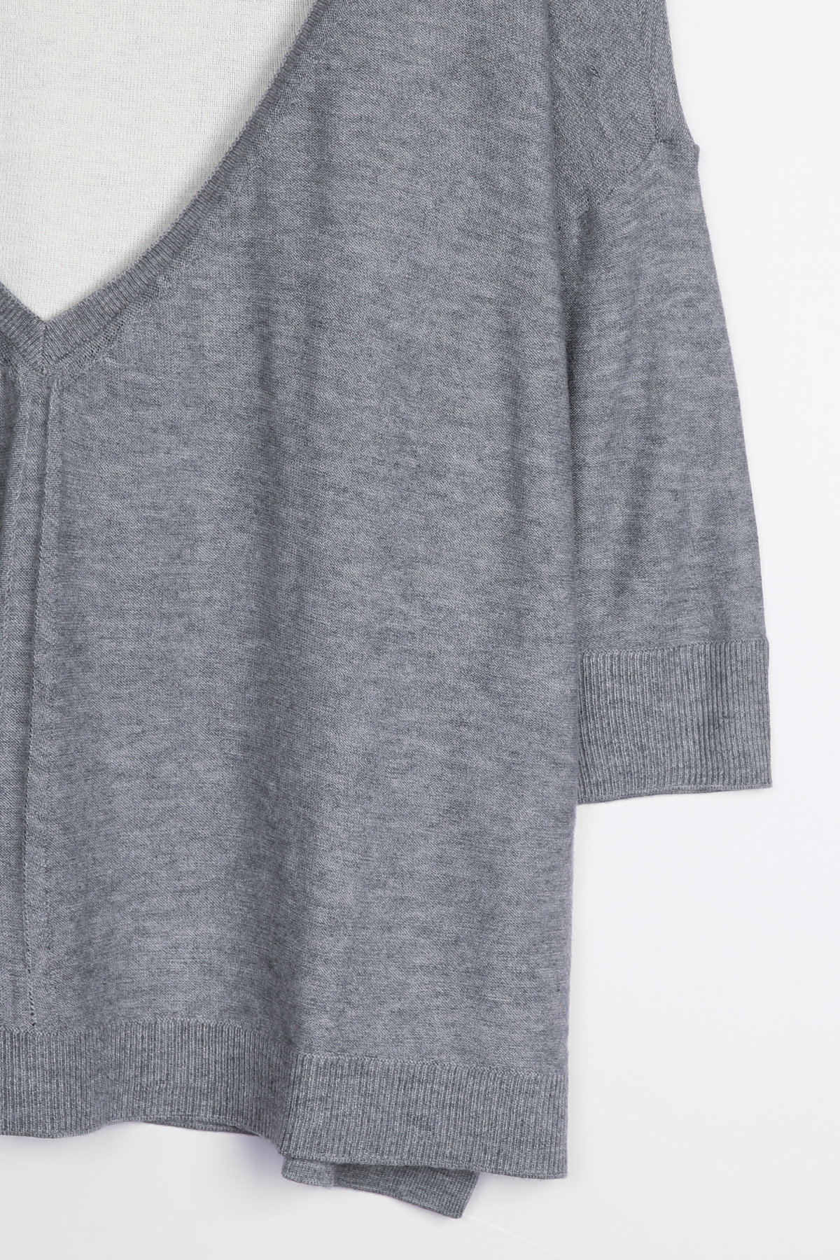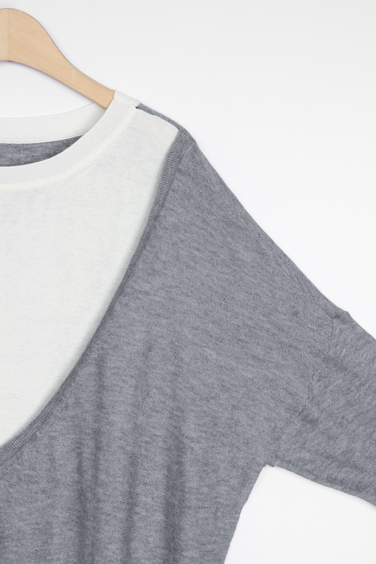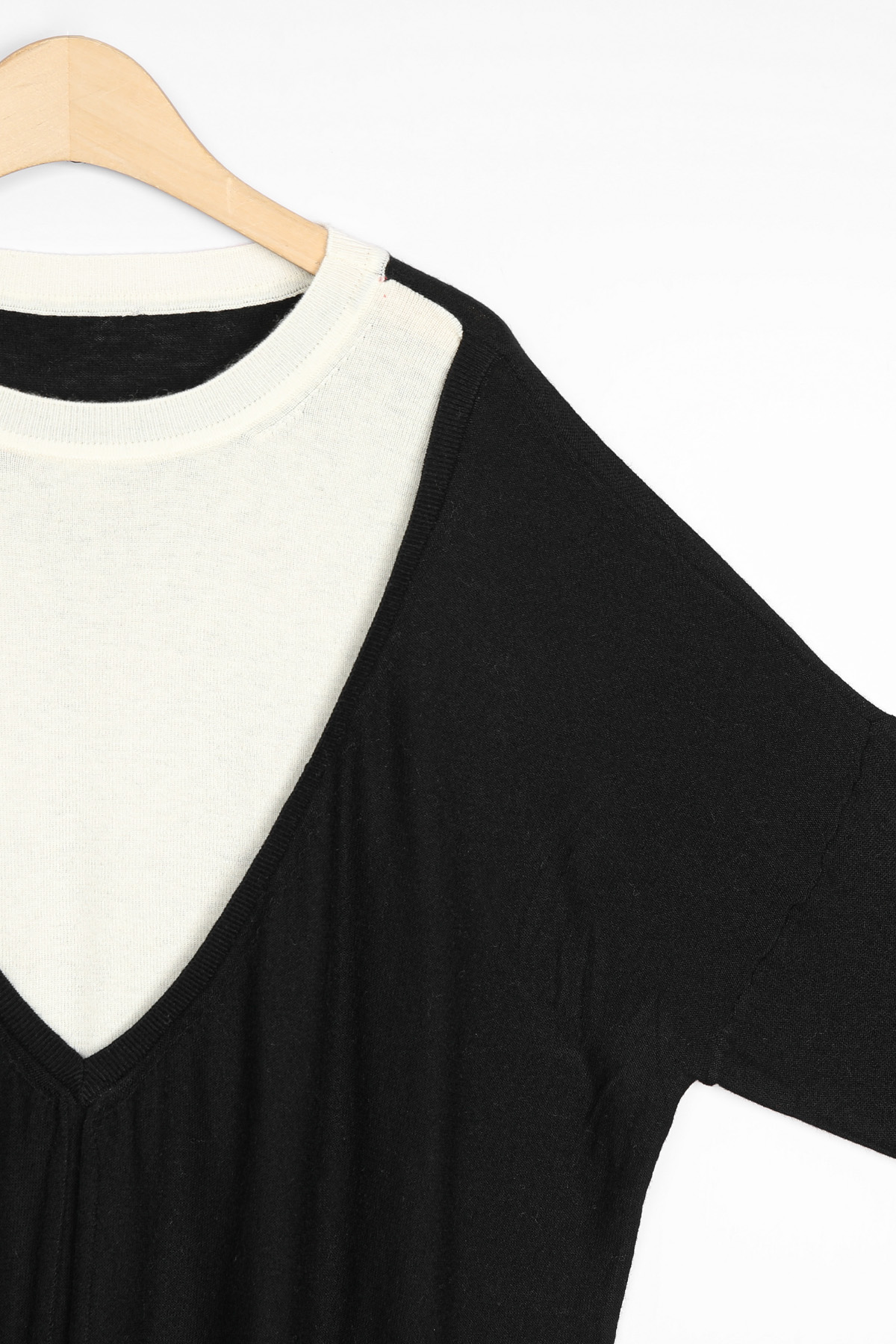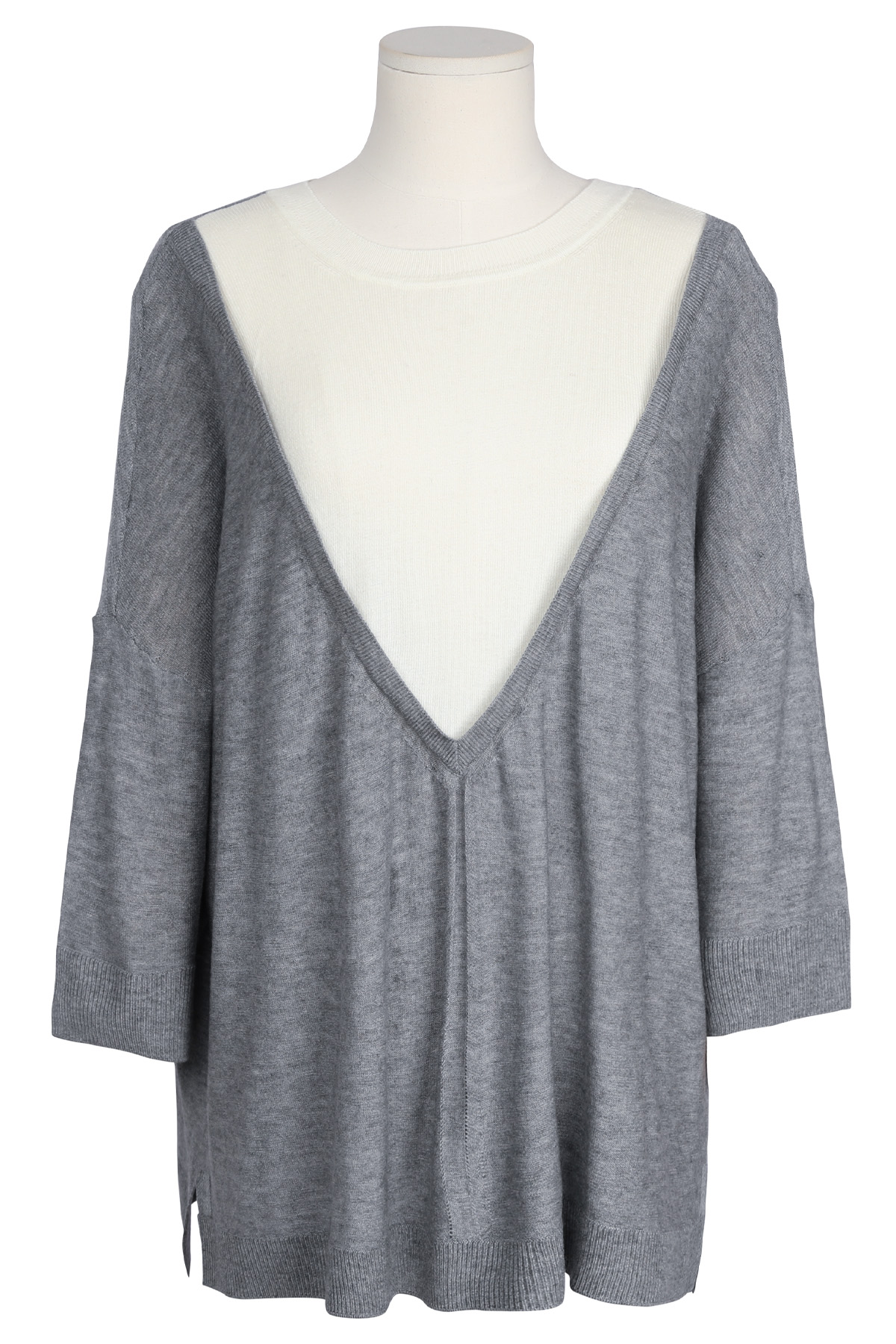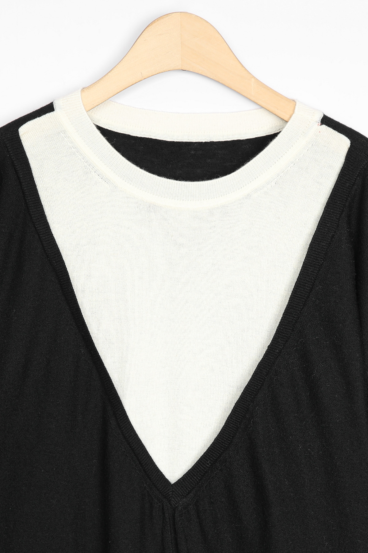 KNIT551 듀얼 프론트 레이어드 브이넥 7부 니트