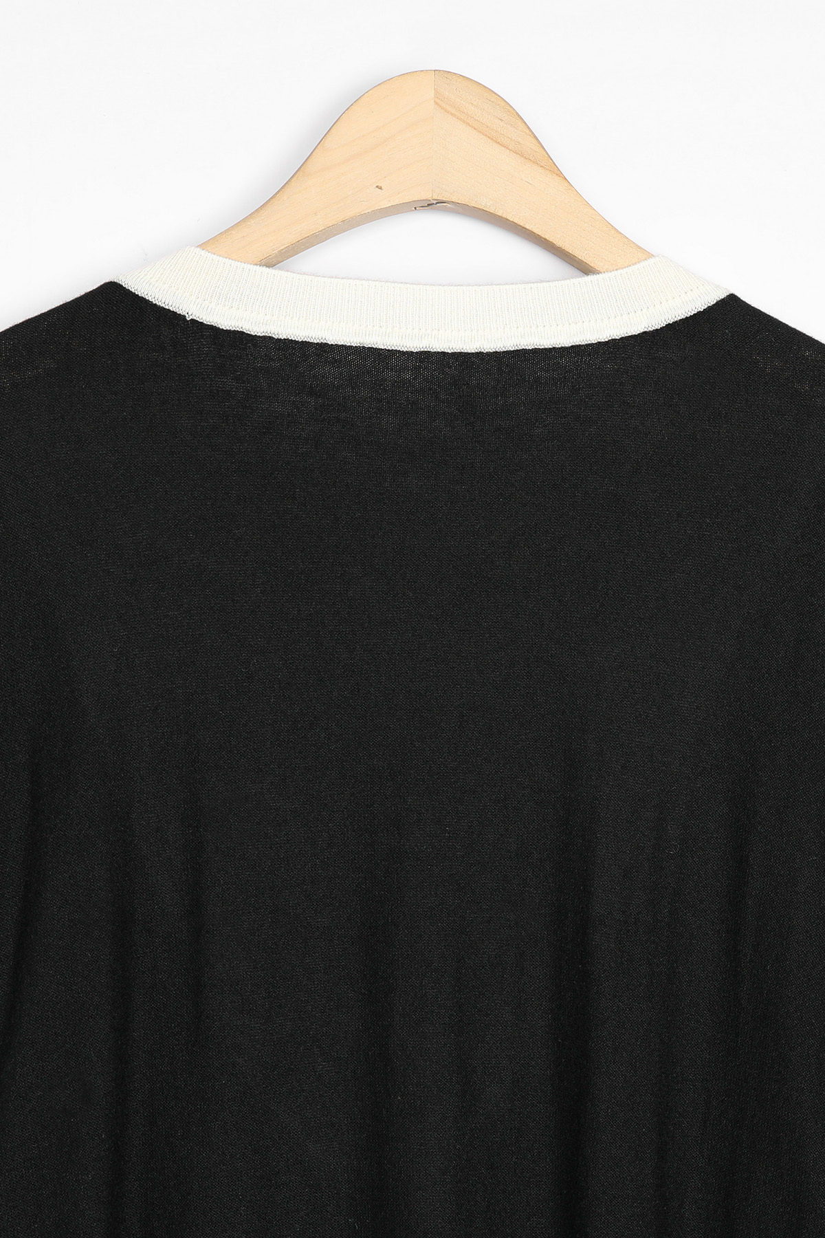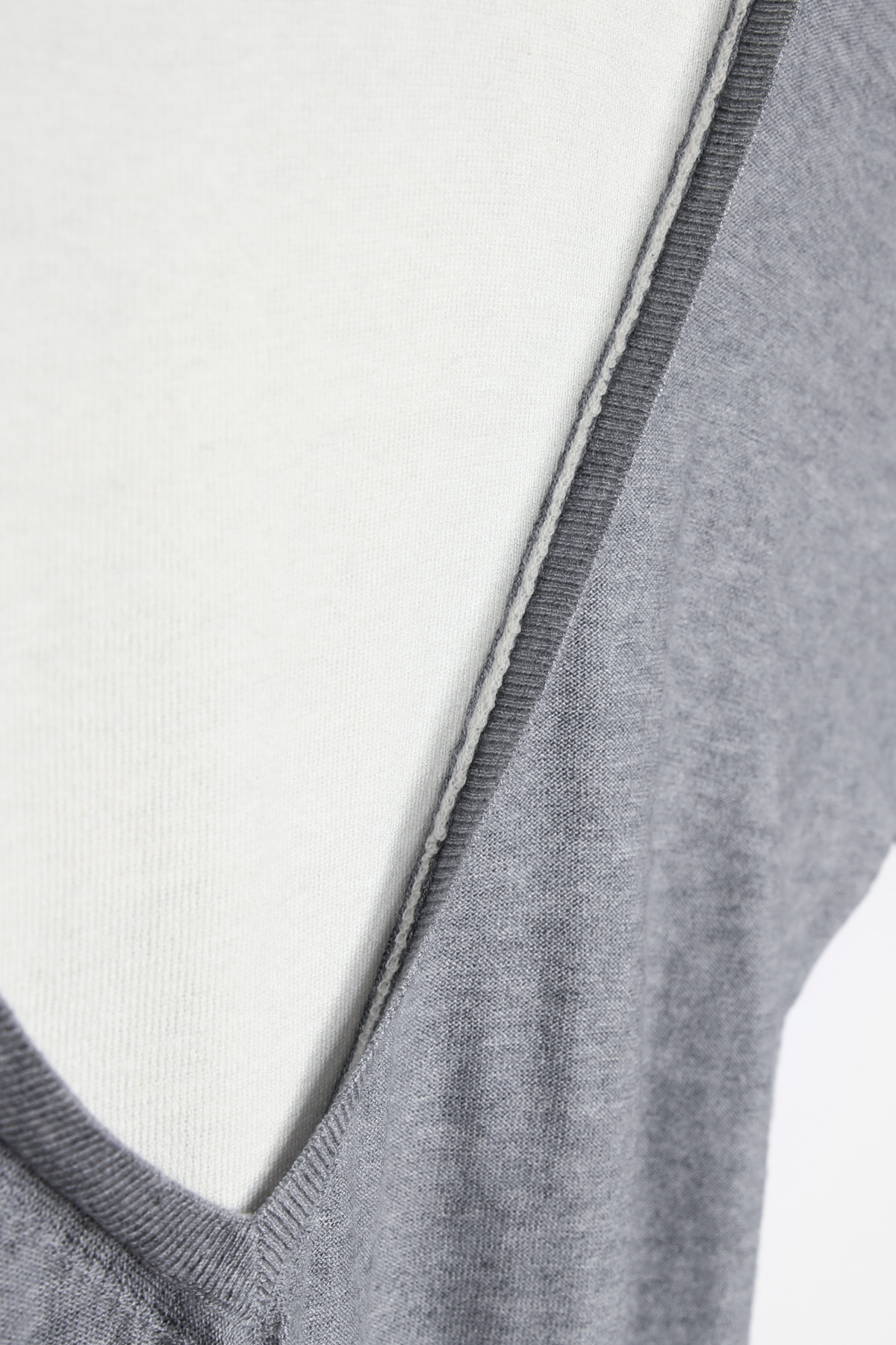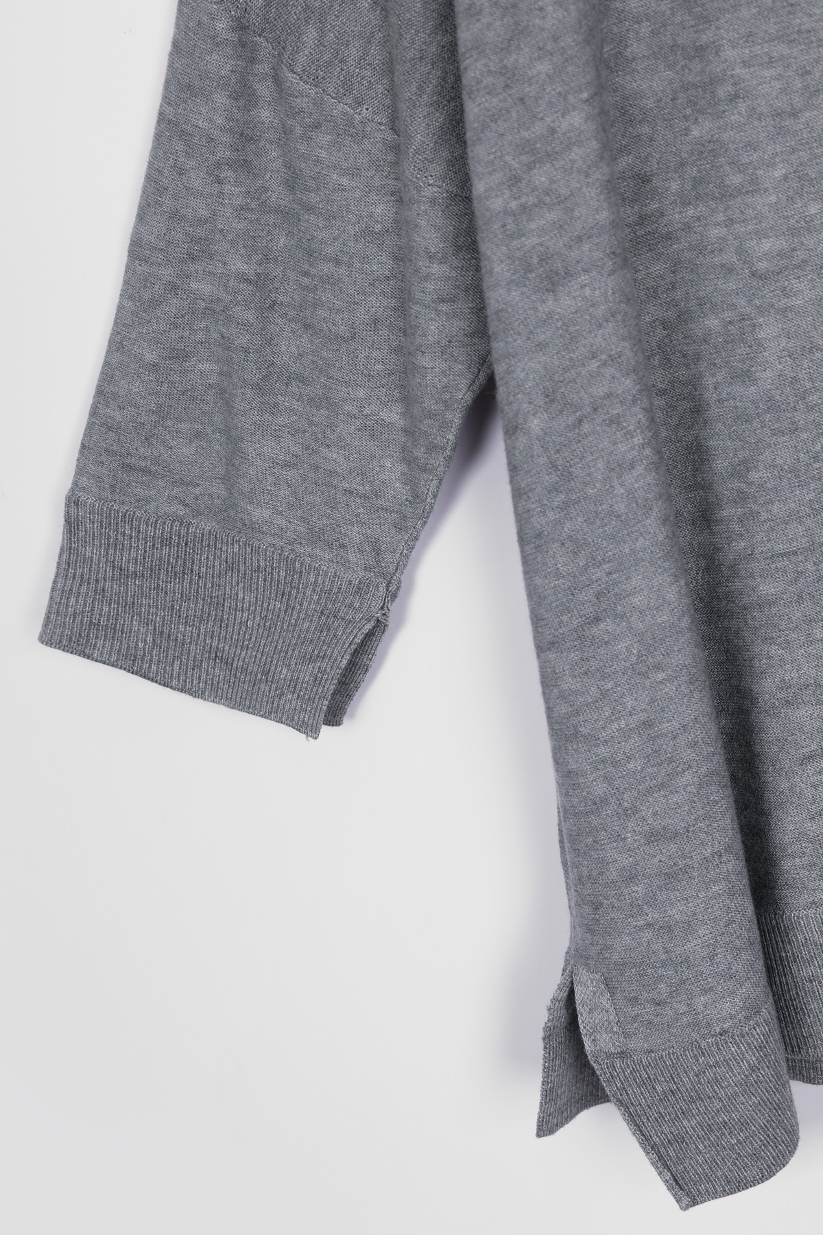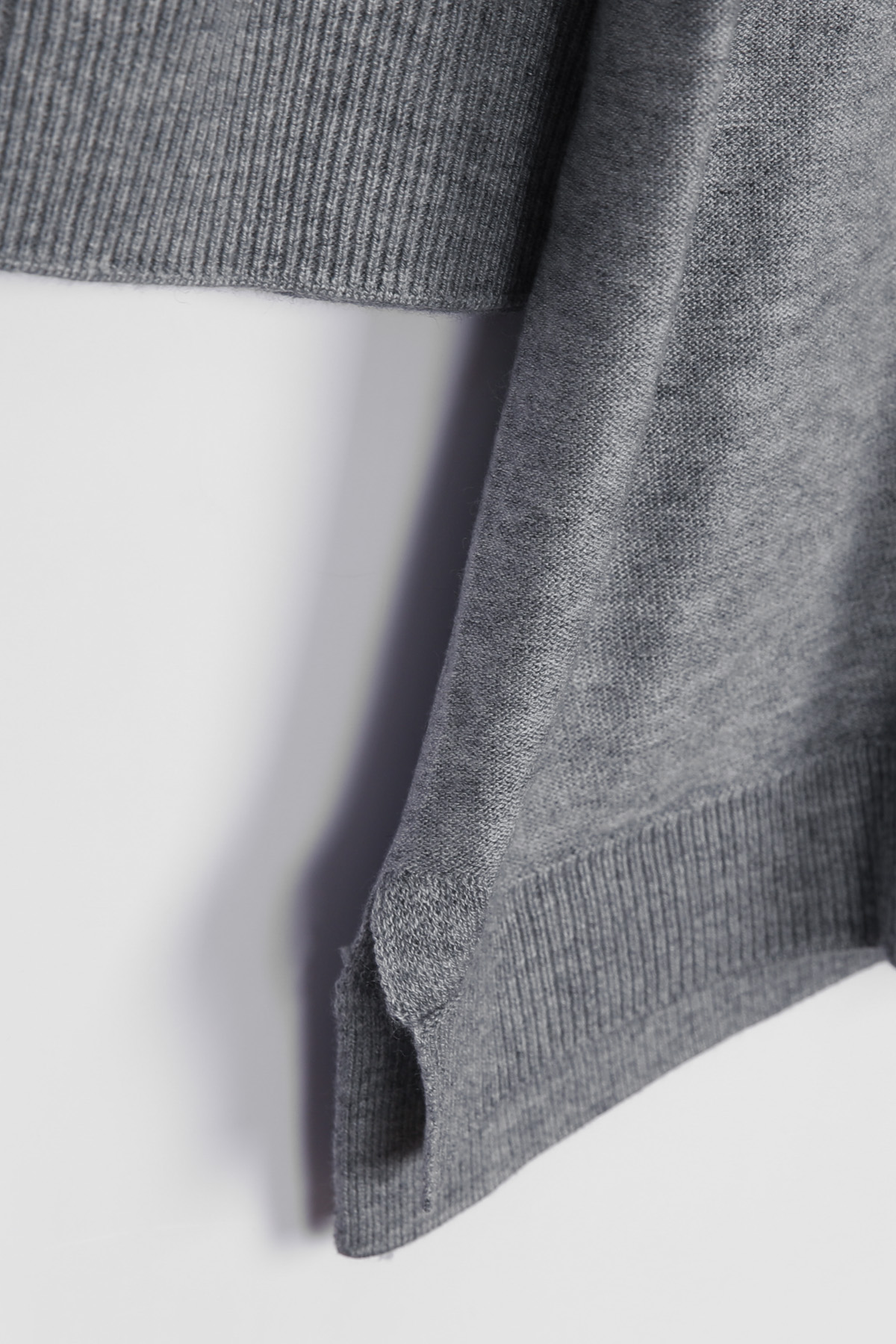 A Layered Look, Effortlessly Achieved 옷을 여러 겹 입지 않았는데도, 이 니트가 딱 그런 아이템! 라운드넥 슬리브리스 위에 레이어드한 듯한 구성으로 별도의 코디 없이도 만들어주는 디자인이랍니다. 과하지 않게,그러면서도 기본 니트와는 뭔가 다른 분명한 차이가 느껴져요 :) Layered Structure, Lightweight Comfort 이너를 따로 입은 것처럼 보이지만, 실제로는 목선 안쪽에 연결된 패널 구조로 ✔ 몸판 전체가 이중으로 겹쳐지지 않고 착용했을 때 무게감 없이 간절기 니트로서 가장 중요한 Rib Detail & Subtle Slits 소맷단(약 6cm), 밑단(앞 4cm / 뒤 5.5cm)은 전체 실루엣에 소매 안쪽과 밑단 사이드에는 ✔ 팔 움직임이 훨씬 자연스럽고 답답함 없이 여유 있는 착용감 디자인과 기능이 Deep V-Line, Defined Presence