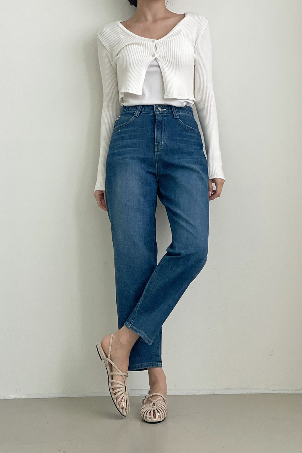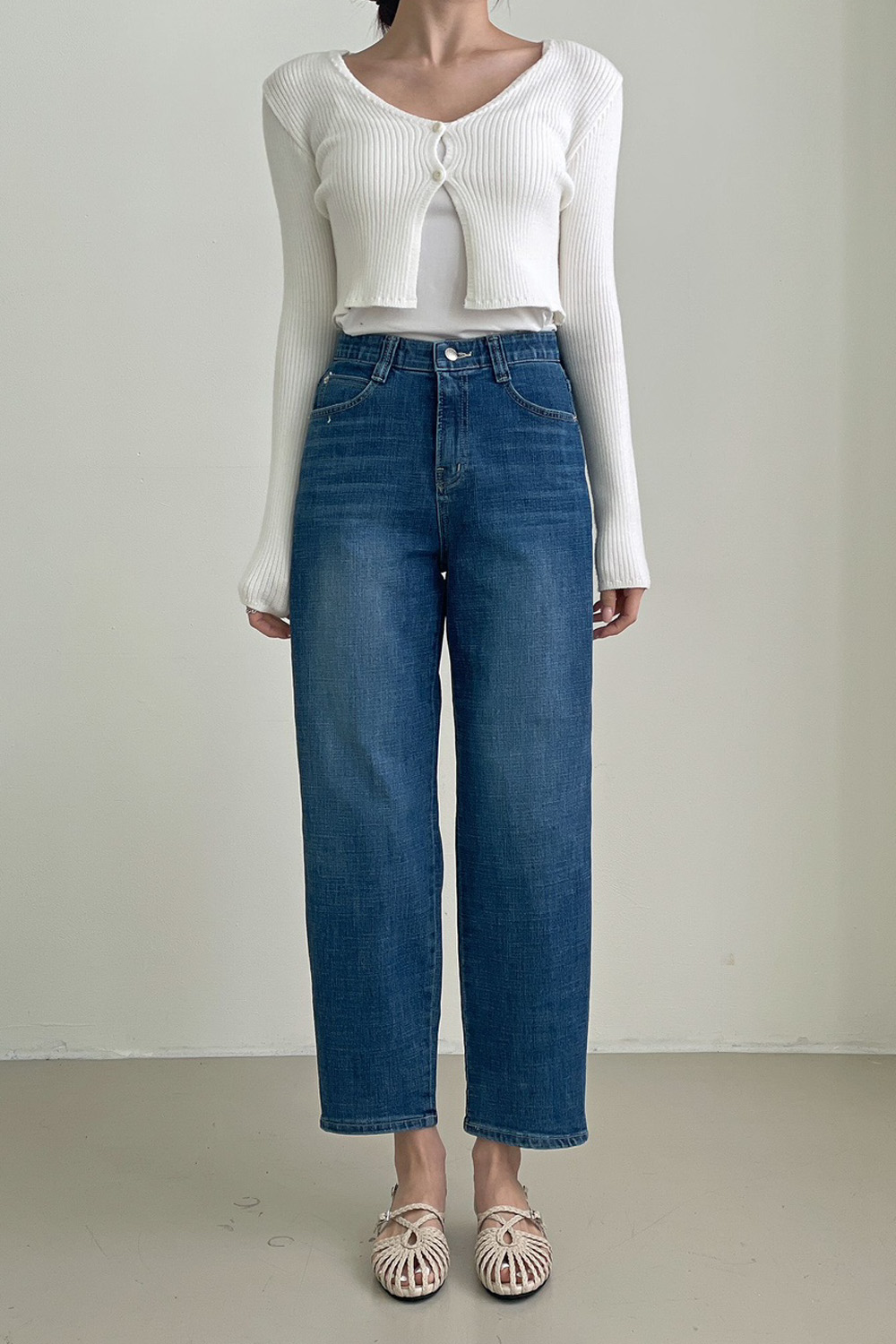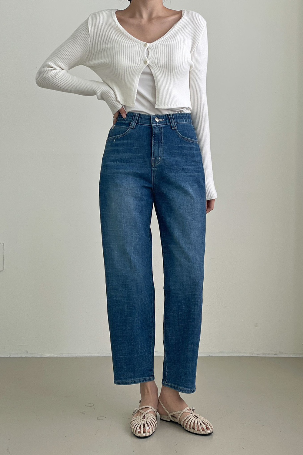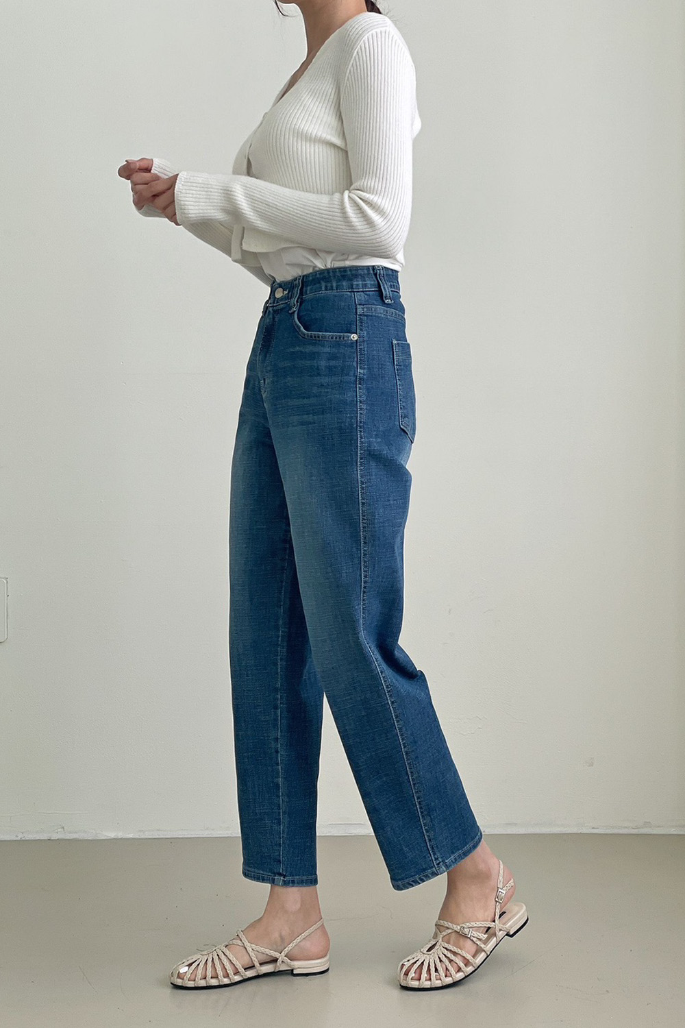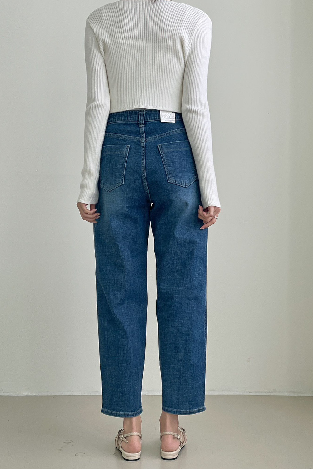 JEAN398 히든 밴딩 세미 보이핏 테이퍼드 데님