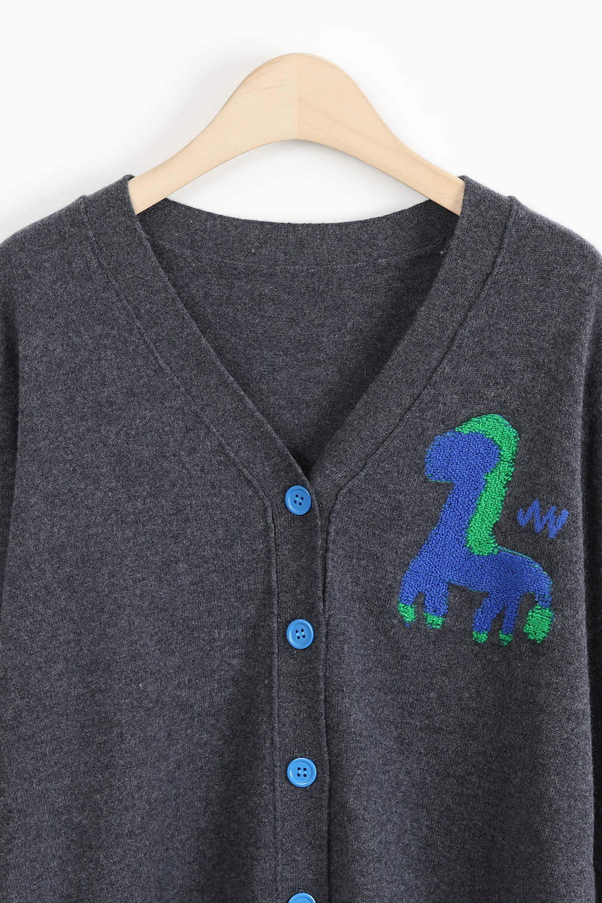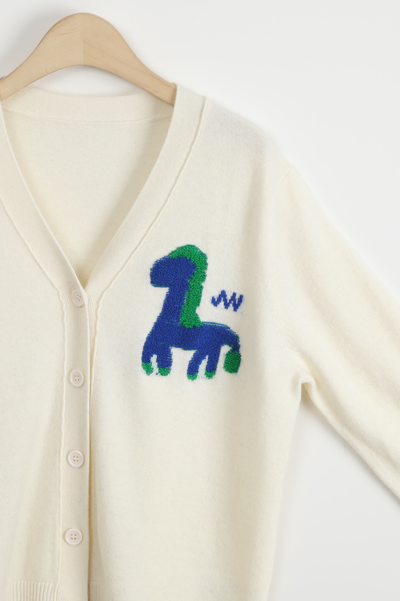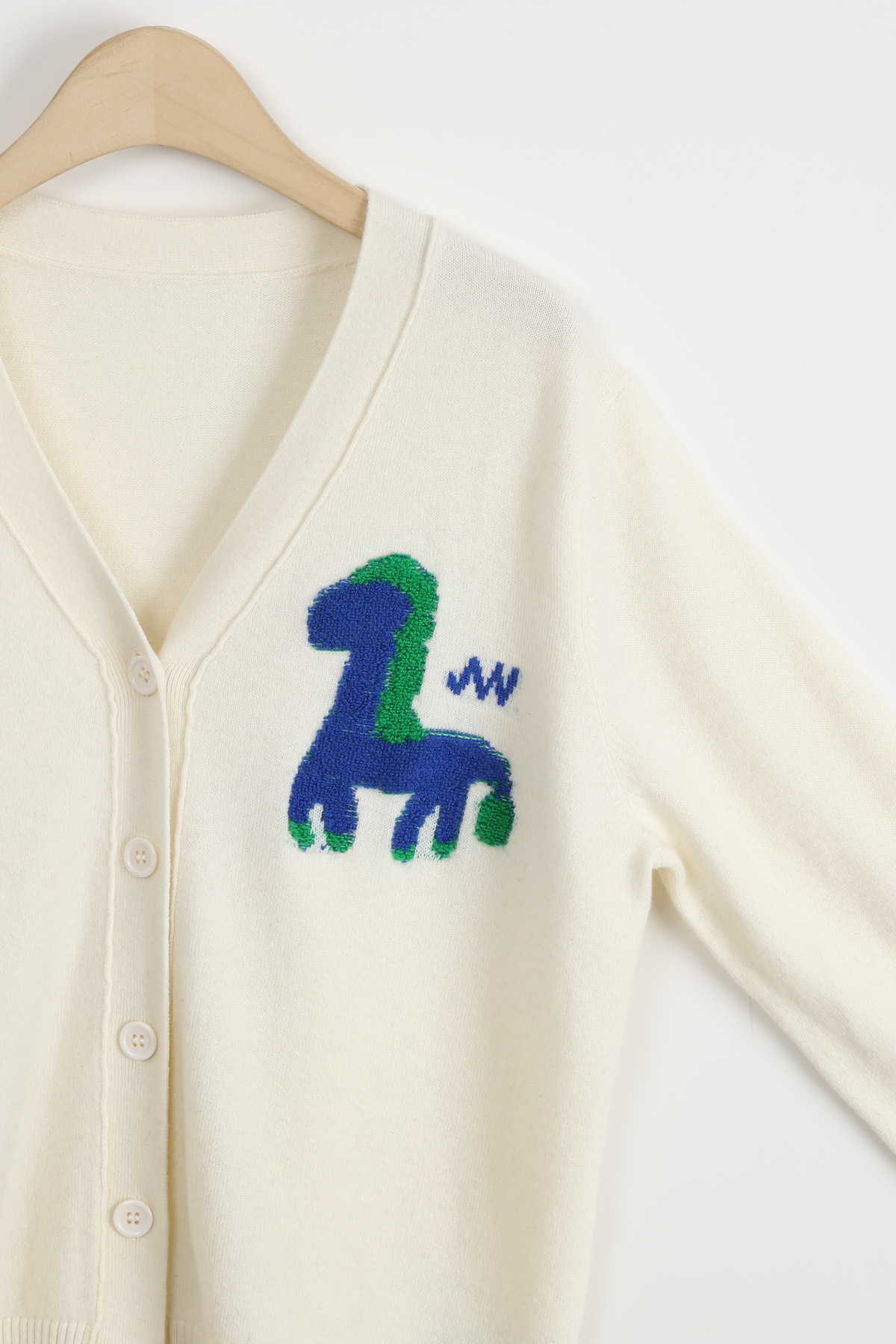 가슴 부분 부클퍼 질감을 살린 라마 패턴 포인트로
