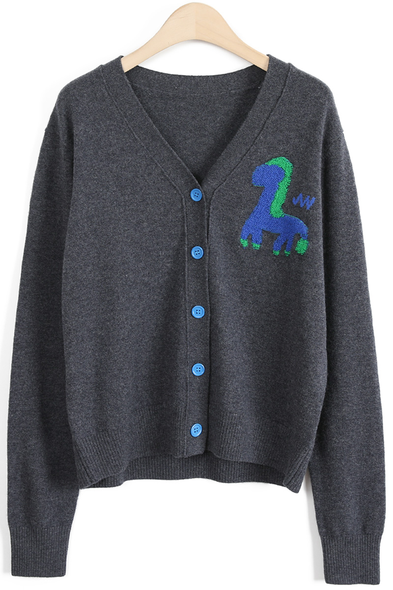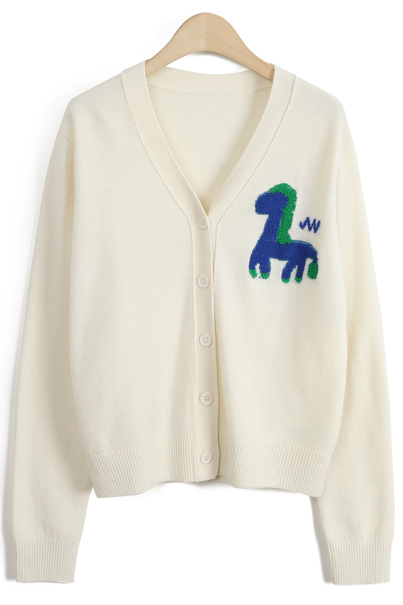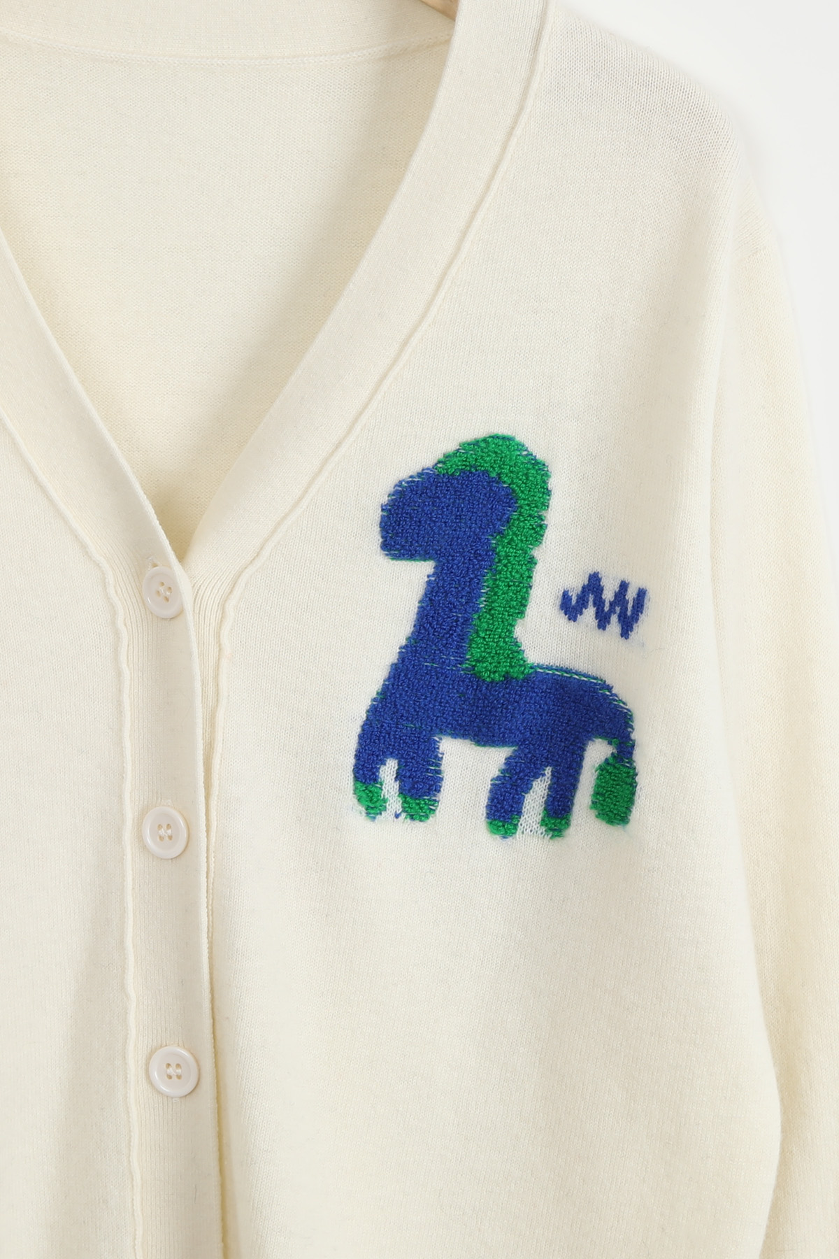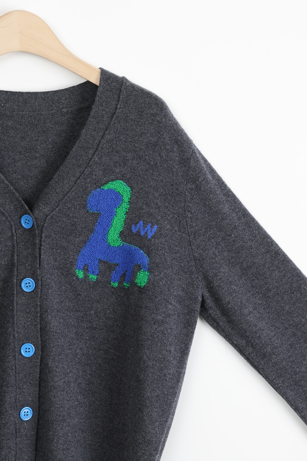 가슴 부분 부클퍼 질감을 살린 라마 패턴 포인트로