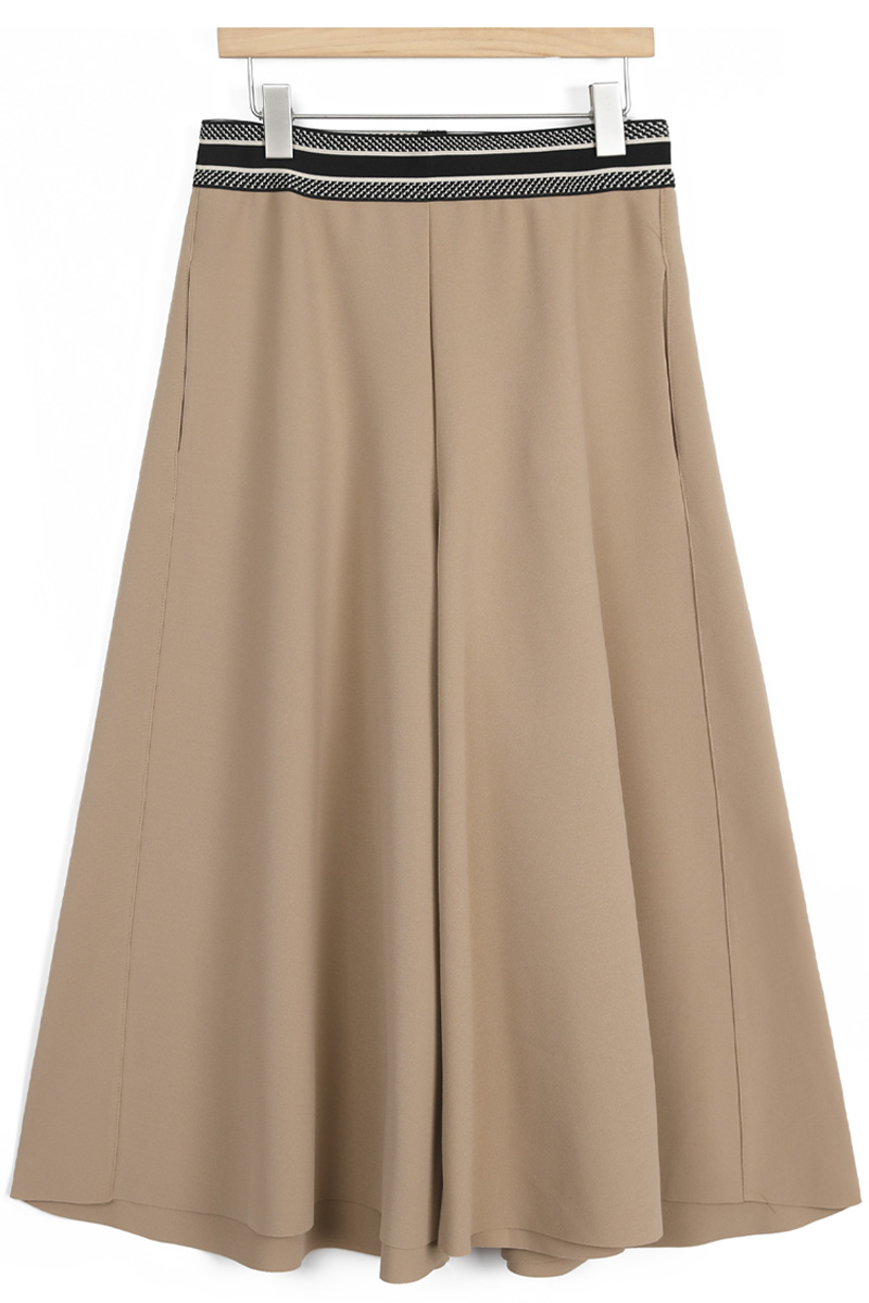 허리 밴딩선만 알맞게 피트되고 이하 밑단까지 플레어 A라인으로 연출되는 치마바지 핏이며총길이 뒷면 알다리 안정적으로 가리고앞면 정강이 중간 기장 가려요