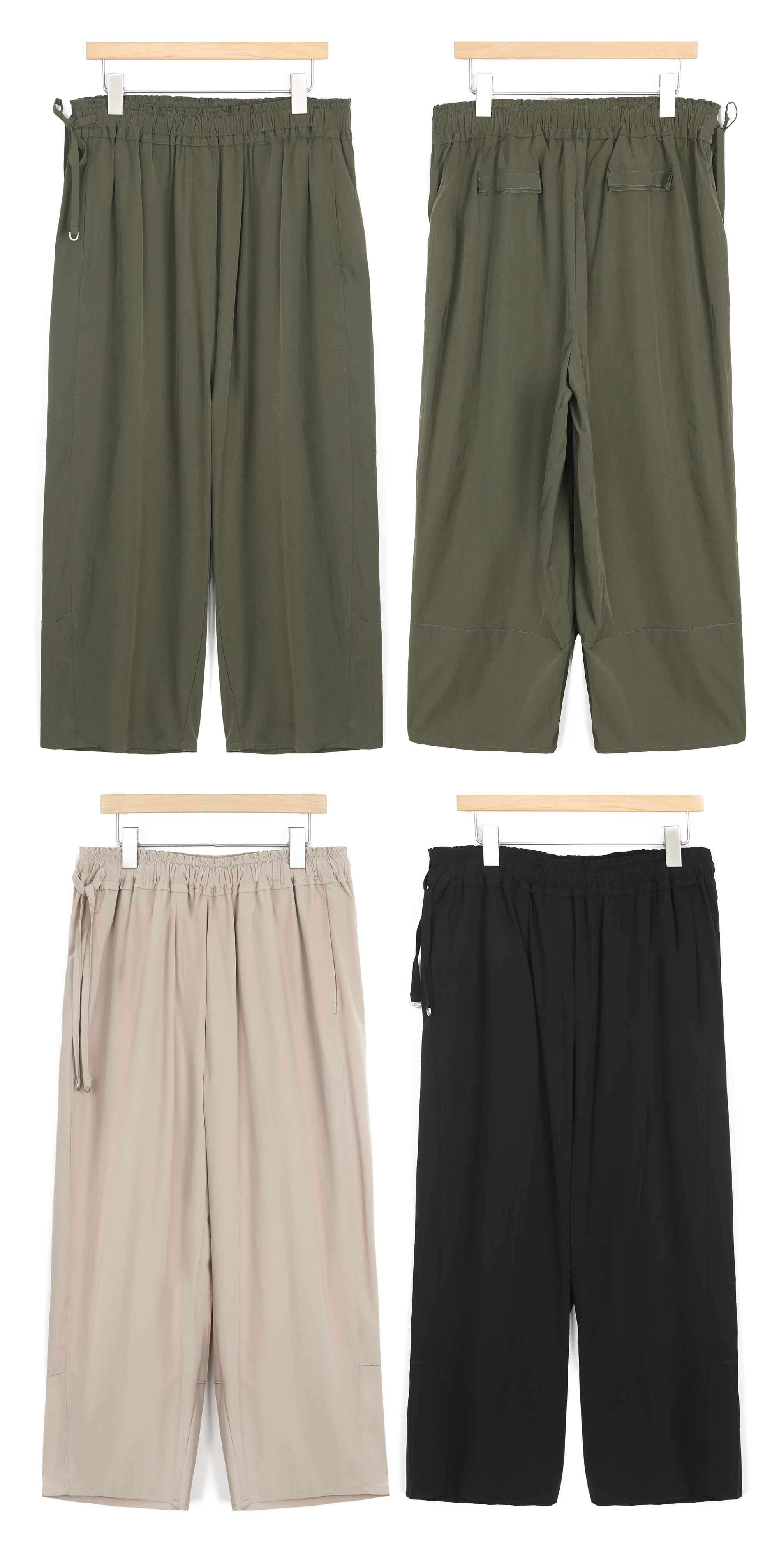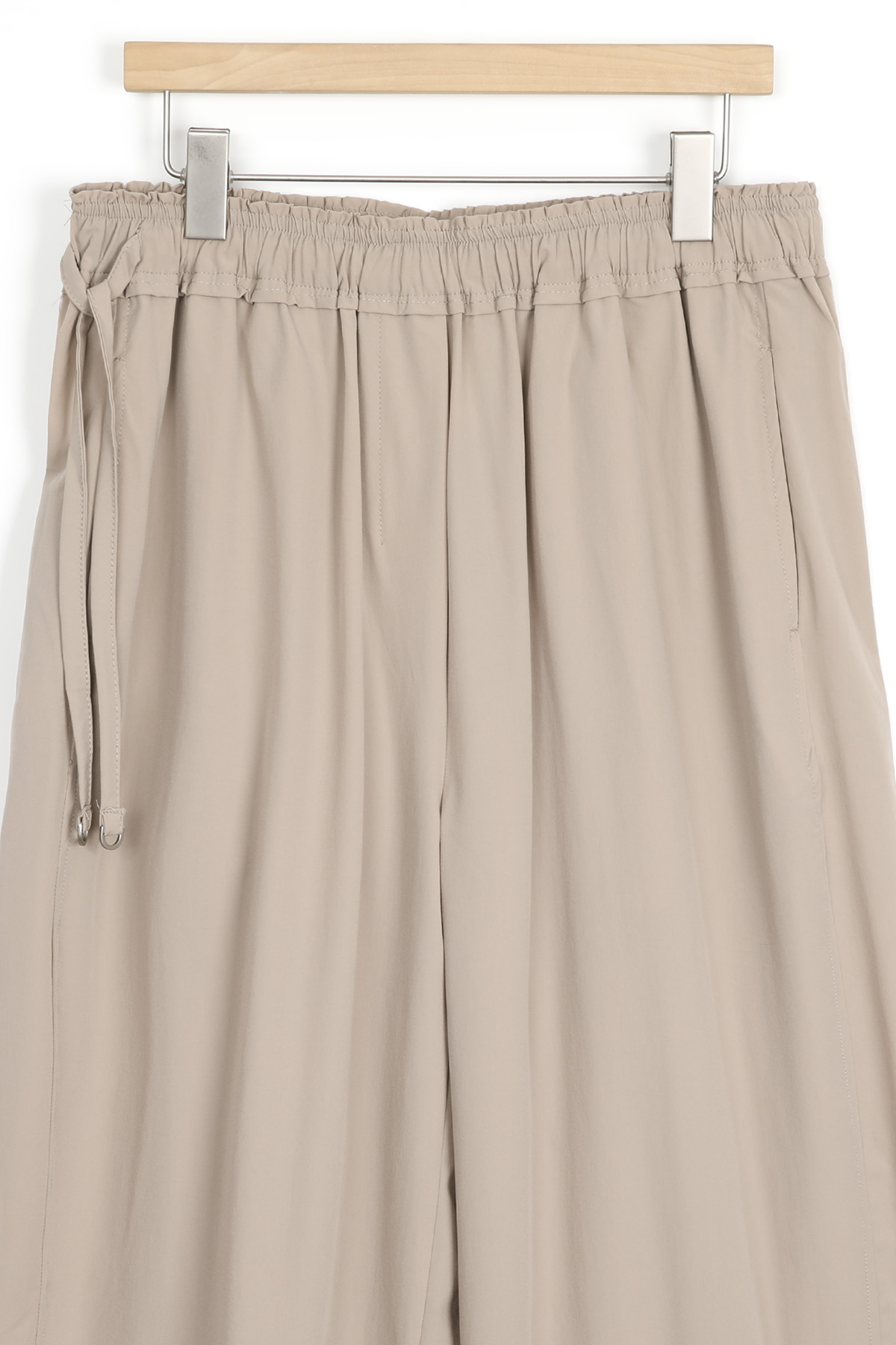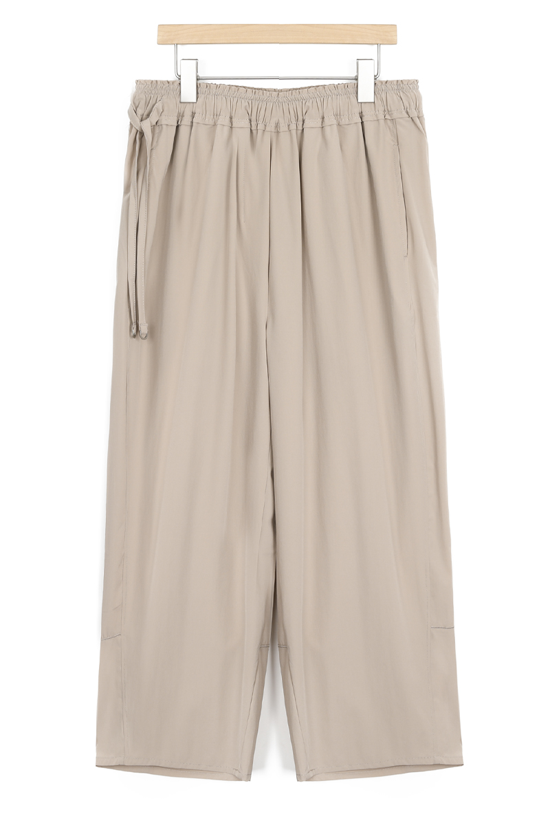 편안함과 세련됨을 동시에 담은 와이드 팬츠 가볍고 시원한 팬츠가 필요한 계절에는 바로 그래서 PRE-ORDER 입고한 최상급 쿨 나일론 원단의 와이드 팬츠예요. 몸에 달라붙지 않는 여유로운 와이드 실루엣과 자동으로 만들어 준답니다! 데일리 팬츠로 가볍게 입기 좋으면서도 자연스럽게 어울린다는 인상을 받으실 거예요 :) 시원함과 탄력을 동시에 원단은 나일론 90 스판 10 혼방으로 제작했어요. 쿨한 터치감이 느껴지는 나일론 소재와 몸에 달라붙지 않는 질감이라 편안하게 움직일 수 있어요. 가볍지만 흐물거리지 않는 밀도를 지녀 이 원단이 가진 가장 큰 특징이에요 :) 여성스럽게 완성되는 허리 라인 허릿단에는 약 5cm 폭의 밴딩이 들어가 있어 밴드 위아래로 스티치를 더해 훨씬 여성스러운 분위기를 보여주기에, 편안한 착용감과 여성스러운 허리 실루엣을 동시에 느낄 수 있었어요. 은은한 포인트가 되는 사이드 스트랩 허리 한쪽 사이드에는 조절용 스트랩이 들어가 있어요. 스트랩을 살짝 조여 리본으로 묶어주면 정리되는 효과 있으니 특히 체구가 작은 분들은 연출하실 수 있을 거예요. 끝부분에는 실버 메탈 장식이 더해져 편안하면서도 단정한 실루엣 전체 핏은 여유 있는 와이드 실루엣이에요. 허리와 힙 라인은 편안하게 잡아주고 세미 코쿤핏과 와이드 핏의 중간 정도 느낌이랍니다 그래서 단순한 와이드 팬츠보다 세련된 분위기를 만들어주며 힙과 밑위 공간도 충분해 뒷면에는 플랩 형태의 디자인 포켓이 더해져 이 포켓은 디자인 포인트로 보이게 해드릴 거예요 :)