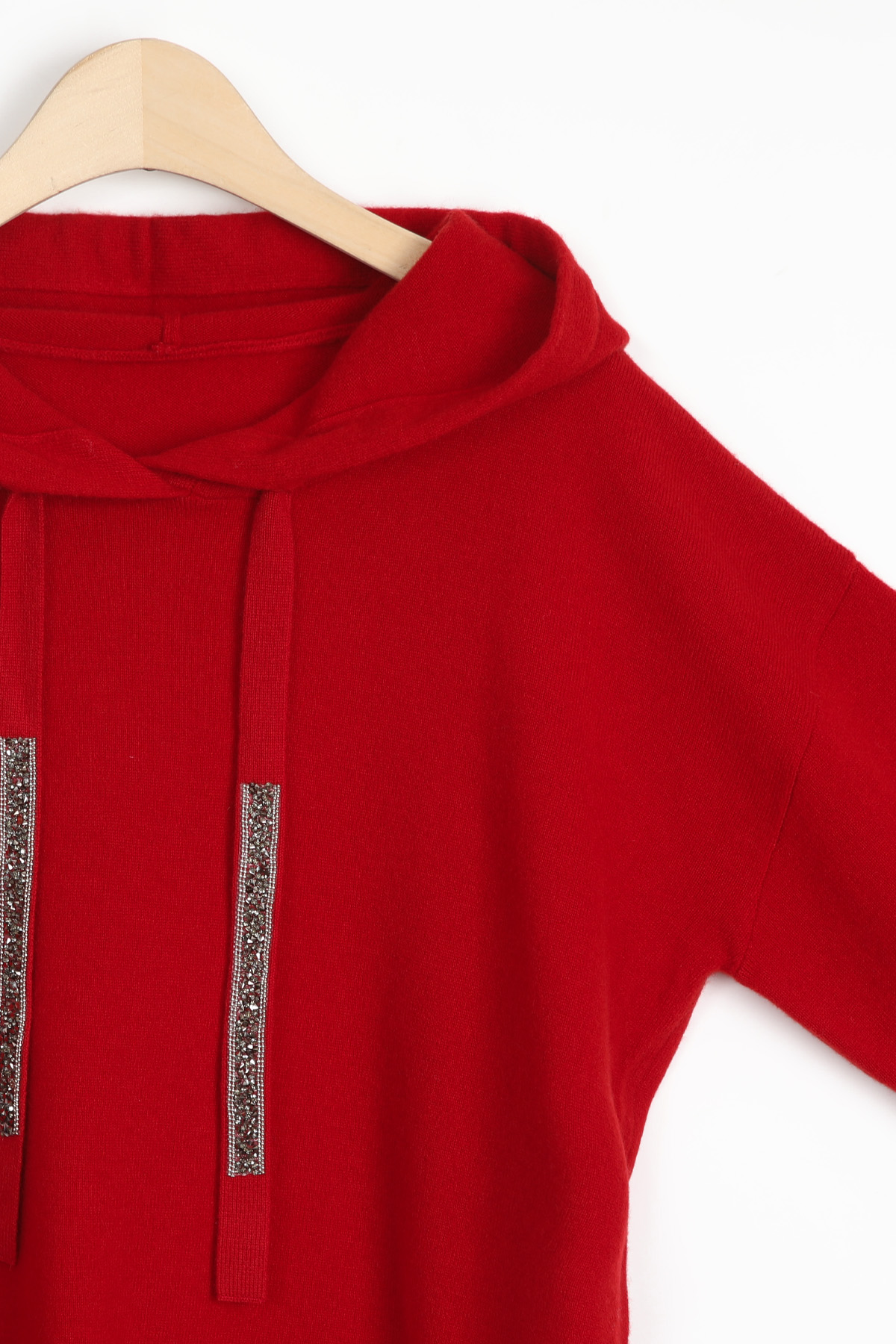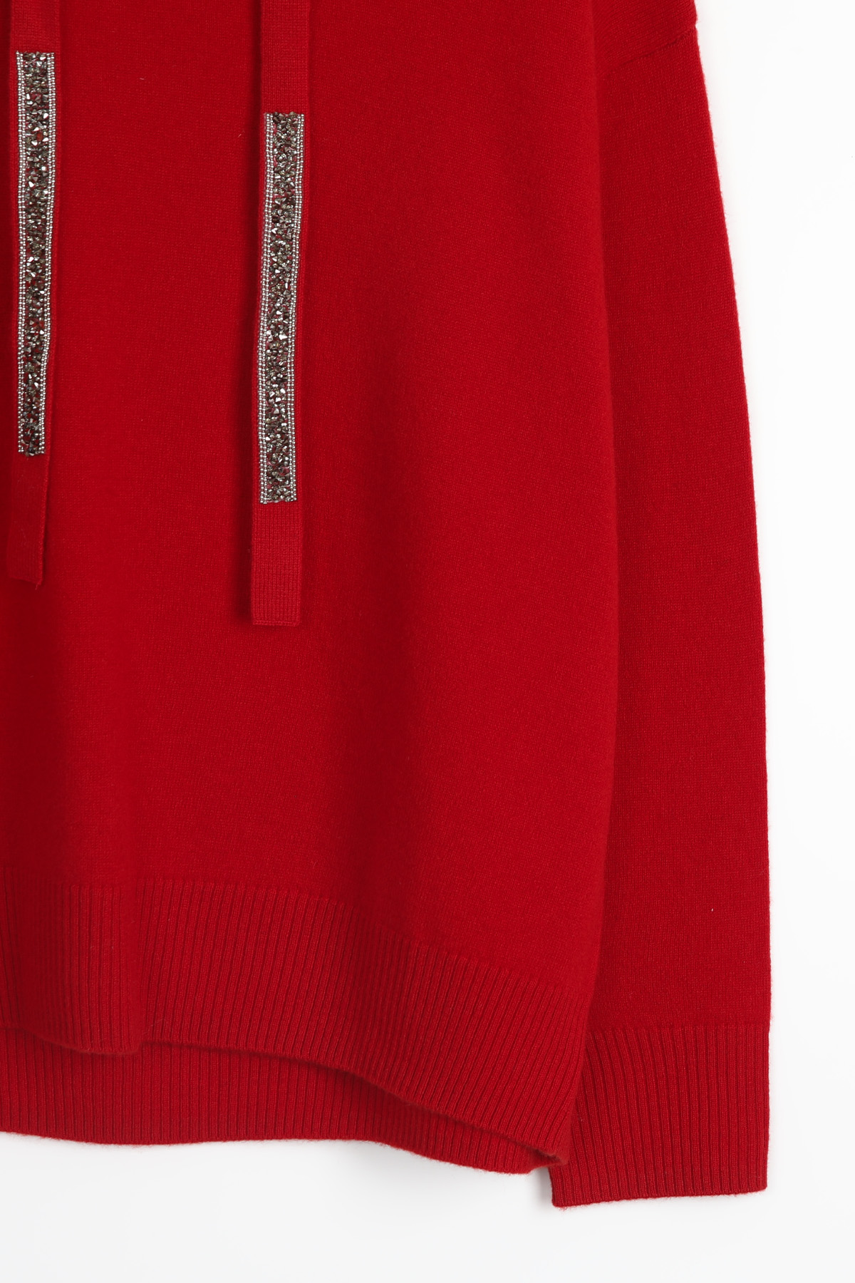 비비드한 컬러감이 매력적이면서두상을 따뜻하게 덮어주는 후드 디테일로블링블링 반짝이는 비즈 트리밍이시선을 사로 잡는 후드 니트탑 소개해드려요