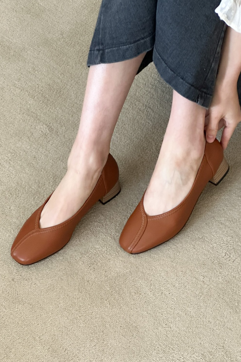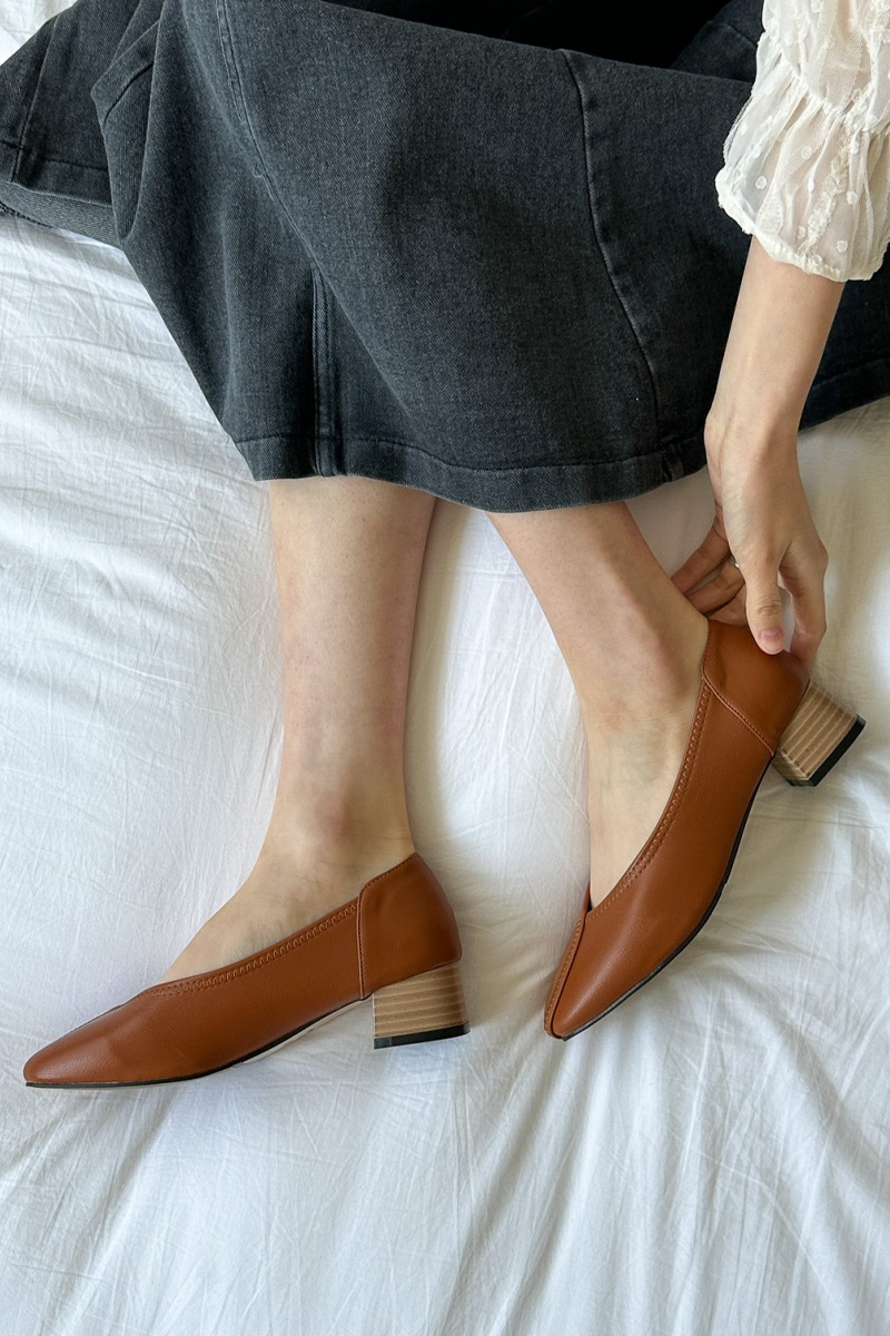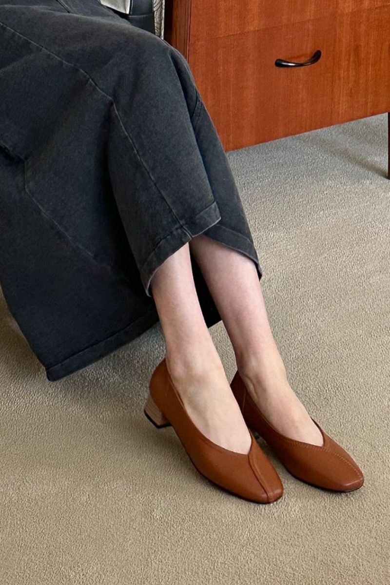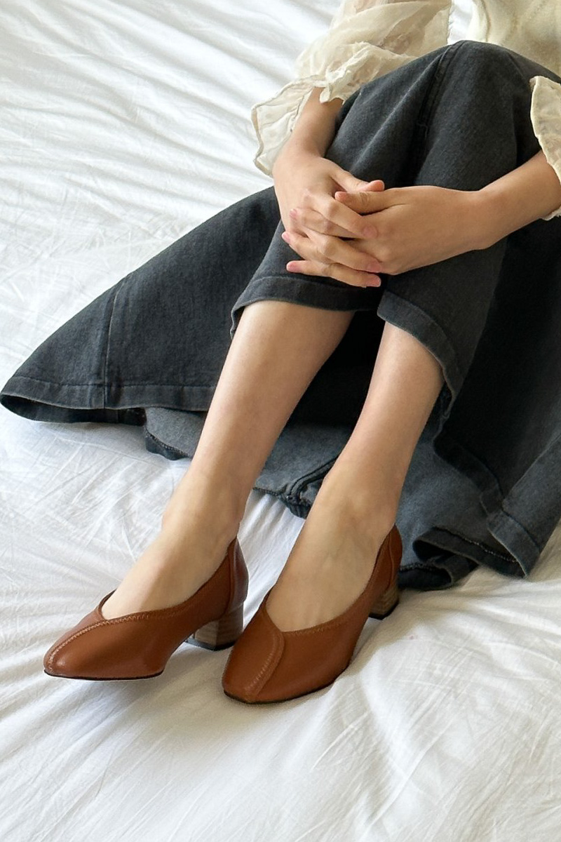 천연 가죽 못지 않게 소프트하게 제작한PU 로우 힐 펌프스고요사선 둥근 절개 라인과심플한 톤온톤 스티치로 깔끔하게 제작했기에코디하기 아주 간편한 아이랍니다!