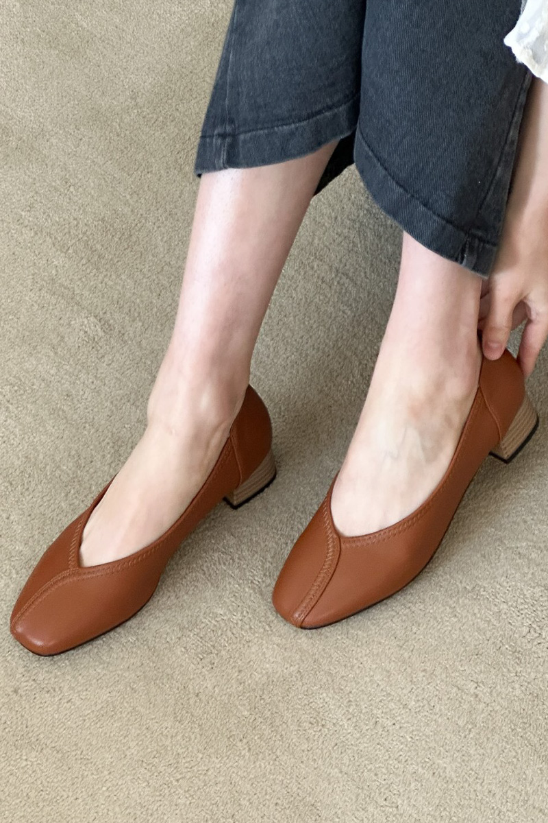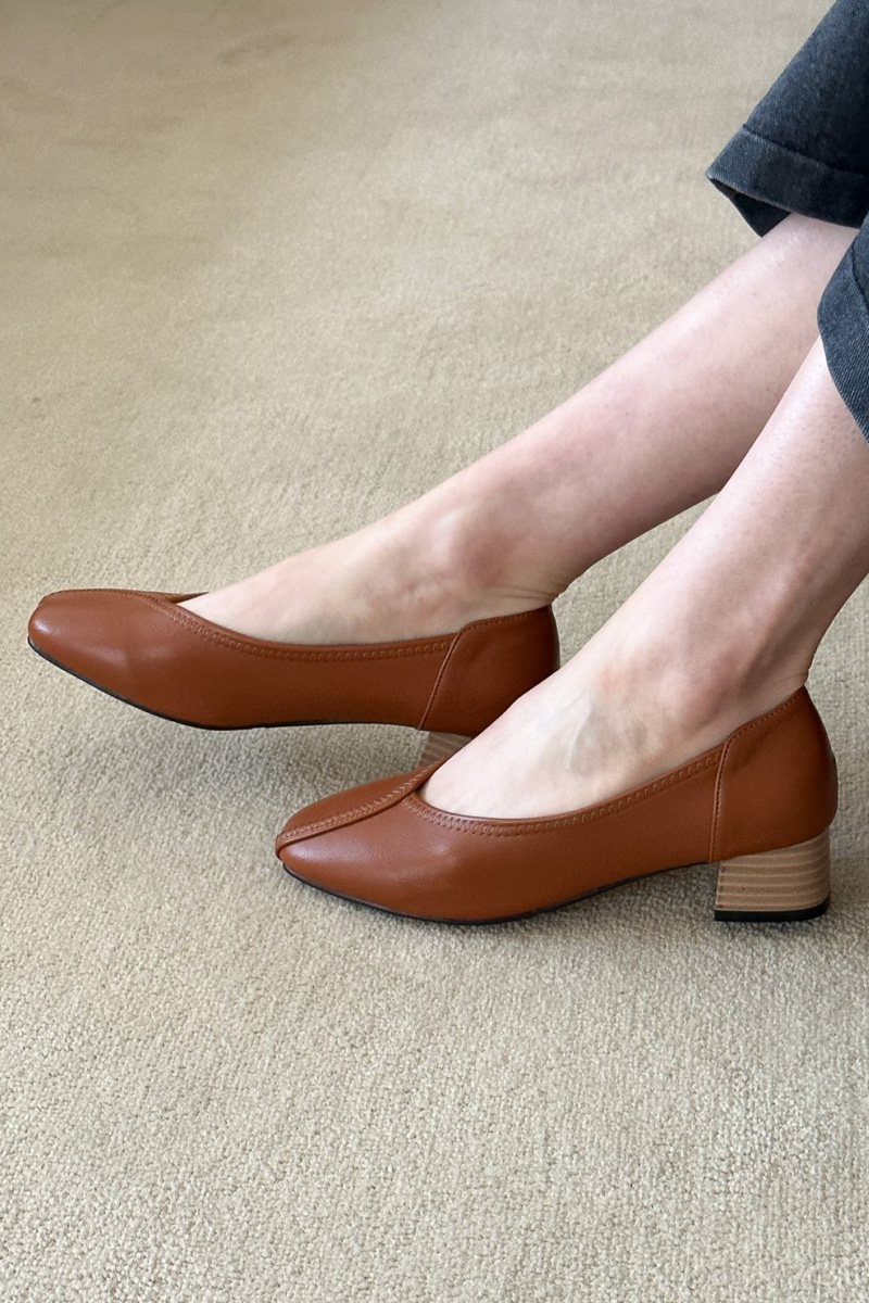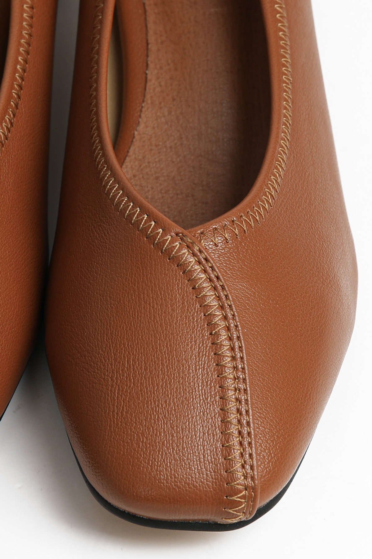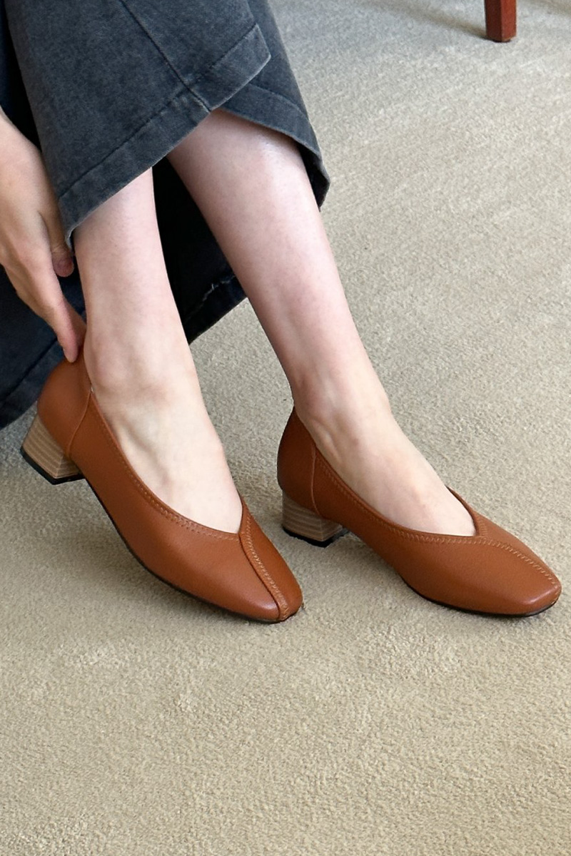 천연 가죽 못지 않게 소프트하게 제작한PU 로우 힐 펌프스고요사선 둥근 절개 라인과심플한 톤온톤 스티치로 깔끔하게 제작했기에코디하기 아주 간편한 아이랍니다!