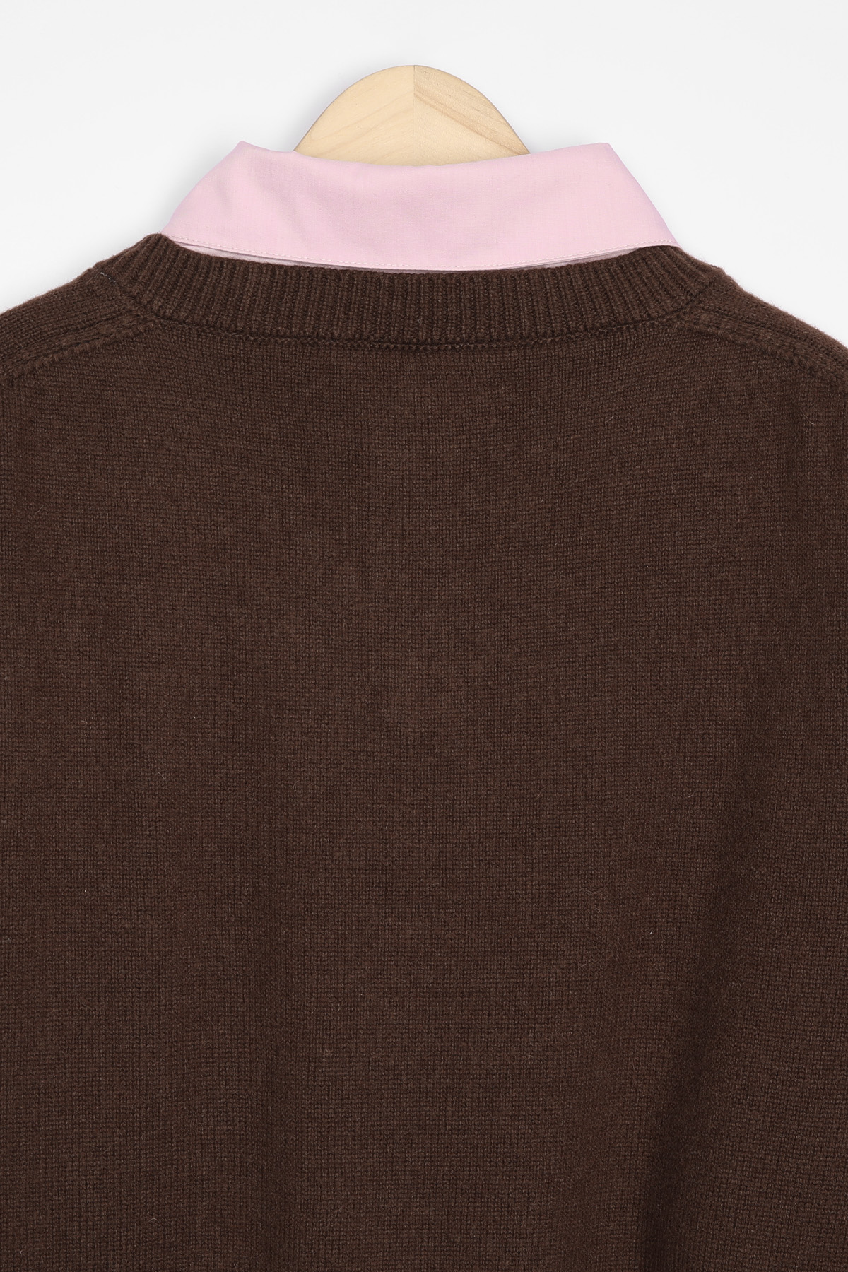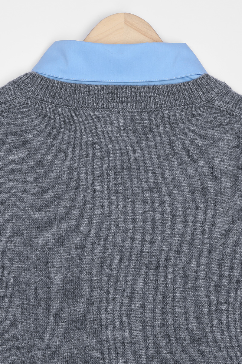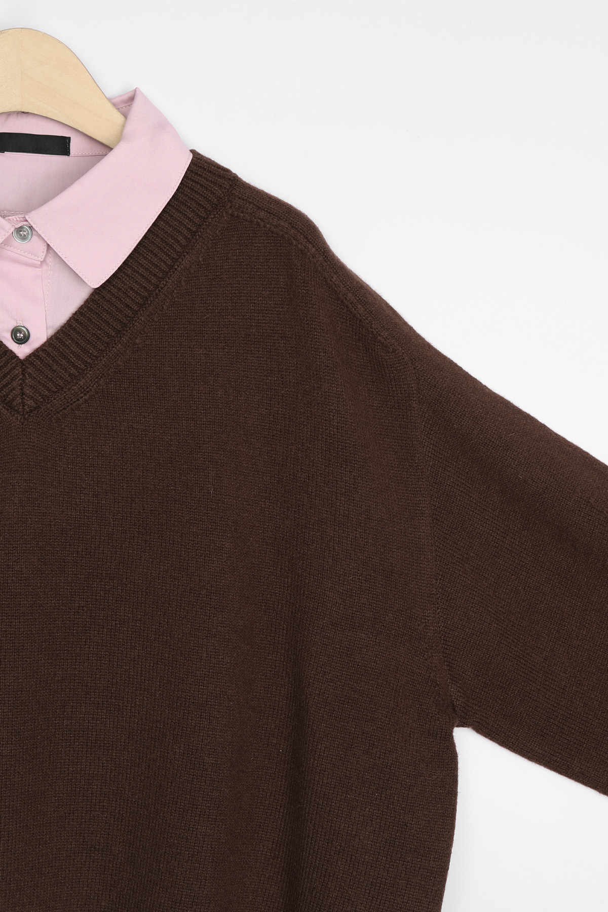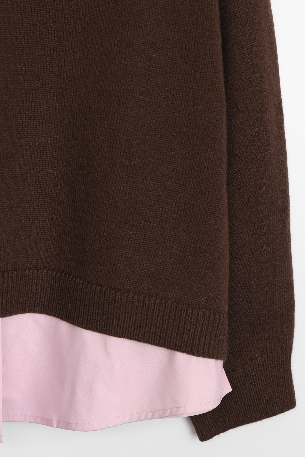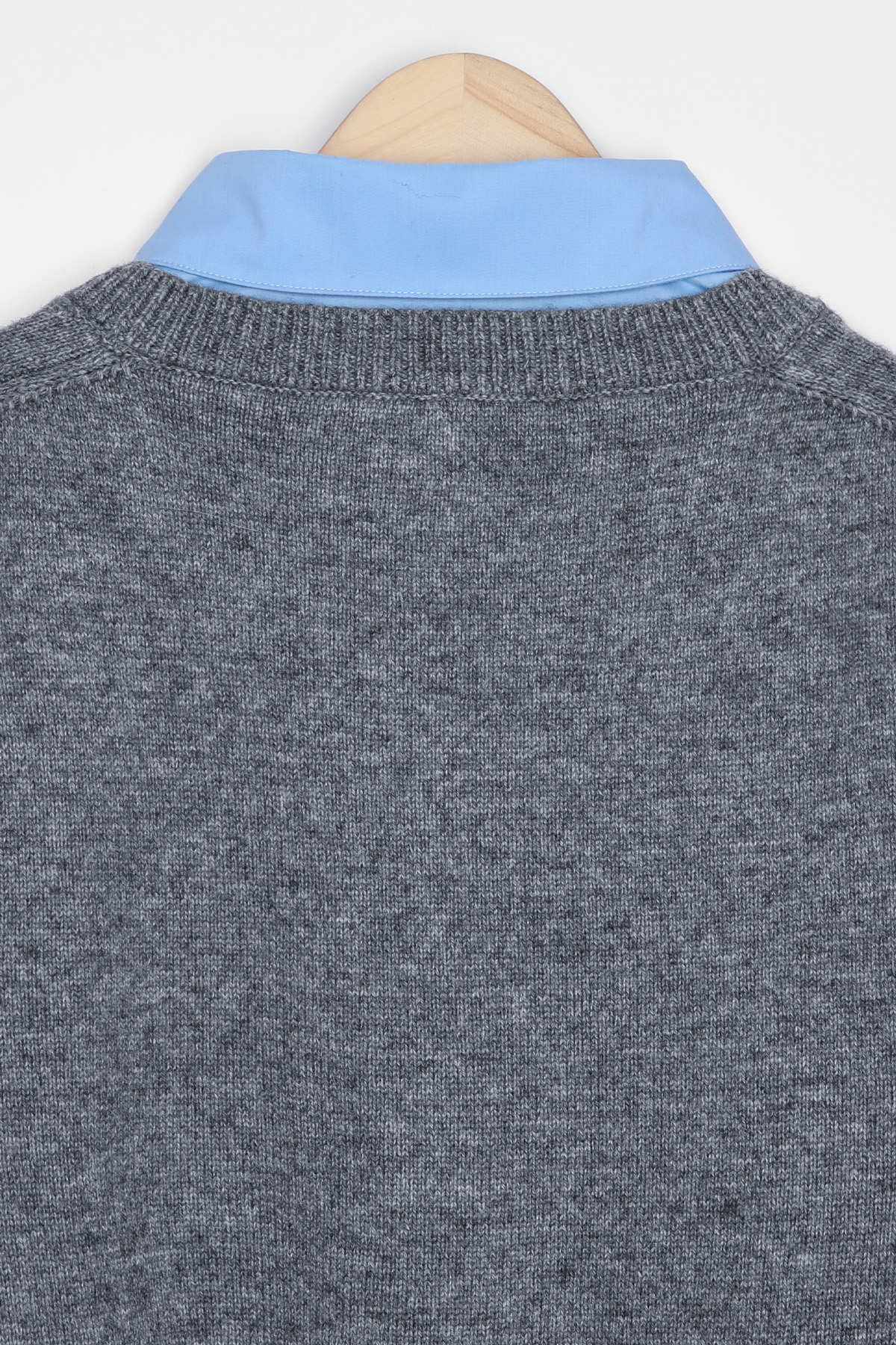 셔츠 위에 니트를 레이어드한 것처럼 보이지만,