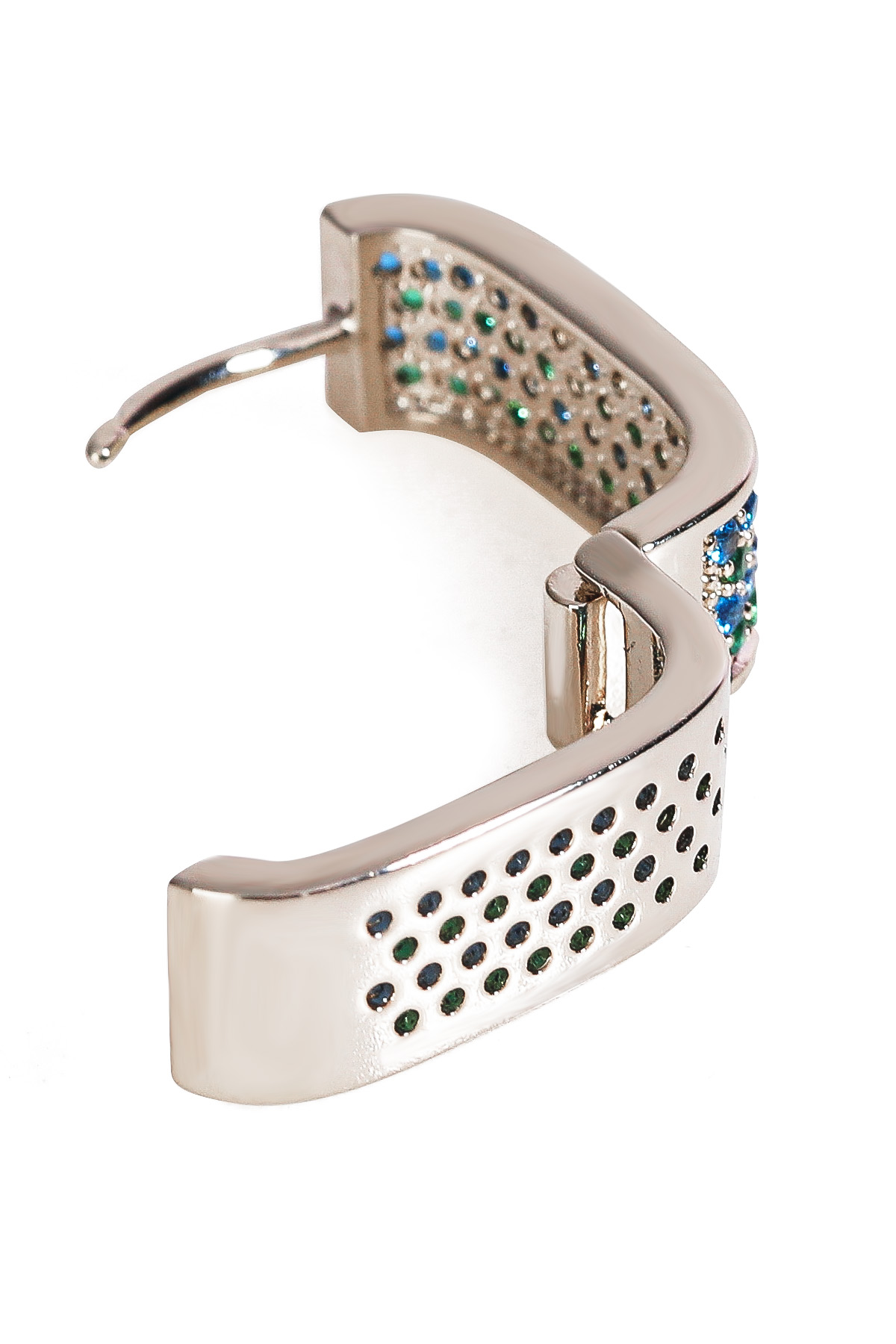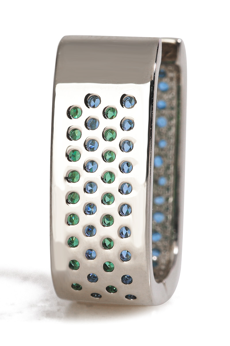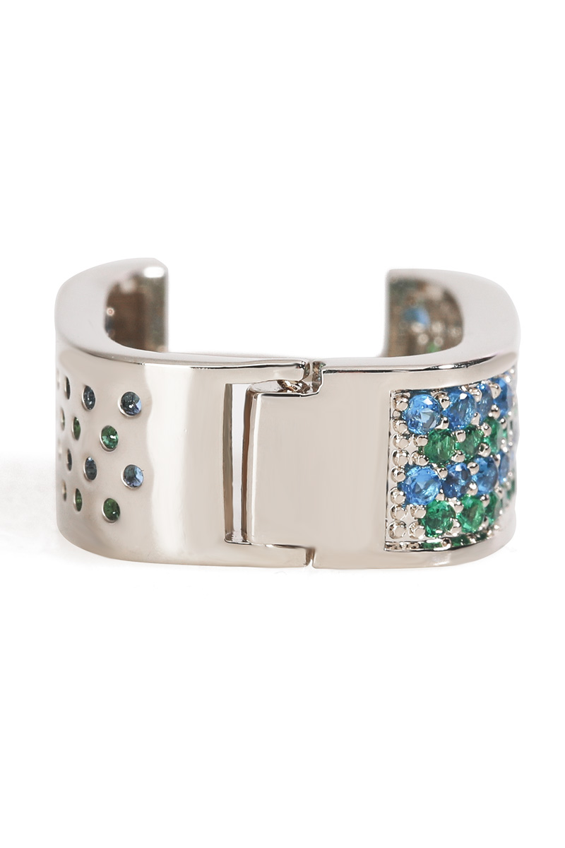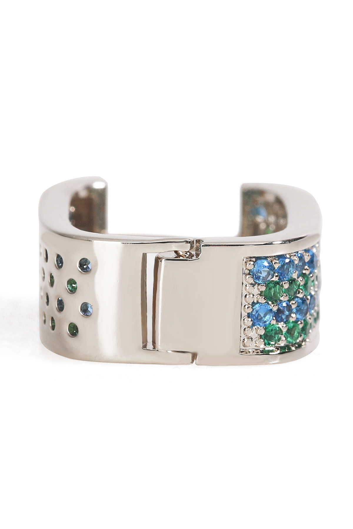 룩에 마지막 화룡점정을 더해줄 주얼리, 고전적인 우아함과 이국적인 화려함이 조화롭게 어우러진 스퀘어 배색 큐빅 후프 이어링이에요. 작지만 확실한 존재감으로 얼굴에 생기와 빛을 선사할 거예요 :) 성인 여성 엄지 손톱 크기와 높이로 적당히 존재감 있는 사이즈이며 달랑거리는 느낌 없이 차분하게 자리 잡아 무게중심과 센스를 모두 챙겨줄 아이템이랍니다! 이 이어링의 가장 큰 매력은 시선을 사로잡는 블루와 그린 큐빅의 이국적인 배색이에요. 섬세하게 커팅된 지르콘 큐빅이 블루-그린-블루-그린의 배열로 순차적으로 나열되어, 마치 클레오파트라를 연상시키는 화려하면서도 매혹적인 분위기를 연출한답니다. 큐빅 가장자리는 꽃 모양처럼 하드웨어로 장식되어 있어 더욱 입체적이고 섬세한 디자인을 자랑하고 있어요. 자연스러운 신주 컬러감 신주는 완전 화이트 골드톤도 아니고, 짙은 옐로우 골드톤도 아니에요. 보통 신주는 옐로우 골드의 느낌을 살짝 담은 화이트 골드톤으로 제작되어 나오는데, 이 아이가 딱 그런 케이스입니다. 배색 블루+그린 큐빅을 전체적으로 아우르고 조화롭게 만들어주는 본체의 컬러감이며, 노란 옐로우빛보다는 훨씬 깨끗하고, 부담스러울 만큼 밝은 화이트 골드보다는 훨씬 자연스러운 느낌으로 전체적인 실루엣이 형성되어요. 스퀘어 여유핏: 정면에서는 약 7mm 폭의 일자 귀걸이처럼 보이지만, 측면에서 보면 스퀘어 형태로 제작되어 귓볼 앞뒤로 넉넉한 폭을 확보해 주어요 이 디자인 덕분에 귓볼이 눌리거나 끼이는 듯한 느낌 없이 매우 편안하게 착용할 수 있어요 사이즈: 세로 길이 1.7cm, 가로 폭 0.7cm로, 은은하지만 확실한 존재감이 있는 크기예요 소재는 신주 합금으로 제작되었으나, 피부 깊숙이 닿는 침(포스트) 부분은 알러지 걱정이 없는 실버 925 소재를 사용했어요 FIT INFORMATION 클레오파트라 부럽지 않은 이국적 화려함 눈에 띄는 블루+그린 컬러 배색으로 화려하면서도 이국적인 분위기를 낼 수 있는 스퀘어 이어링! 정면에서 보면 가로 폭 7mm, 세로 길이 1.7cm 정도로 은은하게 존재감이 있는 크기라서, 세미 오피스룩으로는 물론 데일리 용도로도 생기 있게 얼굴의 예쁨을 돋보이게 해드릴 거예요 :) 흔히 정면에서만 큐빅이 박혀있는 일반적인 디자인과 달리, 이 이어링은 본체의 뒷면 안쪽 방향에도 동일한 배색 큐빅 디테일을 가미해 주었어요 이는 측면이나 사선에서 보았을 때에도 정면 못지않게 블링블링한 배색 큐빅의 효과를 즐길 수 있도록 세심하게 설계된 부분이랍니다. 고개를 돌릴 때마다 혹은 머리카락 사이로 은은한 빛이 반쩍일 때, 감탄 나오는 센스는 더욱 돋보일 거예요 :)Exotic Elegance