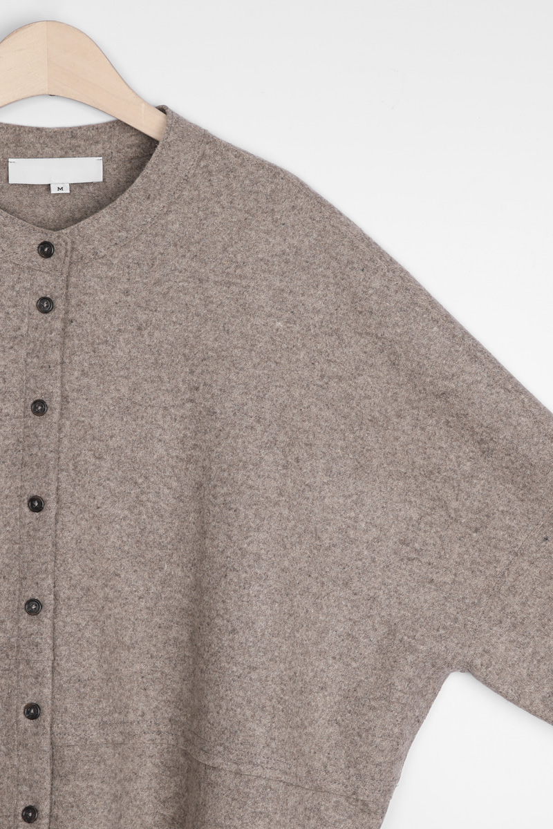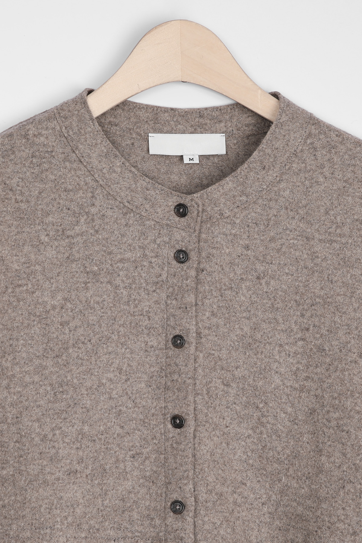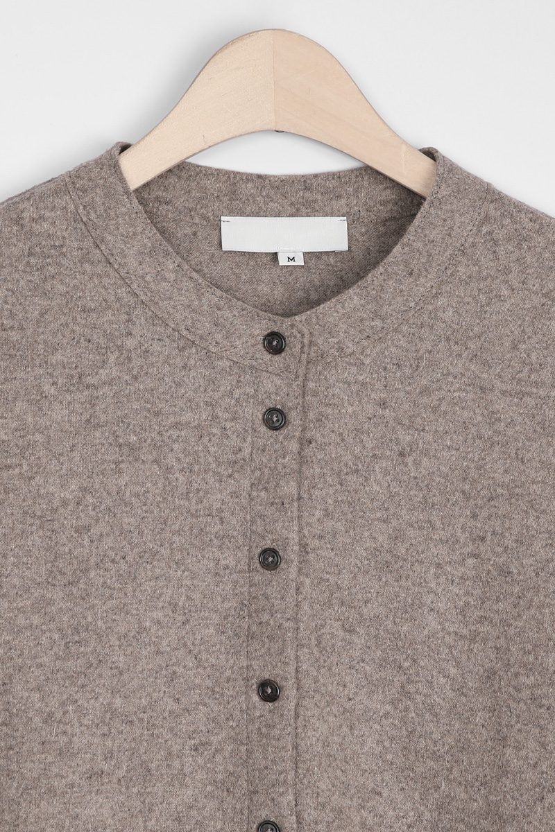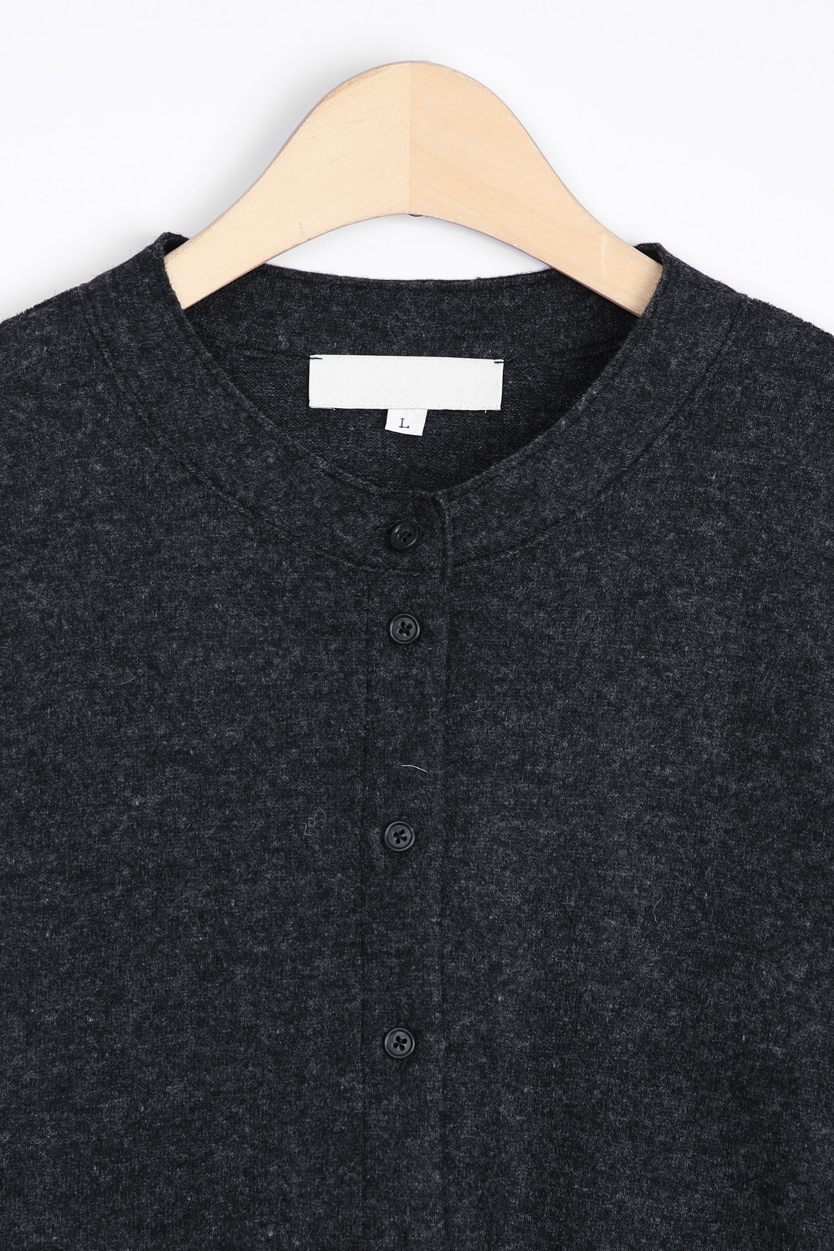 포슬포슬한 질감의 밀링지 셔츠형 자켓으로 투웨이 착용 할 수 있는 디자인이에요. 지금 계절에는 실내 보온용 셔츠형 자켓이나 블라우스 셔츠 느낌으로 입어주실 수 있고 울 80%, 나일론 20% 소재로 모두 갖춘 원단이에요. 안감 없는 홑겹 자켓형 블라우스이며 얇은 FW 이너 위에 레이어드하면 원단을 고온에서 두드려 조직을 더 조밀하고 단단하게 만드는 밀링 가공을 거친 소재입니다. 이 과정을 거치면 표면이 기모 가공한 것처럼 뽀송하게 올라오는 효과가 있어 디테일 하나하나에 섬세한 감성을 담았어요. 우아한 헨리넥 & 8개의 단추: 라운드넥보다 한층 더 점잖고 세련된 느낌을 주는 헨리넥 디자인이에요. 8개의 단추가 차분하게 이어지며, 모두 잠갔을 때는 단정함을, 오픈했을 때는 자연스러운 멋스러움을 연출한답니다. 편안한 드롭 숄더: 어깨선이 팔뚝까지 내려오는 4.5부 드롭 숄더 디자인으로, 어깨와 가슴품에 여유를 주어 움직임이 매우 편안해요. 밑단 양 사이드에 약 11cm 길이의 슬릿선이 있어 추가 디테일 뒷면에는 날개죽지 부근 높이에 가로 봉제가 들어가 있으며 이 아이템의 진가는 다양한 활용도에 있어요 :) 지금부터 초봄까지: 요즘 같은 날씨에는 얇은 터틀넥이나 니트 위에 레이어드하여 도톰한 블라우스 느낌으로 연출해 보세요. 울 소재 특유의 보온성이 체온을 따뜻하게 지켜드릴 거예요. 간절기 아우터: 한겨울이 지나고 쌀쌀한 기운이 감도는 초봄에는 가벼운 아우터로 활용하기 좋아요. 어깨선은 4.5부 드롭숄더로 충분히 여유 있었어요. 4.5부 드롭숄더선 이하부터 손등 중간을 가리는 소맷단까지 드롭숄더선 이하부터 소맷단까지 가슴품에서 밑단까지 총길이는 촘촘한 압축울 질감의 밀링지 원단으로 가슴품, 밑단 폭이 여유 있고 블라우스로도 만능 활용 가능한 디자인이랍니다 :) L(66-77) 사이즈 PICK. 얇은 터틀 이너 티셔츠와 레이어드하는 블라우스부터 밀링지 원단은 모감이 약간 있는 편이므로 착용하시는 것을 권장드려요. 건조한 날 니트, 울 소재 착용 시 관리에 참고 해주세요 :) M 사이즈 소매길이(목선 기준) 65 / 소맷단 11 L 사이즈 소매길이(목선 기준) 66 / 소맷단 12 사이드 슬릿: 10cm (공통)