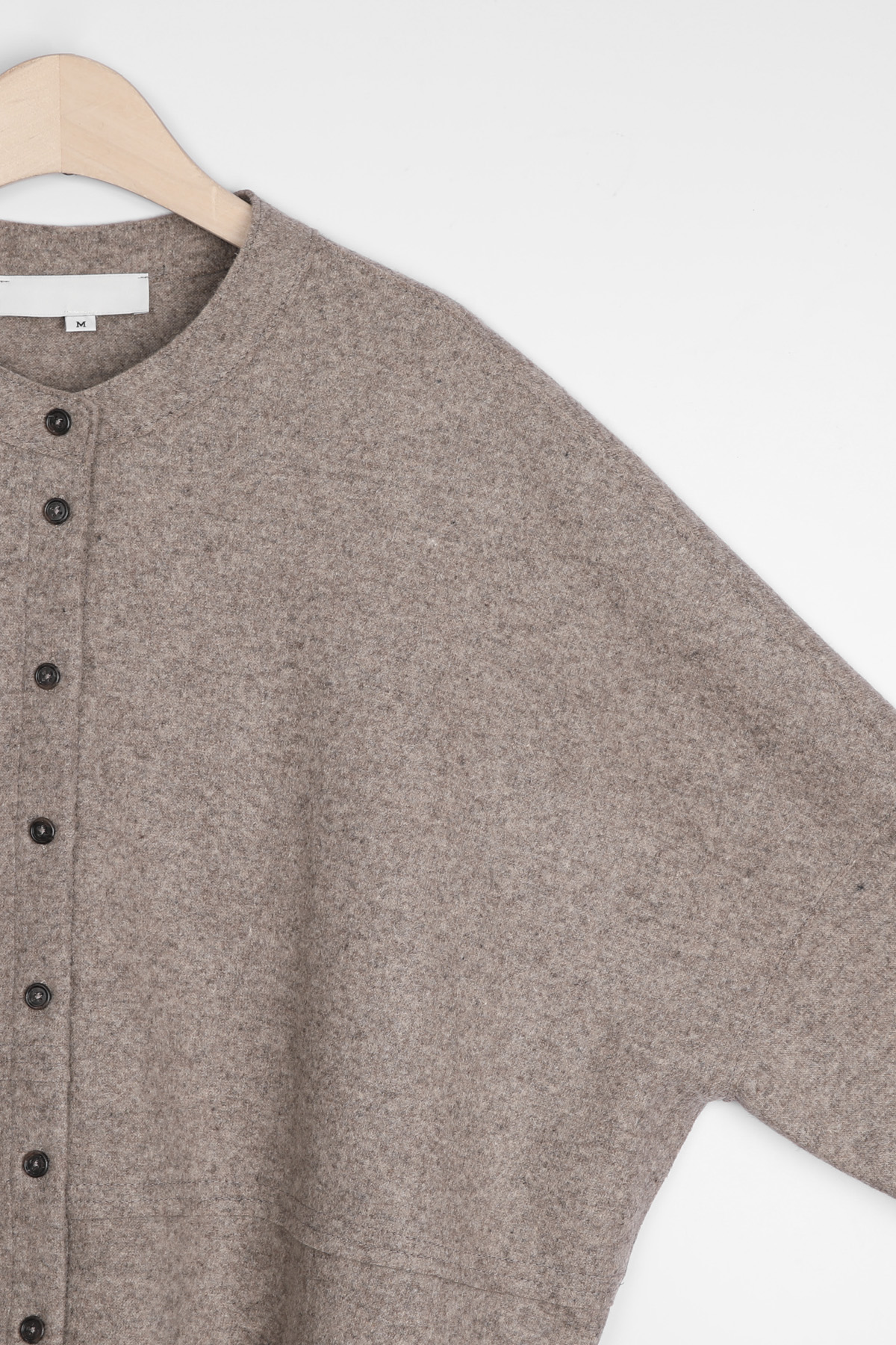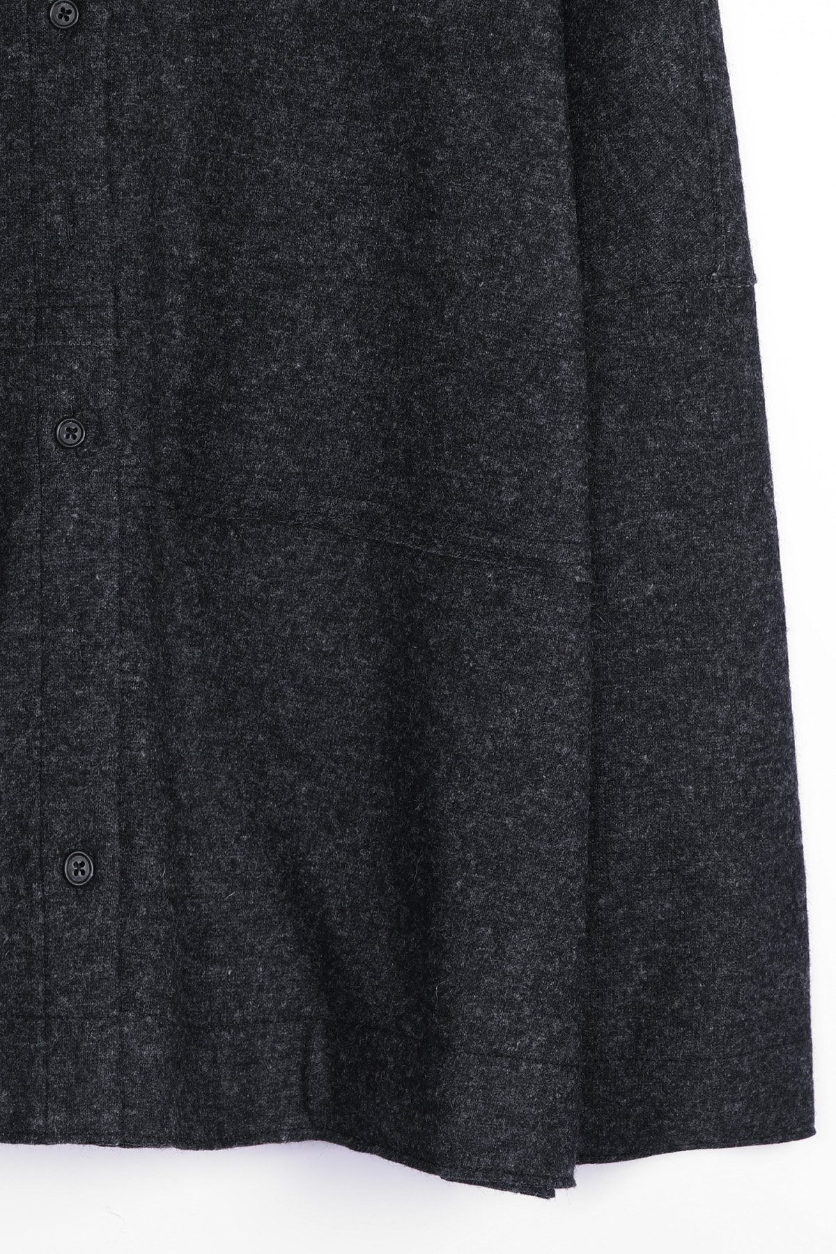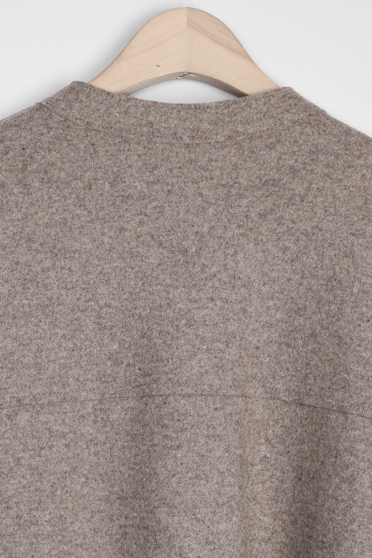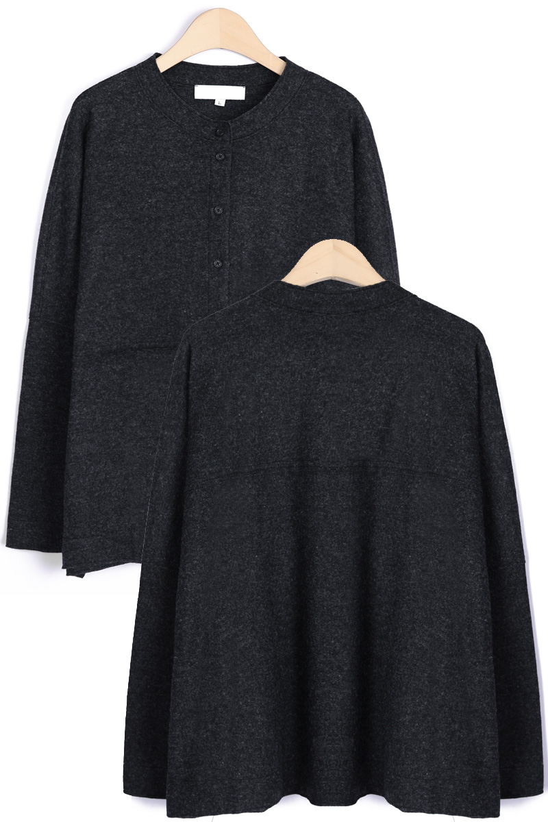 포슬포슬한 질감의 밀링지 셔츠형 자켓으로 투웨이 착용 할 수 있는 디자인이에요. 지금 계절에는 실내 보온용 셔츠형 자켓이나 블라우스 셔츠 느낌으로 입어주실 수 있고 울 80%, 나일론 20% 소재로 모두 갖춘 원단이에요. 안감 없는 홑겹 자켓형 블라우스이며 얇은 FW 이너 위에 레이어드하면 원단을 고온에서 두드려 조직을 더 조밀하고 단단하게 만드는 밀링 가공을 거친 소재입니다. 이 과정을 거치면 표면이 기모 가공한 것처럼 뽀송하게 올라오는 효과가 있어 디테일 하나하나에 섬세한 감성을 담았어요. 우아한 헨리넥 & 8개의 단추: 라운드넥보다 한층 더 점잖고 세련된 느낌을 주는 헨리넥 디자인이에요. 8개의 단추가 차분하게 이어지며, 모두 잠갔을 때는 단정함을, 오픈했을 때는 자연스러운 멋스러움을 연출한답니다. 편안한 드롭 숄더: 어깨선이 팔뚝까지 내려오는 4.5부 드롭 숄더 디자인으로, 어깨와 가슴품에 여유를 주어 움직임이 매우 편안해요. 밑단 양 사이드에 약 11cm 길이의 슬릿선이 있어 추가 디테일 뒷면에는 날개죽지 부근 높이에 가로 봉제가 들어가 있으며 이 아이템의 진가는 다양한 활용도에 있어요 :) 지금부터 초봄까지: 요즘 같은 날씨에는 얇은 터틀넥이나 니트 위에 레이어드하여 도톰한 블라우스 느낌으로 연출해 보세요. 울 소재 특유의 보온성이 체온을 따뜻하게 지켜드릴 거예요. 간절기 아우터: 한겨울이 지나고 쌀쌀한 기운이 감도는 초봄에는 가벼운 아우터로 활용하기 좋아요. 어깨선은 4.5부 드롭숄더로 충분히 여유 있었어요. 4.5부 드롭숄더선 이하부터 손등 중간을 가리는 소맷단까지 드롭숄더선 이하부터 소맷단까지 가슴품에서 밑단까지 총길이는 촘촘한 압축울 질감의 밀링지 원단으로 가슴품, 밑단 폭이 여유 있고 블라우스로도 만능 활용 가능한 디자인이랍니다 :) L(66-77) 사이즈 PICK. 얇은 터틀 이너 티셔츠와 레이어드하는 블라우스부터 밀링지 원단은 모감이 약간 있는 편이므로 착용하시는 것을 권장드려요. 건조한 날 니트, 울 소재 착용 시 관리에 참고 해주세요 :) M 사이즈 소매길이(목선 기준) 65 / 소맷단 11 L 사이즈 소매길이(목선 기준) 66 / 소맷단 12 사이드 슬릿: 10cm (공통)