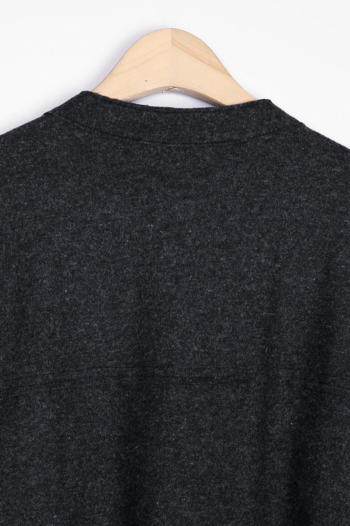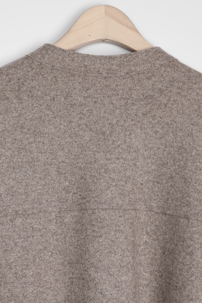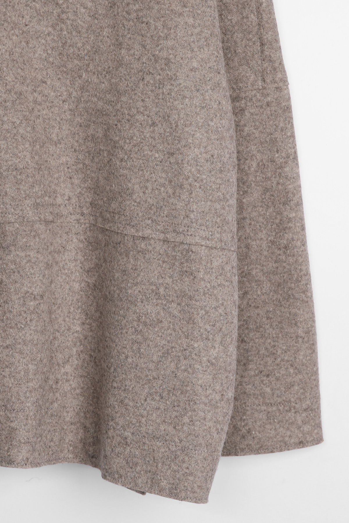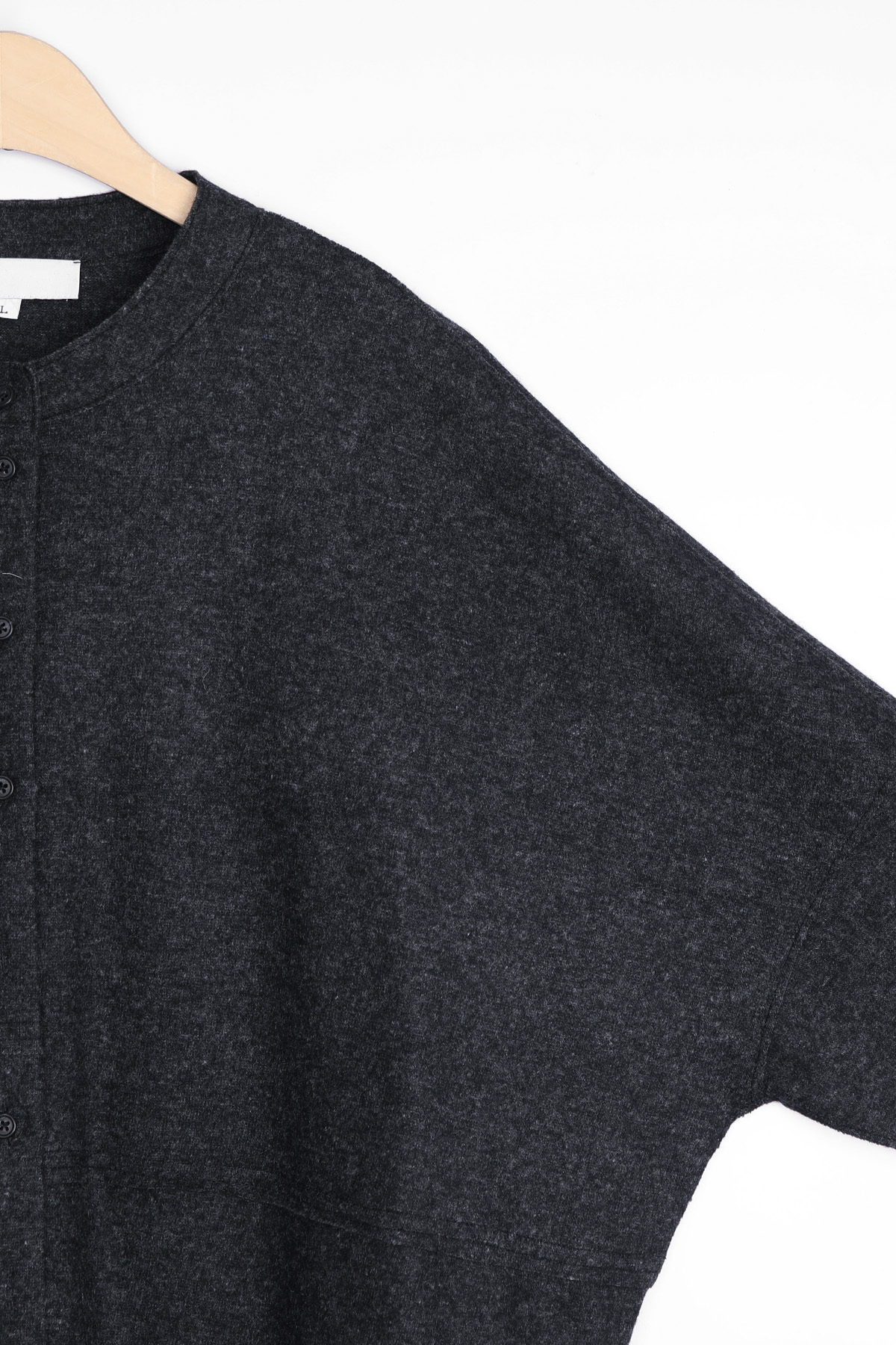 포슬포슬한 질감의 밀링지 셔츠형 자켓으로 투웨이 착용 할 수 있는 디자인이에요. 지금 계절에는 실내 보온용 셔츠형 자켓이나 블라우스 셔츠 느낌으로 입어주실 수 있고 울 80%, 나일론 20% 소재로 모두 갖춘 원단이에요. 안감 없는 홑겹 자켓형 블라우스이며 얇은 FW 이너 위에 레이어드하면 원단을 고온에서 두드려 조직을 더 조밀하고 단단하게 만드는 밀링 가공을 거친 소재입니다. 이 과정을 거치면 표면이 기모 가공한 것처럼 뽀송하게 올라오는 효과가 있어 디테일 하나하나에 섬세한 감성을 담았어요. 우아한 헨리넥 & 8개의 단추: 라운드넥보다 한층 더 점잖고 세련된 느낌을 주는 헨리넥 디자인이에요. 8개의 단추가 차분하게 이어지며, 모두 잠갔을 때는 단정함을, 오픈했을 때는 자연스러운 멋스러움을 연출한답니다. 편안한 드롭 숄더: 어깨선이 팔뚝까지 내려오는 4.5부 드롭 숄더 디자인으로, 어깨와 가슴품에 여유를 주어 움직임이 매우 편안해요. 밑단 양 사이드에 약 11cm 길이의 슬릿선이 있어 추가 디테일 뒷면에는 날개죽지 부근 높이에 가로 봉제가 들어가 있으며 이 아이템의 진가는 다양한 활용도에 있어요 :) 지금부터 초봄까지: 요즘 같은 날씨에는 얇은 터틀넥이나 니트 위에 레이어드하여 도톰한 블라우스 느낌으로 연출해 보세요. 울 소재 특유의 보온성이 체온을 따뜻하게 지켜드릴 거예요. 간절기 아우터: 한겨울이 지나고 쌀쌀한 기운이 감도는 초봄에는 가벼운 아우터로 활용하기 좋아요. 어깨선은 4.5부 드롭숄더로 충분히 여유 있었어요. 4.5부 드롭숄더선 이하부터 손등 중간을 가리는 소맷단까지 드롭숄더선 이하부터 소맷단까지 가슴품에서 밑단까지 총길이는 촘촘한 압축울 질감의 밀링지 원단으로 가슴품, 밑단 폭이 여유 있고 블라우스로도 만능 활용 가능한 디자인이랍니다 :) L(66-77) 사이즈 PICK. 얇은 터틀 이너 티셔츠와 레이어드하는 블라우스부터 밀링지 원단은 모감이 약간 있는 편이므로 착용하시는 것을 권장드려요. 건조한 날 니트, 울 소재 착용 시 관리에 참고 해주세요 :) M 사이즈 소매길이(목선 기준) 65 / 소맷단 11 L 사이즈 소매길이(목선 기준) 66 / 소맷단 12 사이드 슬릿: 10cm (공통)
