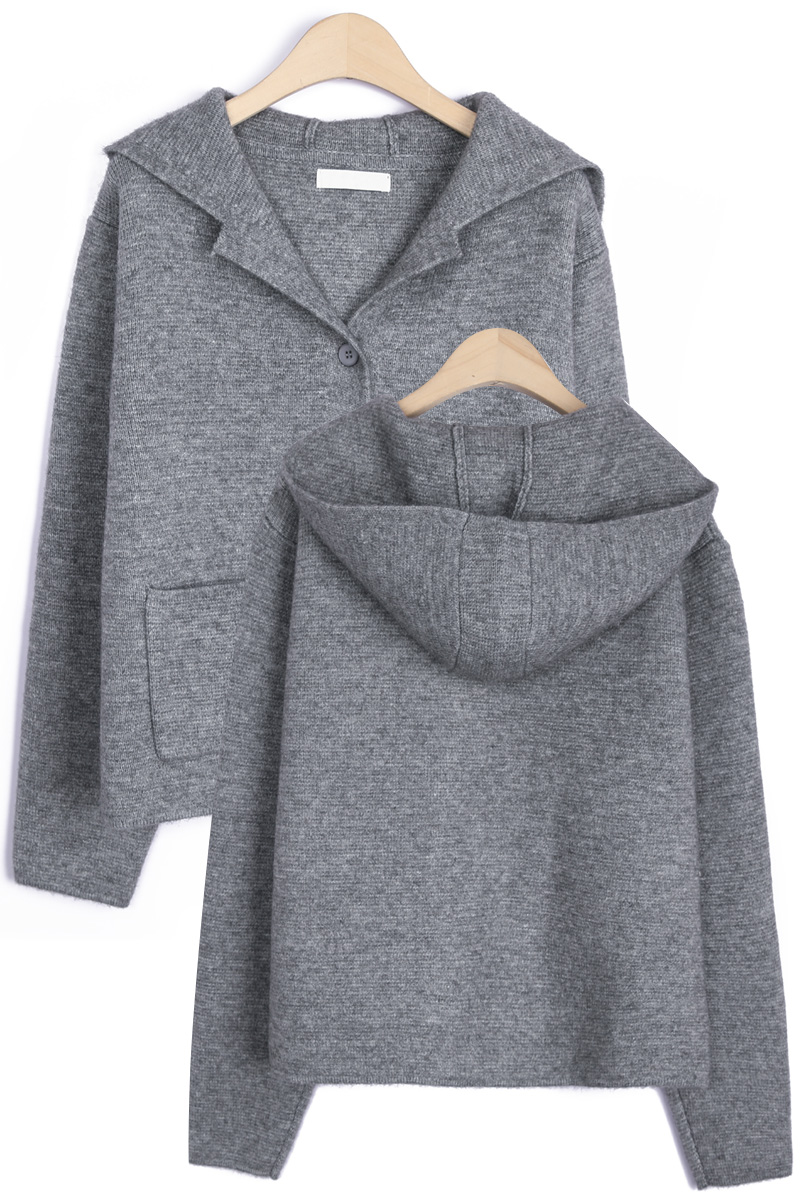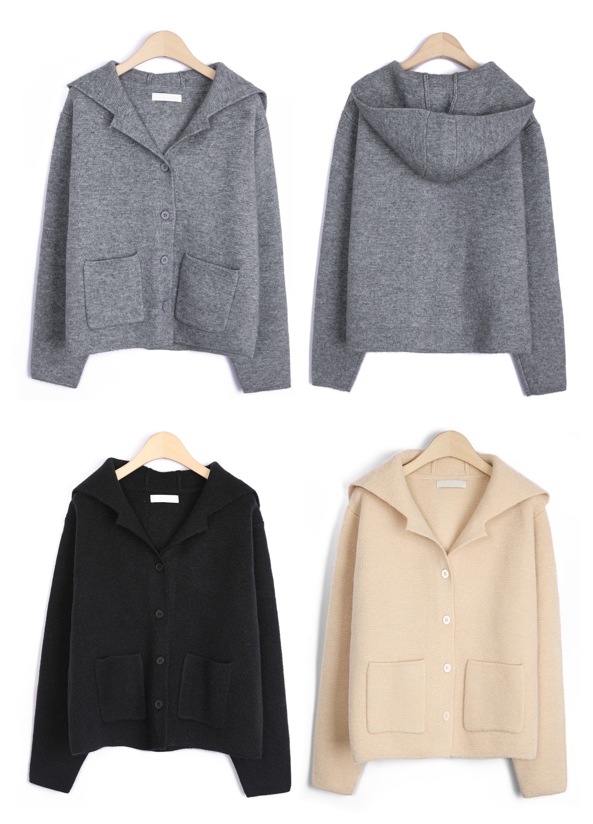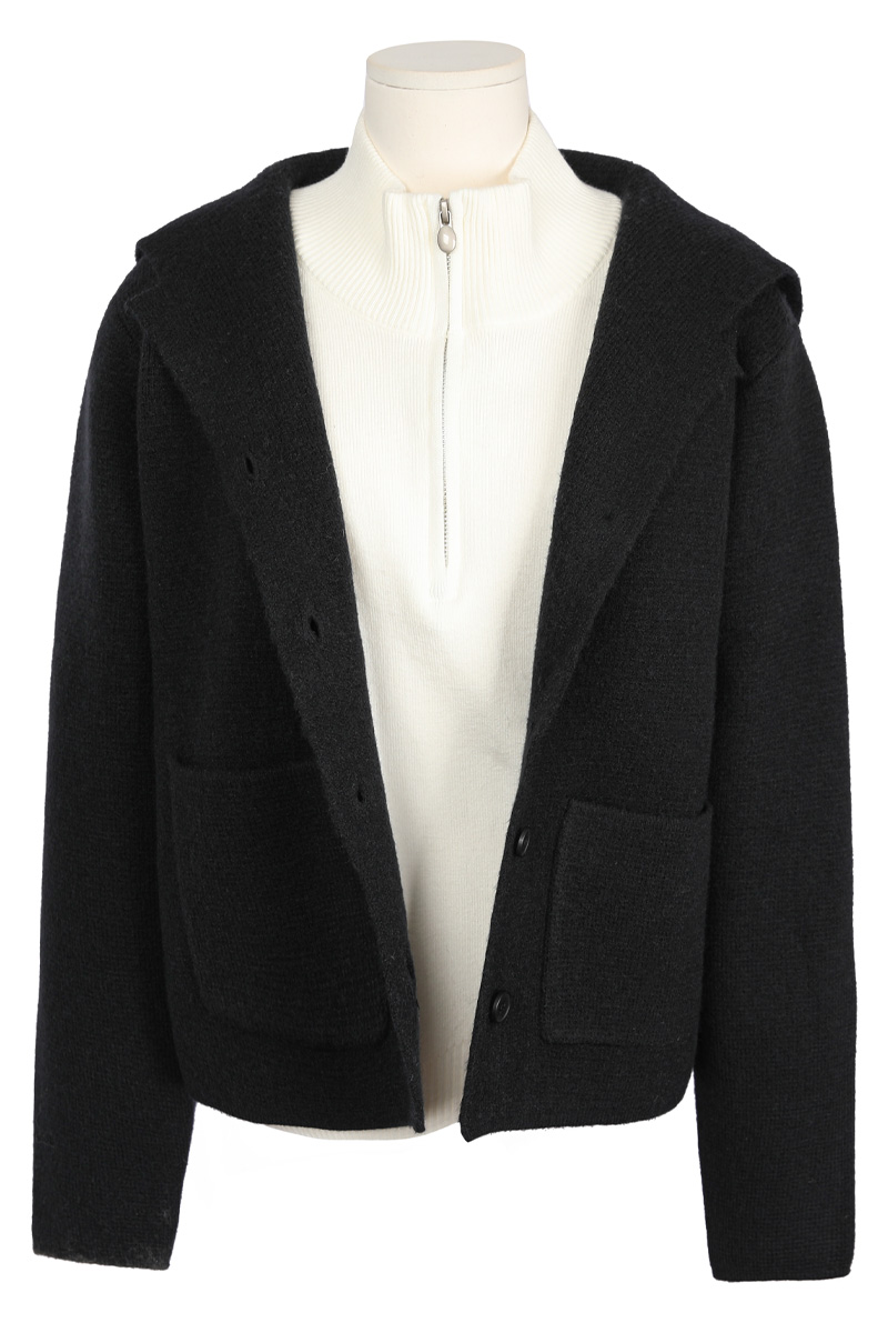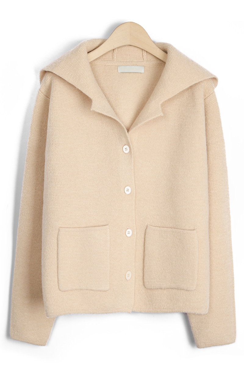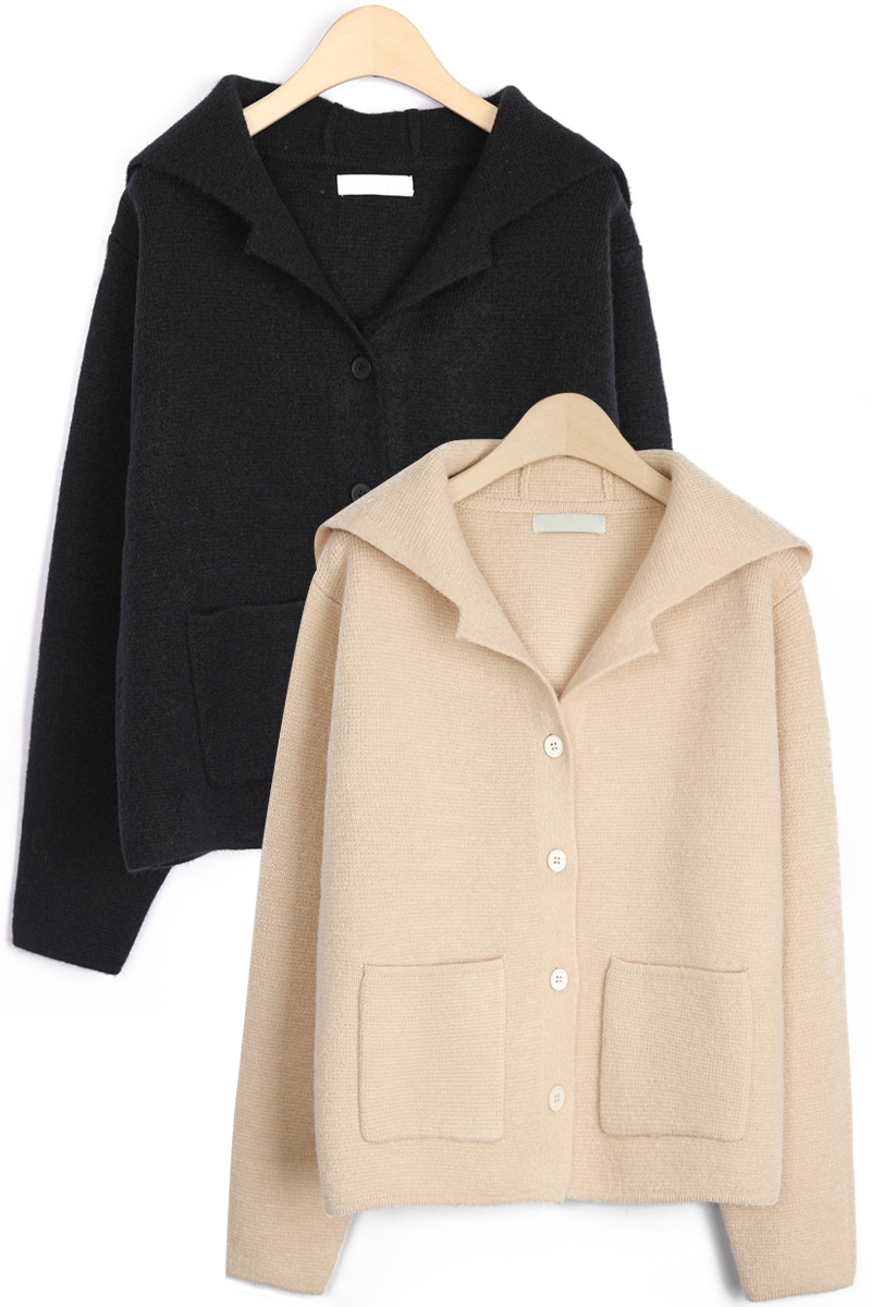 테일러 카라 후드 니트 가디건