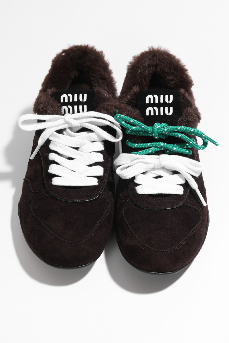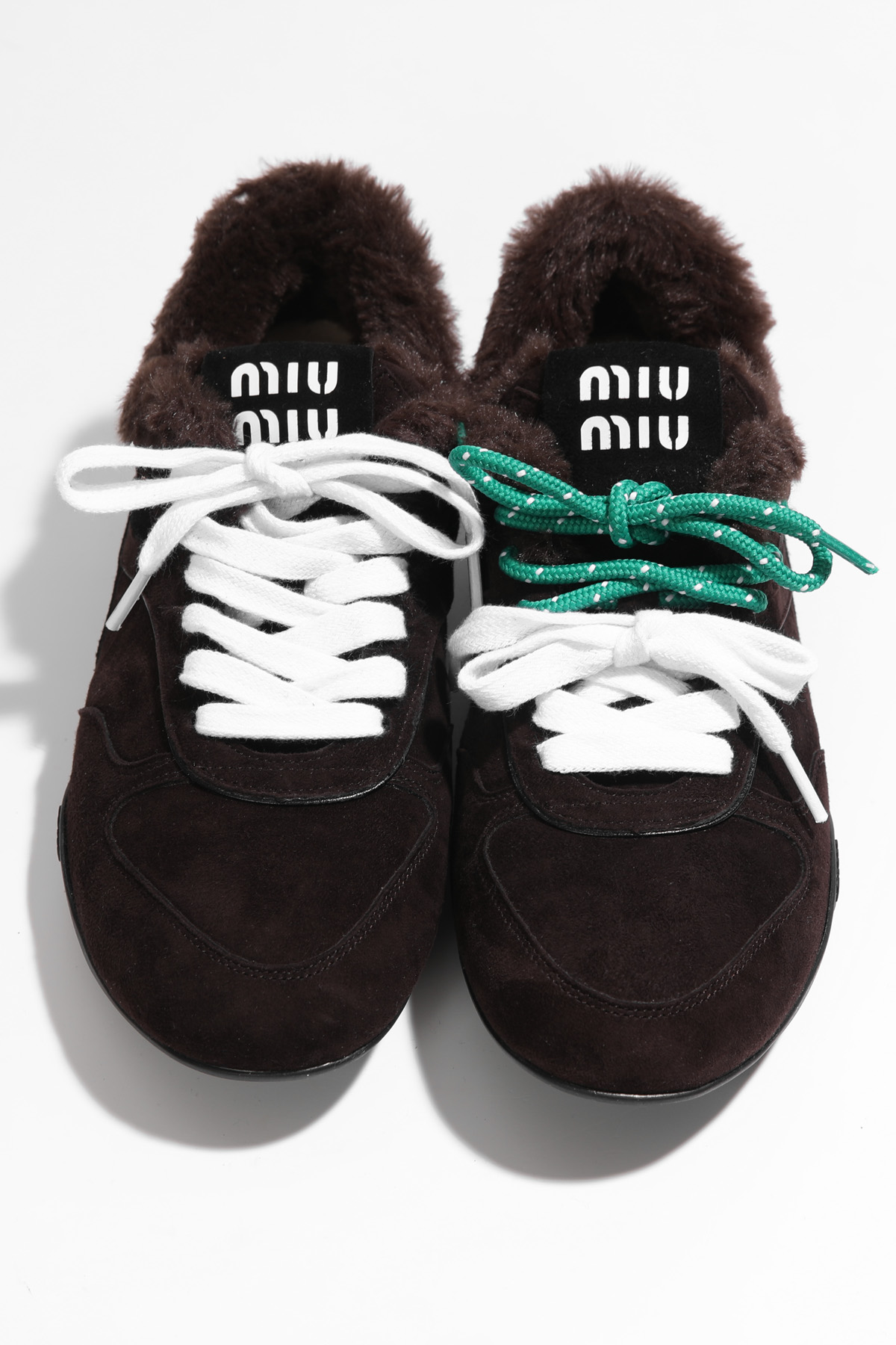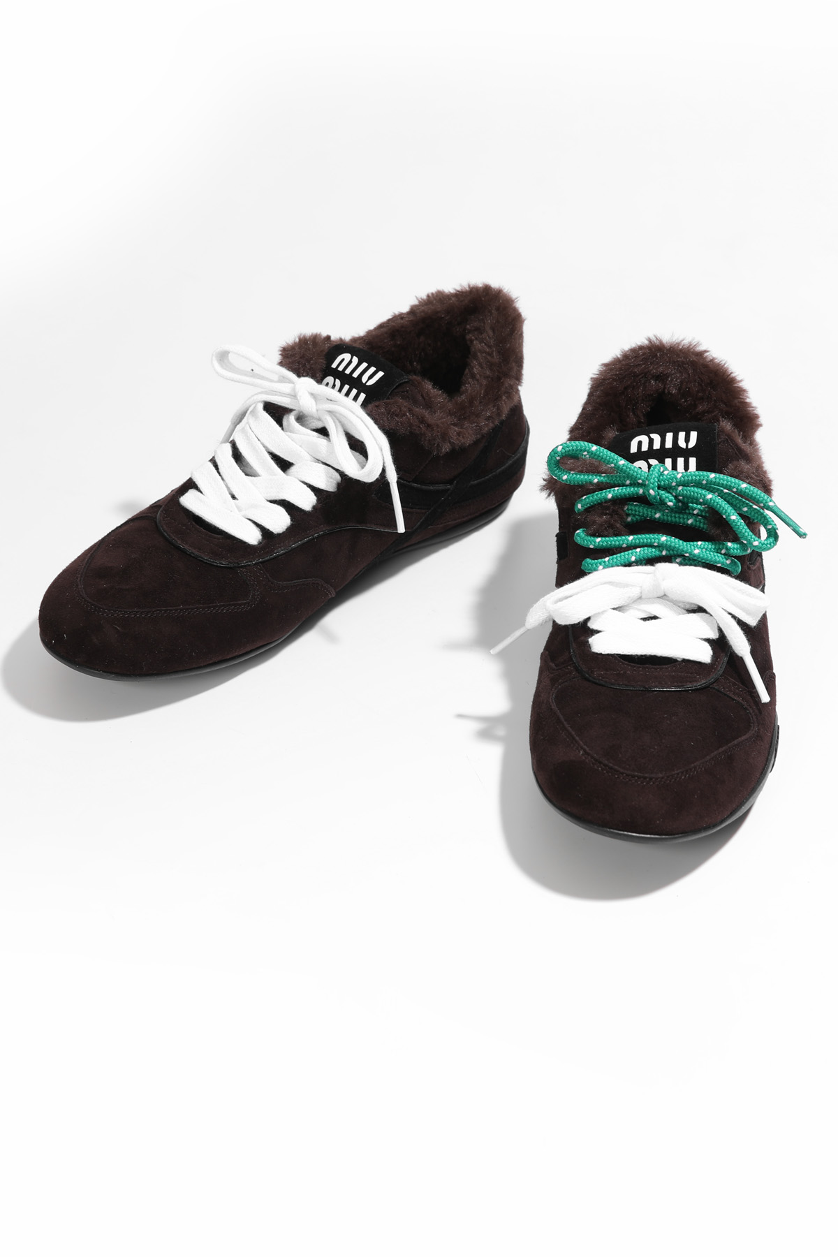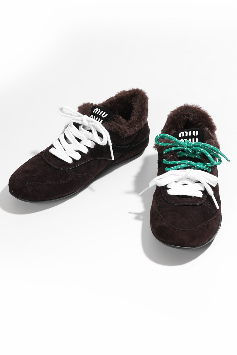 남다른 디테일과 최상의 착화감을 자랑하는 수제화 스니커즈예요. 흔치 않은 깊은 브라운 톤의 스웨이드와 부드러운 리얼 양모 내피가 만나, 한겨울에도 발을 포근하게 감싸는 동시에 세련된 룩을 완성해 줄 아이템이랍니다 가장 매력적인 부분은 단연 언밸런스 스트랩 디자인! 오른쪽 슈즈: 클래식한 화이트 스트랩이 차분한 바탕을 이루고 있어요. 왼쪽 슈즈: 기본 화이트 스트랩 위에 비비드 그린 컬러와 화이트 도트 패턴이 사선으로 들어간 스트랩을 상단 반절만큼 절묘하게 매치했어요. 이 독창적인 컬러 스트랩은 걸음걸이에 경쾌하면서도 감각적인 엣지를 더할 거예요. 정적인 룩에 예상치 못한 유니크함과 희소성을 부여하며, 남다른 안목을 드러내기에 충분하답니다. 리본으로 묶인 스트랩의 볼륨감은 신발 전체에 우아한 포인트를 안겨드려요 :) 겉으로 보이는 아름다움뿐만 아니라, 발이 느끼는 편안함까지 최우선으로 고려했어요. 이 슈즈는 단순한 퍼 트리밍이 아닌, 발이 닿는 대부분의 내피가 부드러운 리얼 양모로 채워져 있어요. 내피 구성: 발바닥 인솔과 발가락 윗부분을 제외한 발등, 옆면, 뒷축 안쪽 전체를 소프트한 브라운 양모 퍼가 감싸고 있어요. 착화감: 신는 순간 마치 포근한 구름 위에 발을 올려놓은 듯한 폭닥폭닥하고 안정적인 착용감을 선사하며, 한겨울 추위에도 발을 따뜻하게 보호해 주어요. 통기성 배려: 발가락 바로 윗부분은 통기성을 위한 코튼 폴리에스터 혼방 소재를 사용하여, 보온성과 쾌적함을 동시에 확보했어요. X자 크로스 라인: 슈즈의 측면에서 뒷축으로 이어지는 라인에 짙은 블랙 스웨이드로 X자 크로스 형태를 디자인하여, 신발의 형태를 더욱 탄탄하고 입체적으로 잡아주어요. MIU MIU 로고 배색: 뒷축 상단과 신발 텅(Tongue) 부분의 블랙 스웨이드 패널 위에 선명한 화이트 MIU MIU 로고를 배치하여, 클래식하면서도 트렌디한 감각을 더했어요. 이 로고 플레이는 전체적인 디자인에 시각적인 깊이와 명품의 아우라를 부여한답니다! 총 3cm 키높이: **넉넉한 2.5cm의 속굽(인솔)**과 0.5cm 높이의 아웃솔을 더해, 총 3cm의 키높이 효과를 볼 수 있어요 자연스러운 실루엣: 옆면에서 봤을 때 아웃솔 굽이 약 5mm로 낮아 보여, 겉으로는 키높이 슈즈를 신은 듯한 어색함 없이 자연스럽게 키가 커 보이는 효과를 누릴 수 있어요. 다리가 길어 보이는 비율: 3cm의 굽은 과하지 않으면서도 다리 라인을 길어 보이게 하여, 어떤 룩에도 완벽한 비율을 선사한답니다 :) 고급 소재를 사용했지만, 동시에 관리의 실용성까지 놓치지 않았어요. 갑피 소재: 천연 가죽 스웨이드를 사용하여 고급스러움을 극대화했어요. 일반 가죽 대비 스크래치 염려가 적고, 오염 발생 시 물티슈나 스웨이드 전용 클리너로 간편하게 관리가 가능하답니다 특히 짙은 브라운 색상과 블랙 사이드 라인이 오염을 시각적으로 최소화하게끔 도와드려요 경량 아웃솔: 아스팔트에 닿는 아웃솔은 특수 경량형의 내구성 높은 우레탄 고무 창을 사용했어요. 미끄럼 방지 디테일: 밑창에는 'miu' 로고 음각인과 함께 요철감 있는 별 모양 패턴을 교차 배열하여 미끄럼 방지 효과를 꼼꼼하게 챙겼어요. 눈이나 비가 오는 날씨에도 안정적인 보행을 도와드릴 거예요 :) 추운 겨울 아침, 발을 감싸는 포근한 양모의 온기. 비비드 그린 스트랩의 유쾌한 반전.