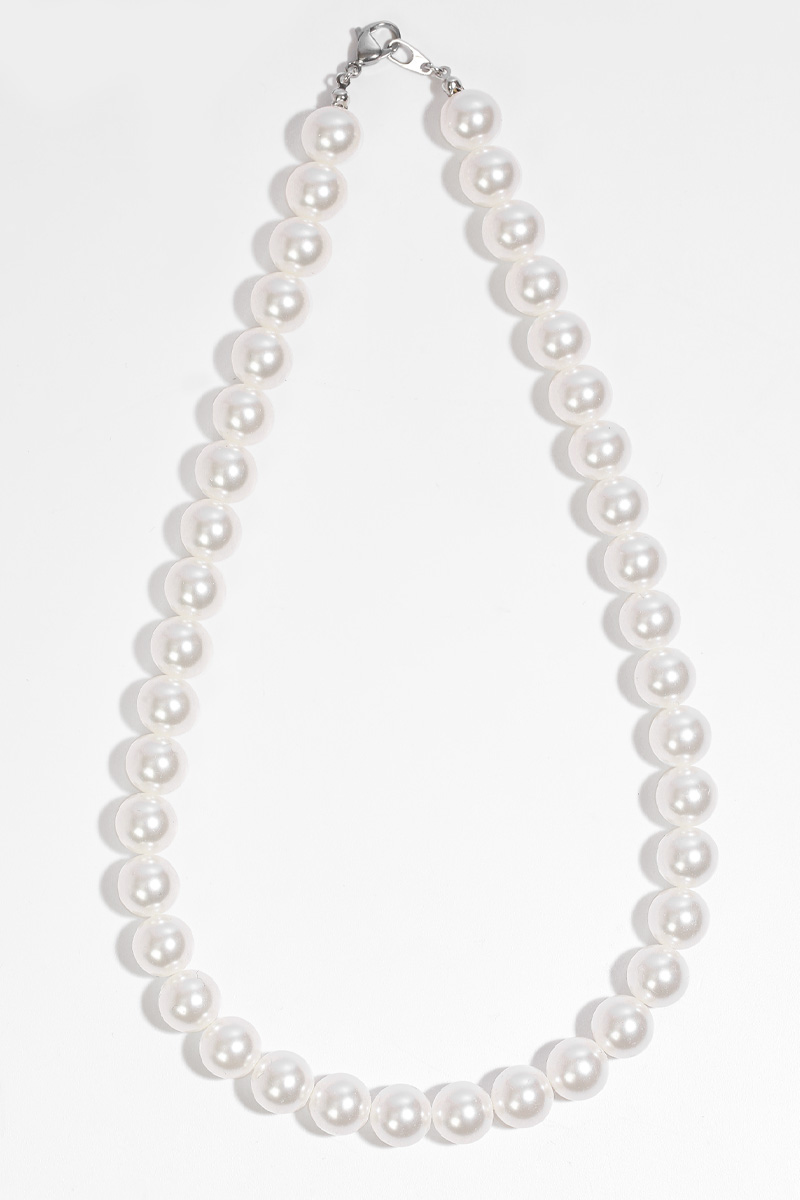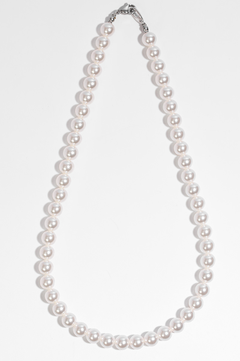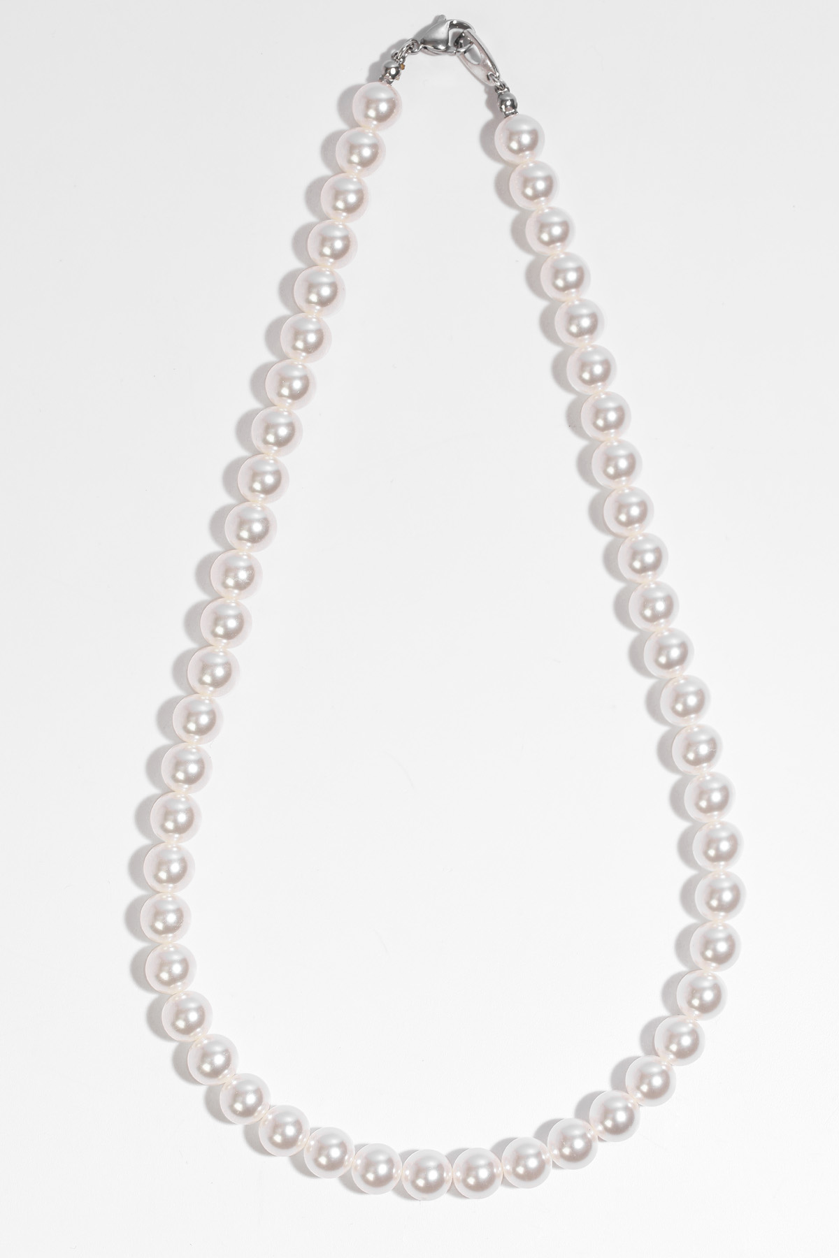 Timeless Pearl : 쇄골 위로 흐르는 가장 우아한 약속, 클래식 핵진주 네크리스 긴 기장의 네크리스가 주는 여유로움도 좋지만, 때로는 정제된 세미 포멀 룩에 마침표를 찍어줄 산뜻한 기장의 진주가 간절해질 때가 있죠? 데일리 룩부터 격식 있는 자리까지, 품격을 소리 없이 대변해 줄 '프린세스 핵진주 네크리스'를 자신 있게 제안드려요 :) 총길이는 사이즈별로 미세한 차이가 있지만 50cm가 넘어가는 마티네 기장은 나이 들어 보이는 경향이 있어요. 하지만 41~43cm의 프린세스 기장은 혹시 진주 퀄리티도 좋고 디자인도 마음에 드는데, 그건 진주 자체의 문제가 아니라 진주 목걸이는 41~43cm의 프린세스 기장이 섬세한 3mm부터 존재감 넘치는 16mm까지, 총 7가지의 다채로운 사이즈를 준비했어요 아주 작은 차이가 만드는 분위기의 변화는 그 자체로 어마어마하답니다 :) 3mm - 8mm : 매일의 업무 룩에 은은한 생기를 더하는 데일리 사이즈 10mm - 12mm : 우아함과 지적인 아우라가 동시에 느껴지는 베이직 사이즈 14mm - 16mm : 특별한 날, 단 하나의 아이템으로 시선을 압도하는 포인트 사이즈 이미 보유하신 진주 목걸이 사이즈를 체크 후 그 사이즈를 기준으로 더 드라마틱하거나, 혹은 더 섬세한 연출을 위해 맞춤형으로 선택해 주세요 :) 깨끗하고 단아한 크림 아이보리 빛의 핵진주 100 소재로 제작했어요. 인위적이지 않은 은은한 광택과 매끄러운 정원형의 실루엣은 어떤 옷차림도 순식간에 고급스럽게 변화시키는 마법 같은 힘을 가졌답니다. 진주를 이어주는 속재료는 와이어 느낌 나도록 수겹의 실로 제작하여 유연하면서도 탄탄한 내구성을 갖추었어요. 뒷목의 고리 부분은 매끄러운 표면 가공이 특징인 신주 합금 소재를 사용했어요. 녹슬 염려가 없고 자력이 없어 착용감이 매우 쾌적하며, 금속 알러지에 예민하신 분들도 비교적 안심하고 사용하실 수 있는 소재예요. 수많은 지인분께 선물하며 검증된 소재인 만큼, 피부에 닿는 사소한 거슬림까지 세심하게 신경 썼답니다. 펜던트가 있는 화려한 디자인도 좋지만, 결국 손이 가장 자주 가는 것은 이토록 완벽한 클래식 디자인이지요. 셔츠 깃 사이로 살짝 보이는 진주 한 알, 혹은 심플한 블랙 드레스 위에 얹어진 진주 한 줄은 그 어떤 보석보다 강력한 우아함을 뿜어낼 거예요. 곧 업데이트될 동일 소재의 귀걸이와 함께 세트로 연출하신다면 더욱 완성도 높은 룩을 즐기실 수 있어요!42cm, 가장 젊어 보이는 프린세스 기장