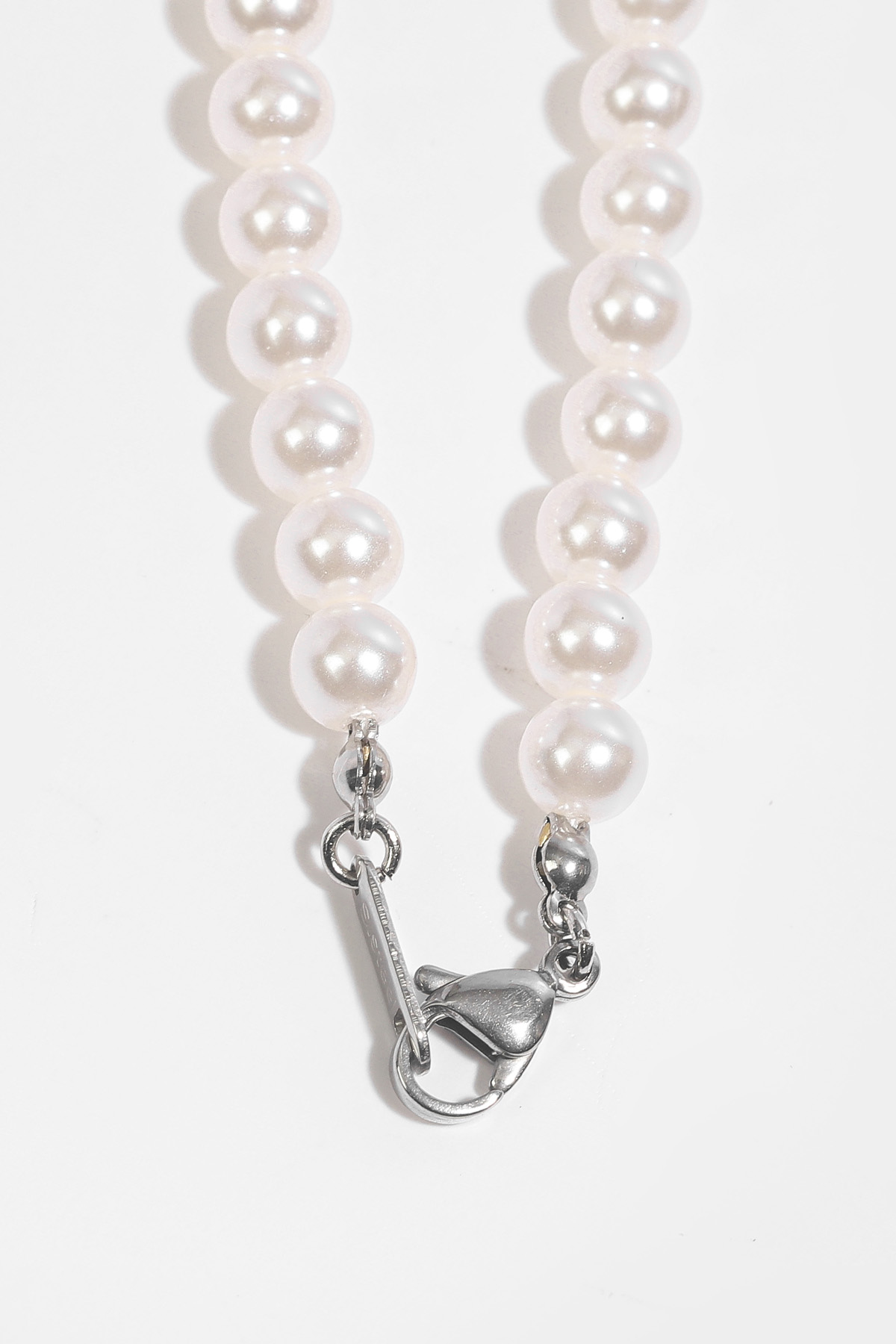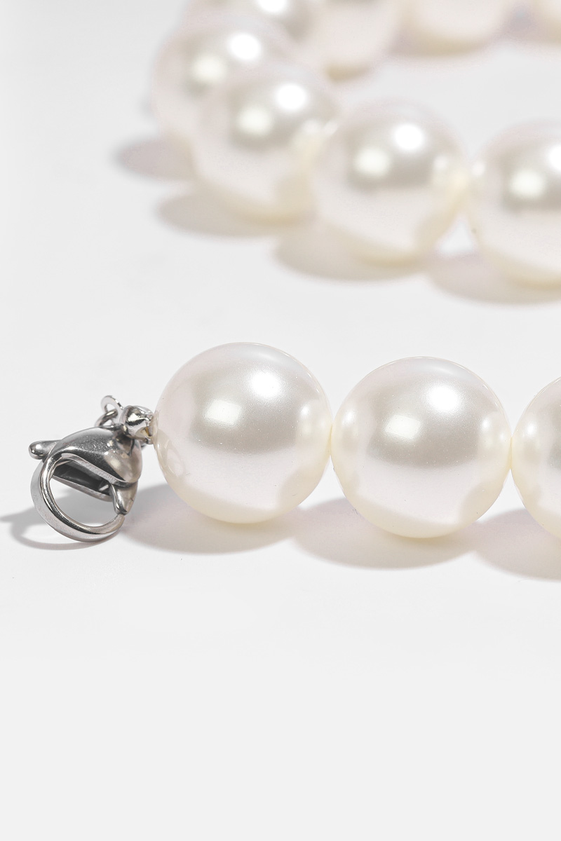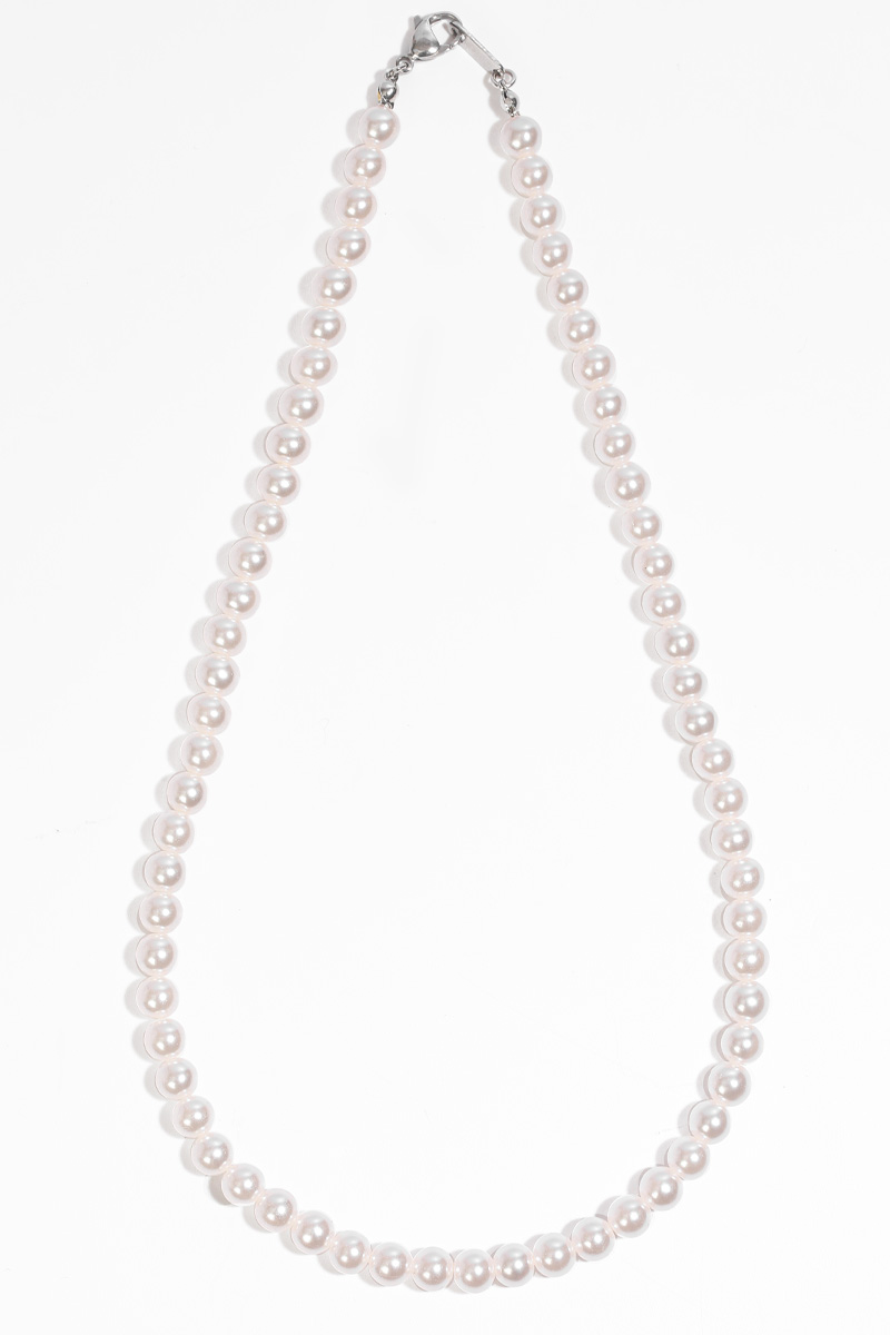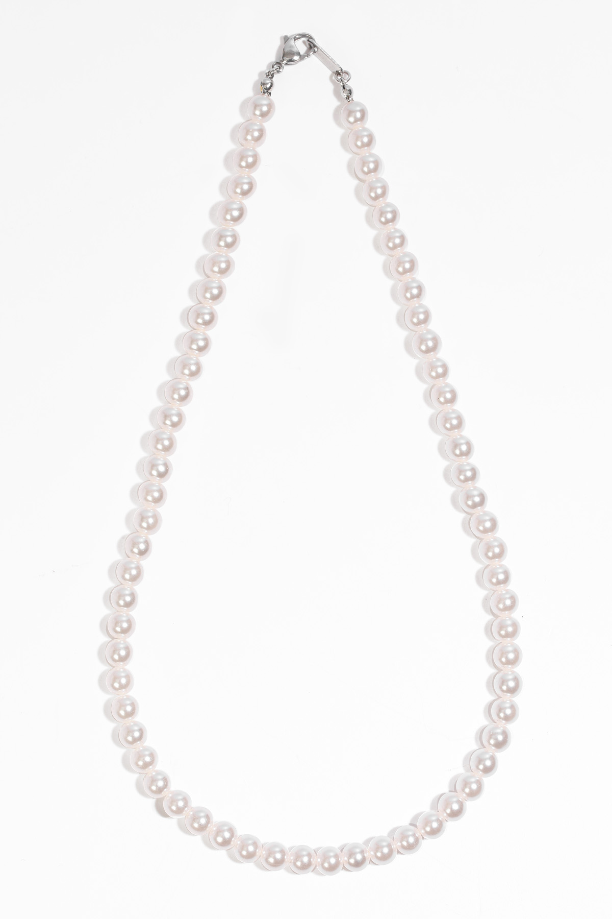 Timeless Pearl : 쇄골 위로 흐르는 가장 우아한 약속, 클래식 핵진주 네크리스 긴 기장의 네크리스가 주는 여유로움도 좋지만, 때로는 정제된 세미 포멀 룩에 마침표를 찍어줄 산뜻한 기장의 진주가 간절해질 때가 있죠? 데일리 룩부터 격식 있는 자리까지, 품격을 소리 없이 대변해 줄 '프린세스 핵진주 네크리스'를 자신 있게 제안드려요 :) 총길이는 사이즈별로 미세한 차이가 있지만 50cm가 넘어가는 마티네 기장은 나이 들어 보이는 경향이 있어요. 하지만 41~43cm의 프린세스 기장은 혹시 진주 퀄리티도 좋고 디자인도 마음에 드는데, 그건 진주 자체의 문제가 아니라 진주 목걸이는 41~43cm의 프린세스 기장이 섬세한 3mm부터 존재감 넘치는 16mm까지, 총 7가지의 다채로운 사이즈를 준비했어요 아주 작은 차이가 만드는 분위기의 변화는 그 자체로 어마어마하답니다 :) 3mm - 8mm : 매일의 업무 룩에 은은한 생기를 더하는 데일리 사이즈 10mm - 12mm : 우아함과 지적인 아우라가 동시에 느껴지는 베이직 사이즈 14mm - 16mm : 특별한 날, 단 하나의 아이템으로 시선을 압도하는 포인트 사이즈 이미 보유하신 진주 목걸이 사이즈를 체크 후 그 사이즈를 기준으로 더 드라마틱하거나, 혹은 더 섬세한 연출을 위해 맞춤형으로 선택해 주세요 :) 깨끗하고 단아한 크림 아이보리 빛의 핵진주 100 소재로 제작했어요. 인위적이지 않은 은은한 광택과 매끄러운 정원형의 실루엣은 어떤 옷차림도 순식간에 고급스럽게 변화시키는 마법 같은 힘을 가졌답니다. 진주를 이어주는 속재료는 와이어 느낌 나도록 수겹의 실로 제작하여 유연하면서도 탄탄한 내구성을 갖추었어요. 뒷목의 고리 부분은 매끄러운 표면 가공이 특징인 신주 합금 소재를 사용했어요. 녹슬 염려가 없고 자력이 없어 착용감이 매우 쾌적하며, 금속 알러지에 예민하신 분들도 비교적 안심하고 사용하실 수 있는 소재예요. 수많은 지인분께 선물하며 검증된 소재인 만큼, 피부에 닿는 사소한 거슬림까지 세심하게 신경 썼답니다. 펜던트가 있는 화려한 디자인도 좋지만, 결국 손이 가장 자주 가는 것은 이토록 완벽한 클래식 디자인이지요. 셔츠 깃 사이로 살짝 보이는 진주 한 알, 혹은 심플한 블랙 드레스 위에 얹어진 진주 한 줄은 그 어떤 보석보다 강력한 우아함을 뿜어낼 거예요. 곧 업데이트될 동일 소재의 귀걸이와 함께 세트로 연출하신다면 더욱 완성도 높은 룩을 즐기실 수 있어요!42cm, 가장 젊어 보이는 프린세스 기장