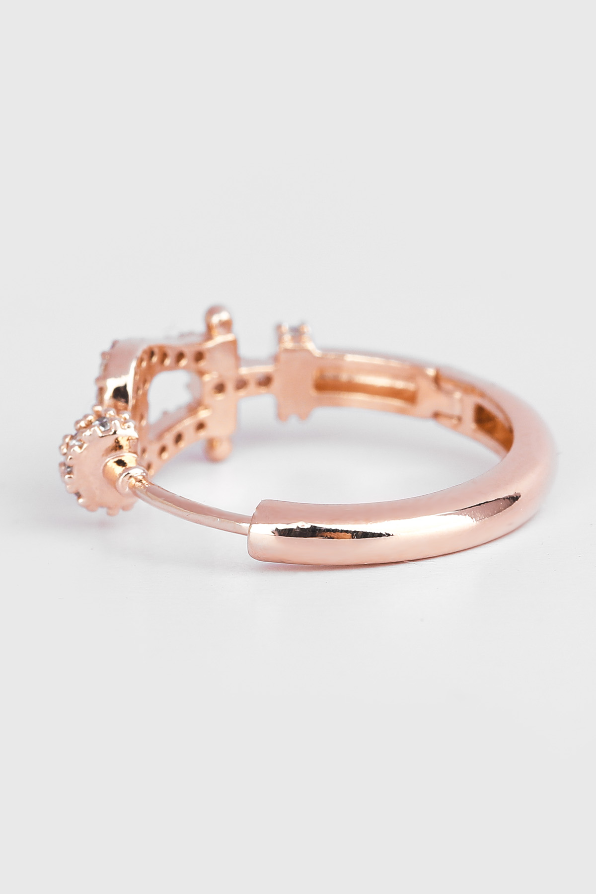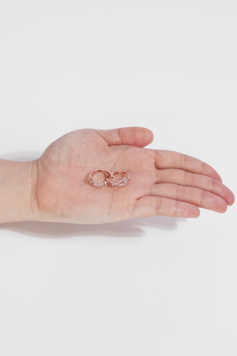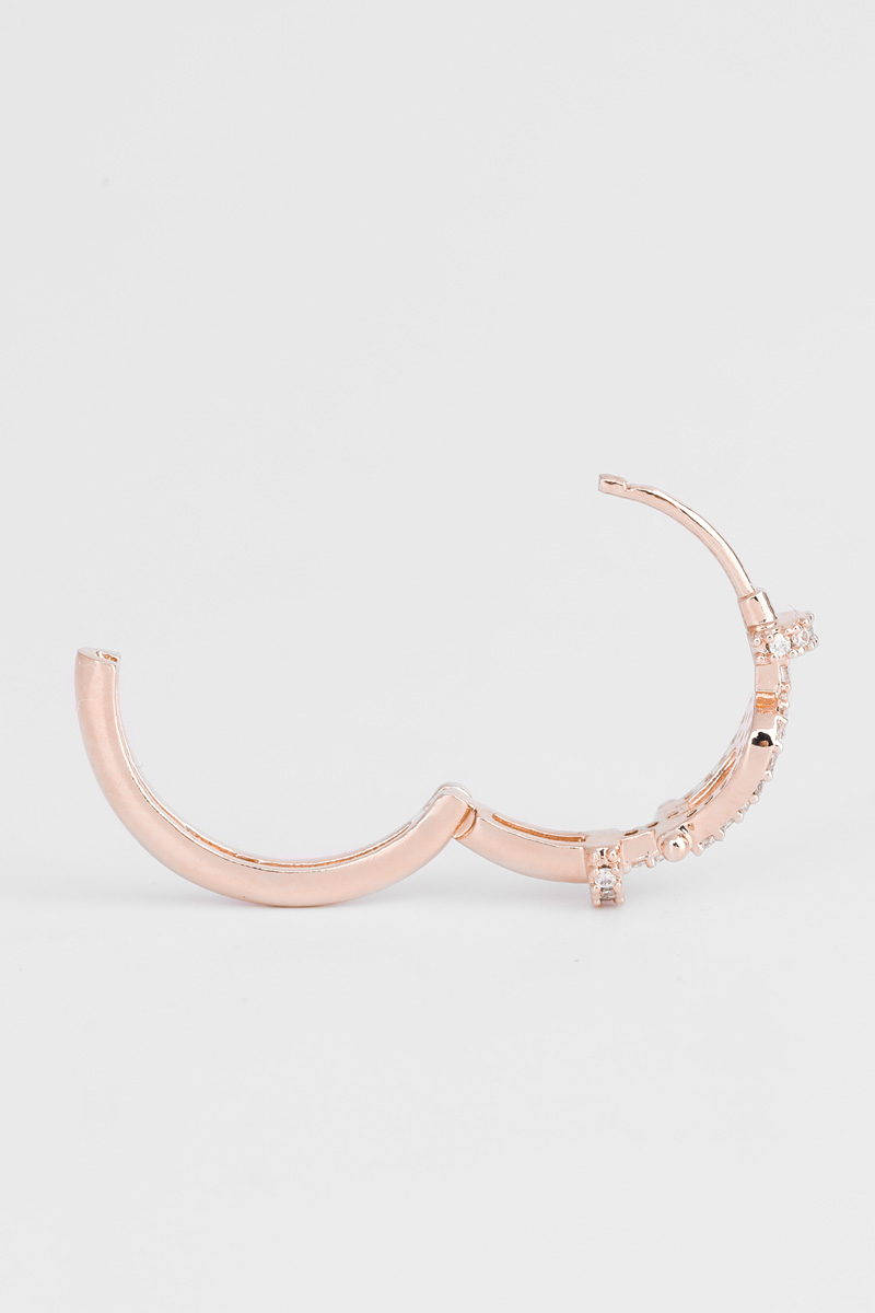 FRED Force 10 Shackle Signature Hoop Earring 요트의 샤클(Shackle)에서 영감을 받은 정교하게 파베 세팅된 큐빅이 메탈 바와 링 디테일이 만들어내는 균형 잡힌 비율은 로즈골드 톤의 부드러운 광택과 데일리 룩부터 격식 있는 스타일링까지 놓인 형태만 보면 ✓ 베이스 금속 ✓ 포스트 침 ✓ 큐빅 세팅 마치 반지처럼 보이지만 귀걸이로 사용하는 오픈 후프 디자인. 안지름을 고려했을 때 하나의 주얼리로 후프 이어링이다 보니 ✓ 열리는 폭 ✓ 안지름 일반적인 귓볼 두께가 최대 5mm 정도임을 감안했을 때, ✓ 겉지름 ✓ 안지름 ✓ 포스텐 길이 (정면 기준) ✓ 무게