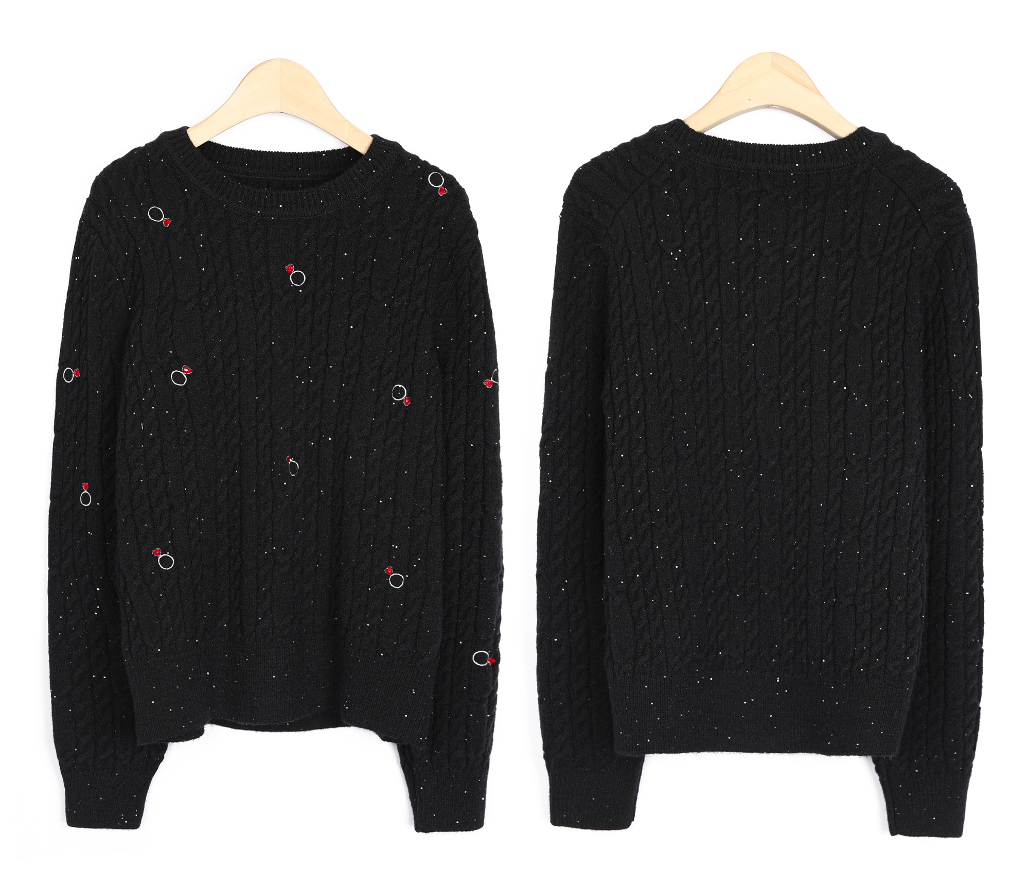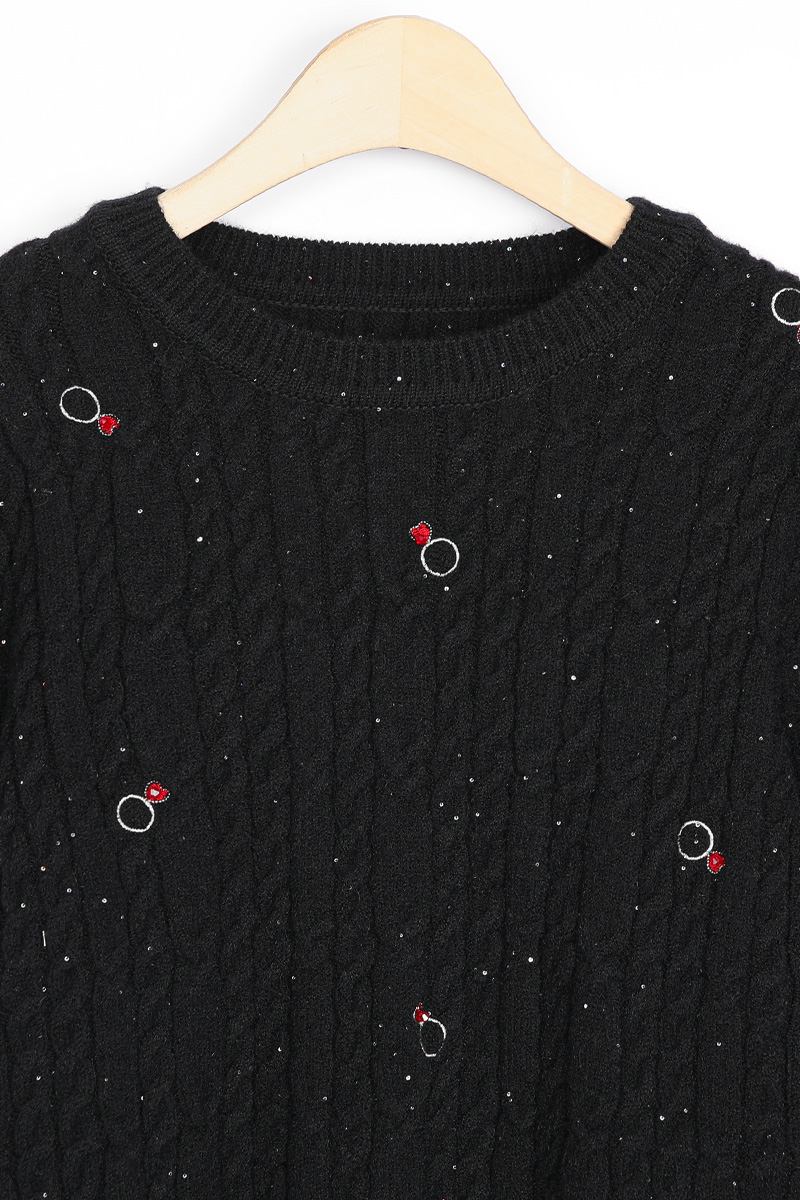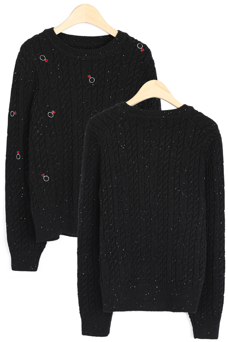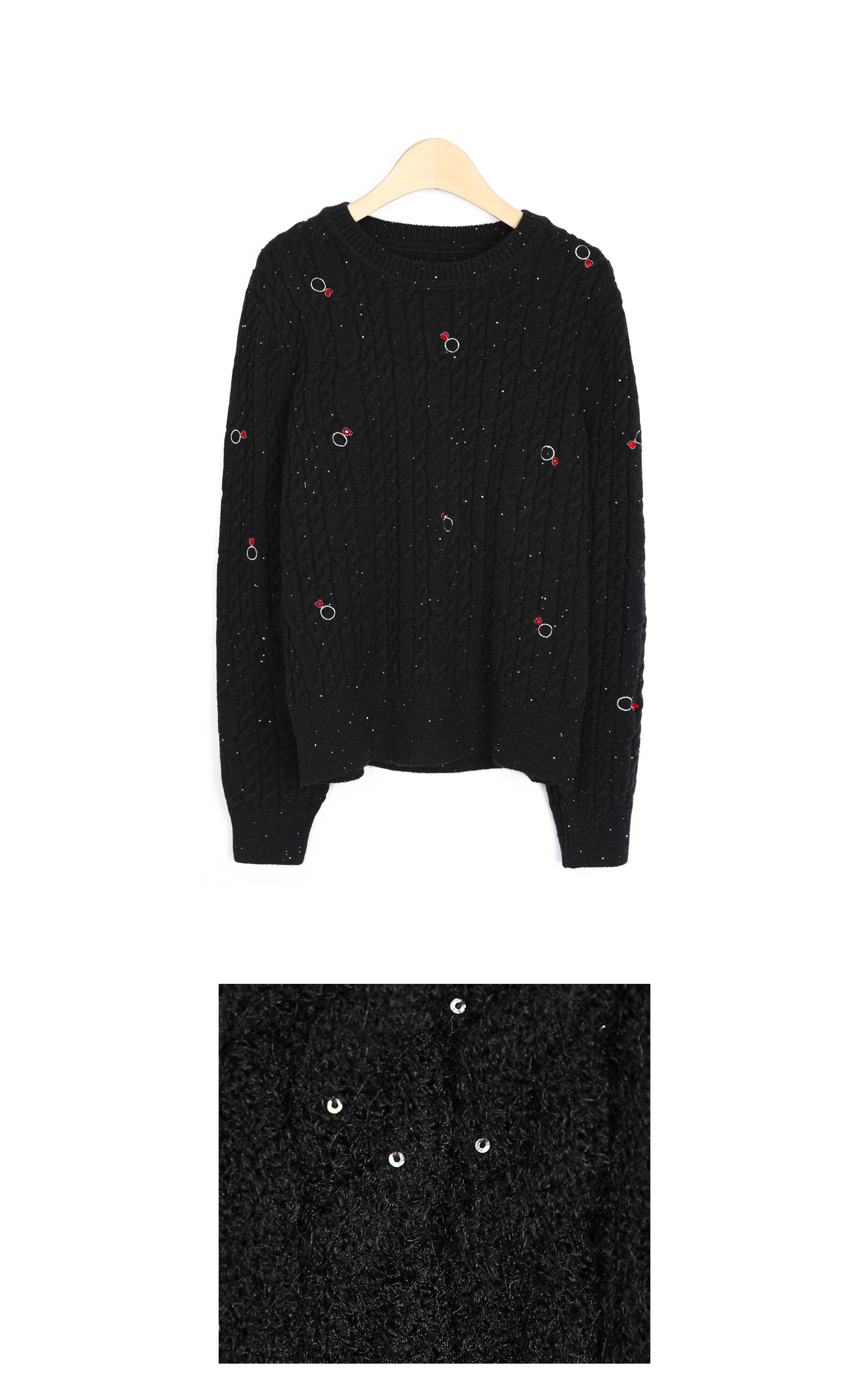 케이블 원사 위에 별처럼 흩뿌려진 미니 스팽글 비즈가 빛을 따라 은은하게 반짝이고, 그 사이사이로 보석처럼 자리 잡은 레드 큐빅 링 자수가 시선을 사로잡아요. 몸판 전체를 감싸는 케이블 짜임은 클래식하면서도 여성스러운 분위기를 풍기고, 스팽글과 자수 디테일은 유니크하면서도 우아한 매력을 더해드리는, 이너로 레이어드해도, 단품으로 포인트를 주며 입어도 좋은 라운드 케이블 니트랍니다! 양모 33%, 나일론 45%, 알파카 22% 혼방으로 제작하여 폭신한 두께감과 함께 모감이 전혀 까끌하지 않은 질감을 완성했어요. 피부에 매트하게 닿는 감촉이라 단독으로 입기에도, 레이어드하기에도 편안하답니다. 도톰한 원사 두께에 케이블 직조가 더해져 상당히 포근해 보이며, 실제로도 따스하고 부드러운 소재라 늦은 가을부터 초봄까지 입기 좋은 FW-SS 겸용 니트예요. 5게이지와 7게이지를 혼합하여 제작한 본체는 두 가지 형태의 케이블 짜임이 교차 배열되어 있어요. 이 두 가지 짜임이 교차 배열되거나 2:1 비율로 조합되는 구조라 밋밋하거나 지루한 느낌이 전혀 없답니다. 직조 특성상 자연스러운 입체감이 살아나며, 착용 시 몸선을 정리해주는 효과까지 더해져요. 네크라인, 소맷단, 밑단은 같은 게이지에 골지직을 가미하여 시보리 골지 형태로 제작해 탄탄하고 안정적인 마무리를 자랑해요. 본체 전체에 들어간 미니 비즈 스팽글은 배열 자체가 널찍하게 되어 있어도 은하수를 흩뿌려놓은 듯 환상적인 느낌으로 연출돼요. 스팽글 사이사이로 보이는 애끼 반지 사이즈의 레드 루비 링 자수 디테일이 귀엽고 여성스러운 인상을 한껏 살려주죠. 참고로 스팽글은 몸판 앞뒷면 전체에 들어가 있지만, 루비 자수 링은 몸판 정면과 슬리브 정면에만 있어요. 뒤쪽에는 링 자수 디테일이 없는 디자인으로 미니 스팽글만으로 간결하게 포인트 되는 핏을 보실 수 있답니다! 조금 쌀쌀한 날씨에도 단독 착용하기에 무리 없는 톰톰한 FW용 니트임에도, 신기하게 몸선을 정리해주는 느낌이라 원래 몸보다 아담하고 날씬해 보이게끔 즐길 수 있었어요. 두 가지의 케이블 및 웨이브 직조가 클래식함은 물론 여성스러운 분위기까지 안겨주었고, 보석처럼 흩뿌려진 스팽글 비즈와 포인트 레드 큐빅 링 자수 디테일 덕분에 유니크하고도 귀여운 느낌이 살아 있어 입는 순간 몇 살은 기본으로 어려 보이는 느낌이랍니다 :) 66 사이즈 착용 뒤에서 보았을 때에는 루비 링 자수 디테일이 없어 적당히 포인트 되는 심플한 스팽글 니트 느낌이지만, 사이드와 정면을 따라 시선이 가면서 귀엽고 여성스러운 링 자수 디테일이 돋보이기에 앞뒷면 반전 매력 최강이에요 :) 겨울 이너로 패딩, 코트, 야상 안에 레이어드하면 스팽글 디테일이 은은하게 드러나며 포인트를 주어요. 따뜻함과 스타일을 동시에 챙길 수 있답니다. 초봄 단품으로 클래식하며 여성스러운 핏의 케이블 직조에 비즈 스팽글과 컬러 큐빅 자수 디테일이 더해져 단품 니트로도 충분히 포인트가 되는 디자인. 매치 팁Sparkle Cable Knit