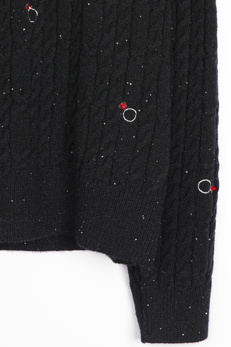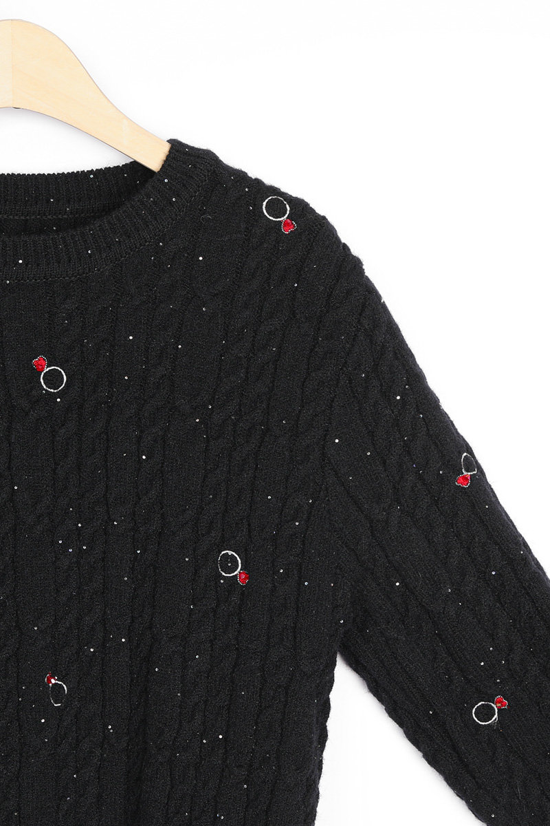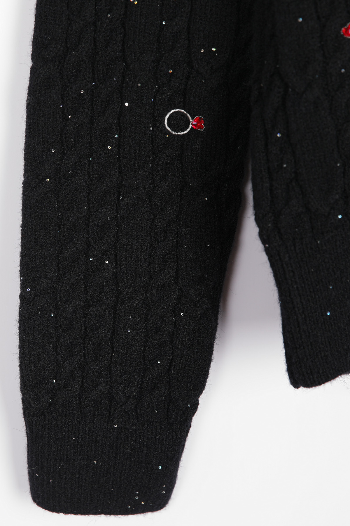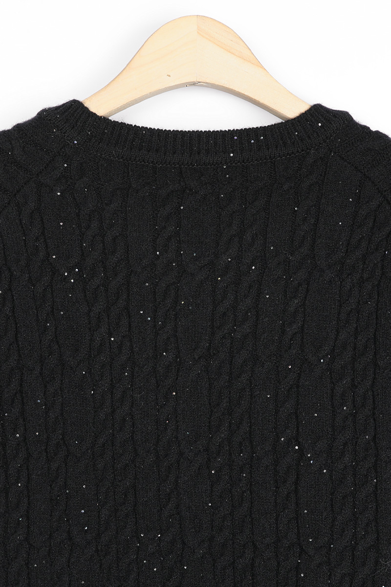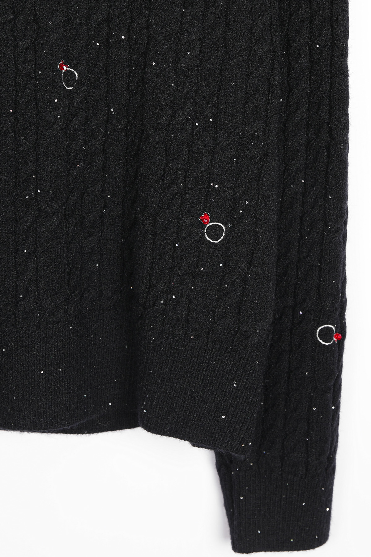 케이블 원사 위에 별처럼 흩뿌려진 미니 스팽글 비즈가 빛을 따라 은은하게 반짝이고, 그 사이사이로 보석처럼 자리 잡은 레드 큐빅 링 자수가 시선을 사로잡아요. 몸판 전체를 감싸는 케이블 짜임은 클래식하면서도 여성스러운 분위기를 풍기고, 스팽글과 자수 디테일은 유니크하면서도 우아한 매력을 더해드리는, 이너로 레이어드해도, 단품으로 포인트를 주며 입어도 좋은 라운드 케이블 니트랍니다! 양모 33%, 나일론 45%, 알파카 22% 혼방으로 제작하여 폭신한 두께감과 함께 모감이 전혀 까끌하지 않은 질감을 완성했어요. 피부에 매트하게 닿는 감촉이라 단독으로 입기에도, 레이어드하기에도 편안하답니다. 도톰한 원사 두께에 케이블 직조가 더해져 상당히 포근해 보이며, 실제로도 따스하고 부드러운 소재라 늦은 가을부터 초봄까지 입기 좋은 FW-SS 겸용 니트예요. 5게이지와 7게이지를 혼합하여 제작한 본체는 두 가지 형태의 케이블 짜임이 교차 배열되어 있어요. 이 두 가지 짜임이 교차 배열되거나 2:1 비율로 조합되는 구조라 밋밋하거나 지루한 느낌이 전혀 없답니다. 직조 특성상 자연스러운 입체감이 살아나며, 착용 시 몸선을 정리해주는 효과까지 더해져요. 네크라인, 소맷단, 밑단은 같은 게이지에 골지직을 가미하여 시보리 골지 형태로 제작해 탄탄하고 안정적인 마무리를 자랑해요. 본체 전체에 들어간 미니 비즈 스팽글은 배열 자체가 널찍하게 되어 있어도 은하수를 흩뿌려놓은 듯 환상적인 느낌으로 연출돼요. 스팽글 사이사이로 보이는 애끼 반지 사이즈의 레드 루비 링 자수 디테일이 귀엽고 여성스러운 인상을 한껏 살려주죠. 참고로 스팽글은 몸판 앞뒷면 전체에 들어가 있지만, 루비 자수 링은 몸판 정면과 슬리브 정면에만 있어요. 뒤쪽에는 링 자수 디테일이 없는 디자인으로 미니 스팽글만으로 간결하게 포인트 되는 핏을 보실 수 있답니다! 조금 쌀쌀한 날씨에도 단독 착용하기에 무리 없는 톰톰한 FW용 니트임에도, 신기하게 몸선을 정리해주는 느낌이라 원래 몸보다 아담하고 날씬해 보이게끔 즐길 수 있었어요. 두 가지의 케이블 및 웨이브 직조가 클래식함은 물론 여성스러운 분위기까지 안겨주었고, 보석처럼 흩뿌려진 스팽글 비즈와 포인트 레드 큐빅 링 자수 디테일 덕분에 유니크하고도 귀여운 느낌이 살아 있어 입는 순간 몇 살은 기본으로 어려 보이는 느낌이랍니다 :) 66 사이즈 착용 뒤에서 보았을 때에는 루비 링 자수 디테일이 없어 적당히 포인트 되는 심플한 스팽글 니트 느낌이지만, 사이드와 정면을 따라 시선이 가면서 귀엽고 여성스러운 링 자수 디테일이 돋보이기에 앞뒷면 반전 매력 최강이에요 :) 겨울 이너로 패딩, 코트, 야상 안에 레이어드하면 스팽글 디테일이 은은하게 드러나며 포인트를 주어요. 따뜻함과 스타일을 동시에 챙길 수 있답니다. 초봄 단품으로 클래식하며 여성스러운 핏의 케이블 직조에 비즈 스팽글과 컬러 큐빅 자수 디테일이 더해져 단품 니트로도 충분히 포인트가 되는 디자인. 매치 팁Sparkle Cable Knit