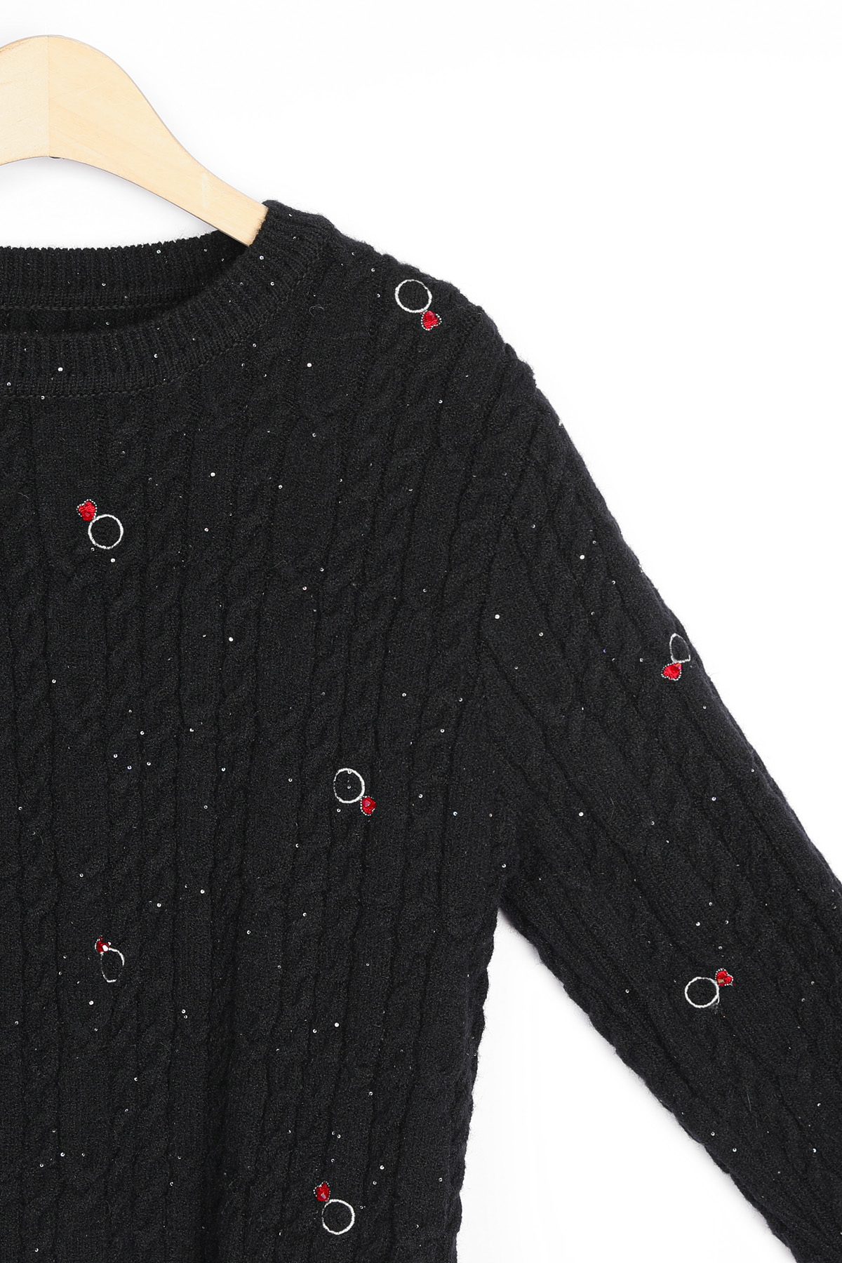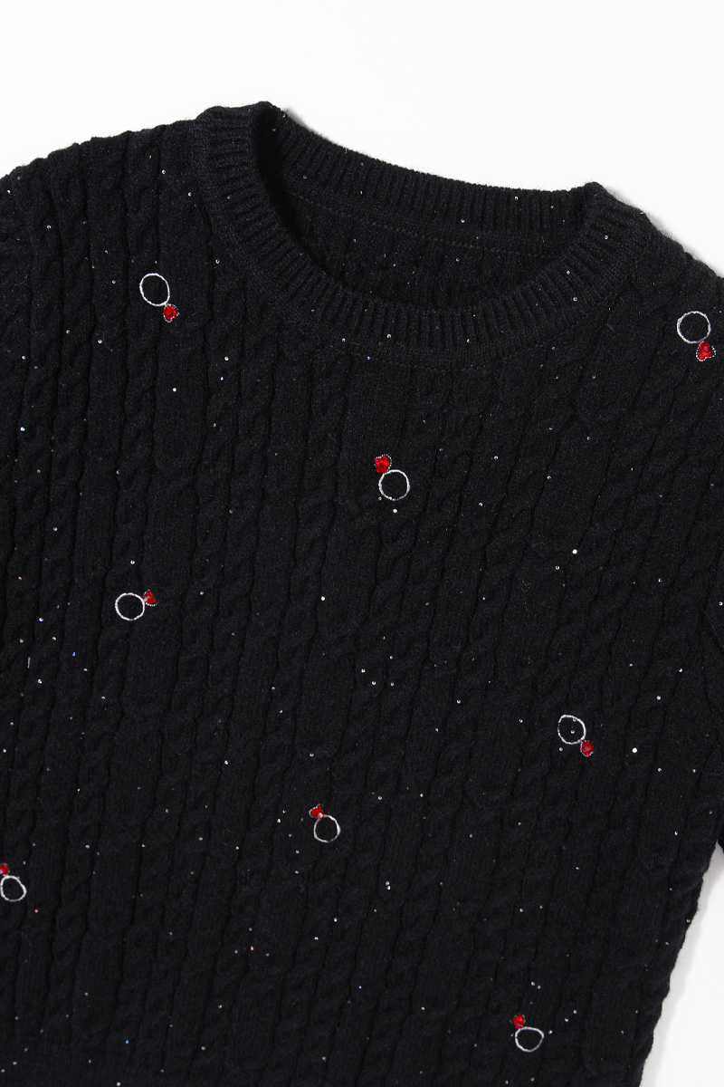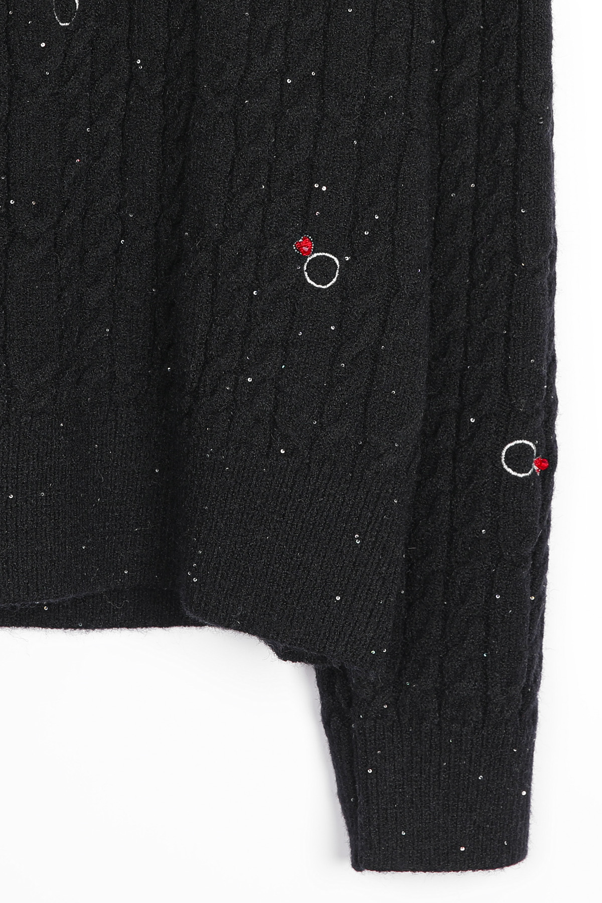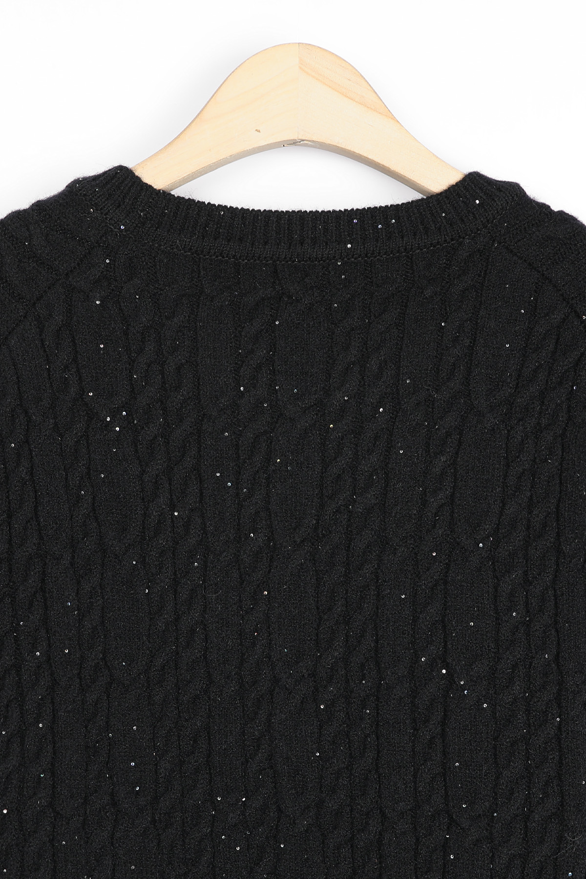 케이블 원사 위에 별처럼 흩뿌려진 미니 스팽글 비즈가 빛을 따라 은은하게 반짝이고, 그 사이사이로 보석처럼 자리 잡은 레드 큐빅 링 자수가 시선을 사로잡아요. 몸판 전체를 감싸는 케이블 짜임은 클래식하면서도 여성스러운 분위기를 풍기고, 스팽글과 자수 디테일은 유니크하면서도 우아한 매력을 더해드리는, 이너로 레이어드해도, 단품으로 포인트를 주며 입어도 좋은 라운드 케이블 니트랍니다! 양모 33%, 나일론 45%, 알파카 22% 혼방으로 제작하여 폭신한 두께감과 함께 모감이 전혀 까끌하지 않은 질감을 완성했어요. 피부에 매트하게 닿는 감촉이라 단독으로 입기에도, 레이어드하기에도 편안하답니다. 도톰한 원사 두께에 케이블 직조가 더해져 상당히 포근해 보이며, 실제로도 따스하고 부드러운 소재라 늦은 가을부터 초봄까지 입기 좋은 FW-SS 겸용 니트예요. 5게이지와 7게이지를 혼합하여 제작한 본체는 두 가지 형태의 케이블 짜임이 교차 배열되어 있어요. 이 두 가지 짜임이 교차 배열되거나 2:1 비율로 조합되는 구조라 밋밋하거나 지루한 느낌이 전혀 없답니다. 직조 특성상 자연스러운 입체감이 살아나며, 착용 시 몸선을 정리해주는 효과까지 더해져요. 네크라인, 소맷단, 밑단은 같은 게이지에 골지직을 가미하여 시보리 골지 형태로 제작해 탄탄하고 안정적인 마무리를 자랑해요. 본체 전체에 들어간 미니 비즈 스팽글은 배열 자체가 널찍하게 되어 있어도 은하수를 흩뿌려놓은 듯 환상적인 느낌으로 연출돼요. 스팽글 사이사이로 보이는 애끼 반지 사이즈의 레드 루비 링 자수 디테일이 귀엽고 여성스러운 인상을 한껏 살려주죠. 참고로 스팽글은 몸판 앞뒷면 전체에 들어가 있지만, 루비 자수 링은 몸판 정면과 슬리브 정면에만 있어요. 뒤쪽에는 링 자수 디테일이 없는 디자인으로 미니 스팽글만으로 간결하게 포인트 되는 핏을 보실 수 있답니다! 조금 쌀쌀한 날씨에도 단독 착용하기에 무리 없는 톰톰한 FW용 니트임에도, 신기하게 몸선을 정리해주는 느낌이라 원래 몸보다 아담하고 날씬해 보이게끔 즐길 수 있었어요. 두 가지의 케이블 및 웨이브 직조가 클래식함은 물론 여성스러운 분위기까지 안겨주었고, 보석처럼 흩뿌려진 스팽글 비즈와 포인트 레드 큐빅 링 자수 디테일 덕분에 유니크하고도 귀여운 느낌이 살아 있어 입는 순간 몇 살은 기본으로 어려 보이는 느낌이랍니다 :) 66 사이즈 착용 뒤에서 보았을 때에는 루비 링 자수 디테일이 없어 적당히 포인트 되는 심플한 스팽글 니트 느낌이지만, 사이드와 정면을 따라 시선이 가면서 귀엽고 여성스러운 링 자수 디테일이 돋보이기에 앞뒷면 반전 매력 최강이에요 :) 겨울 이너로 패딩, 코트, 야상 안에 레이어드하면 스팽글 디테일이 은은하게 드러나며 포인트를 주어요. 따뜻함과 스타일을 동시에 챙길 수 있답니다. 초봄 단품으로 클래식하며 여성스러운 핏의 케이블 직조에 비즈 스팽글과 컬러 큐빅 자수 디테일이 더해져 단품 니트로도 충분히 포인트가 되는 디자인. 매치 팁Sparkle Cable Knit
