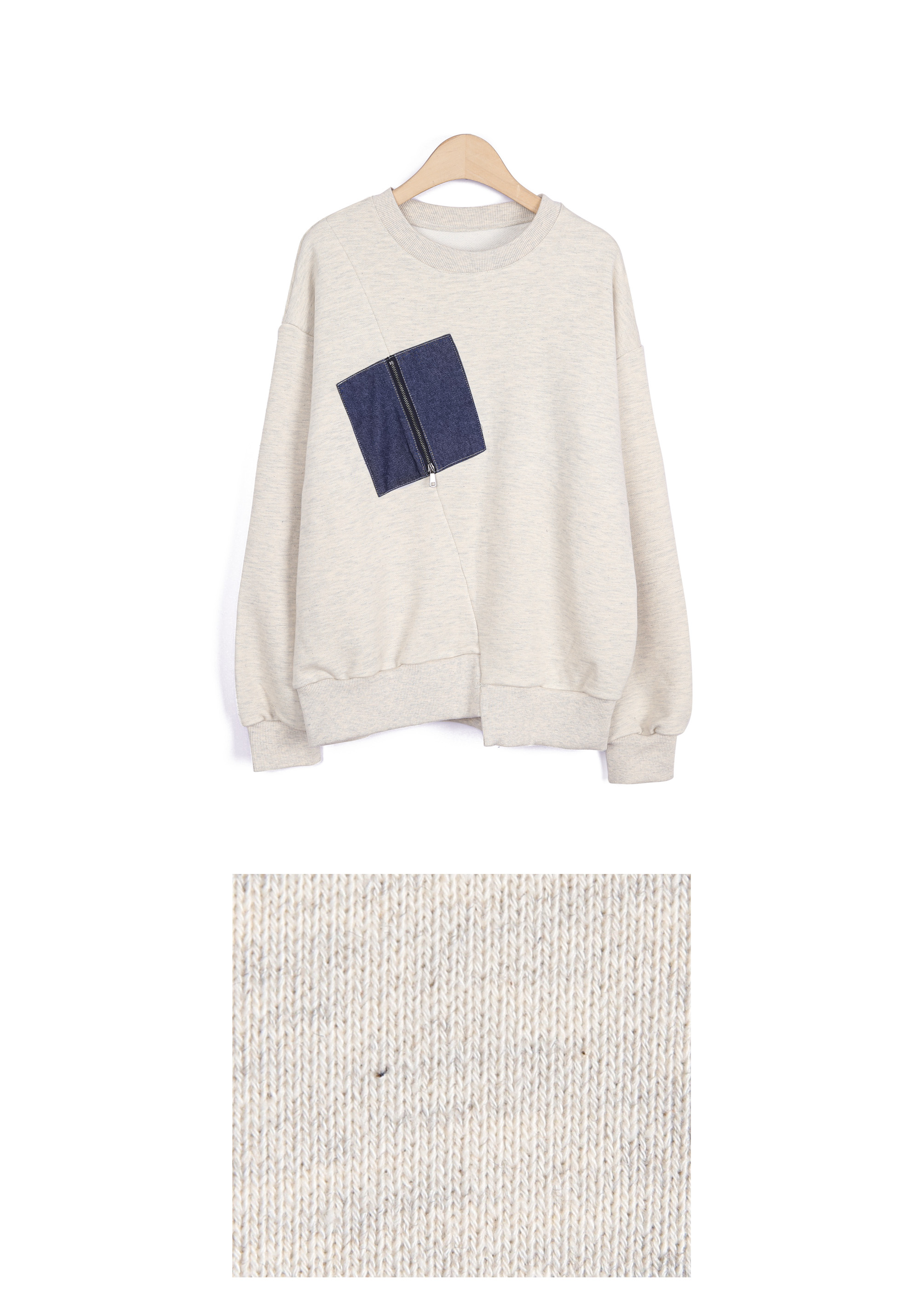 지퍼를 열면 데님 패치 블록 면만큼의