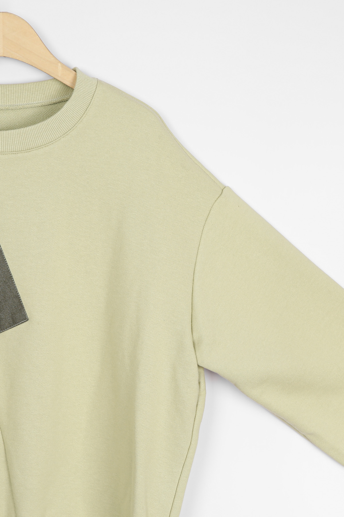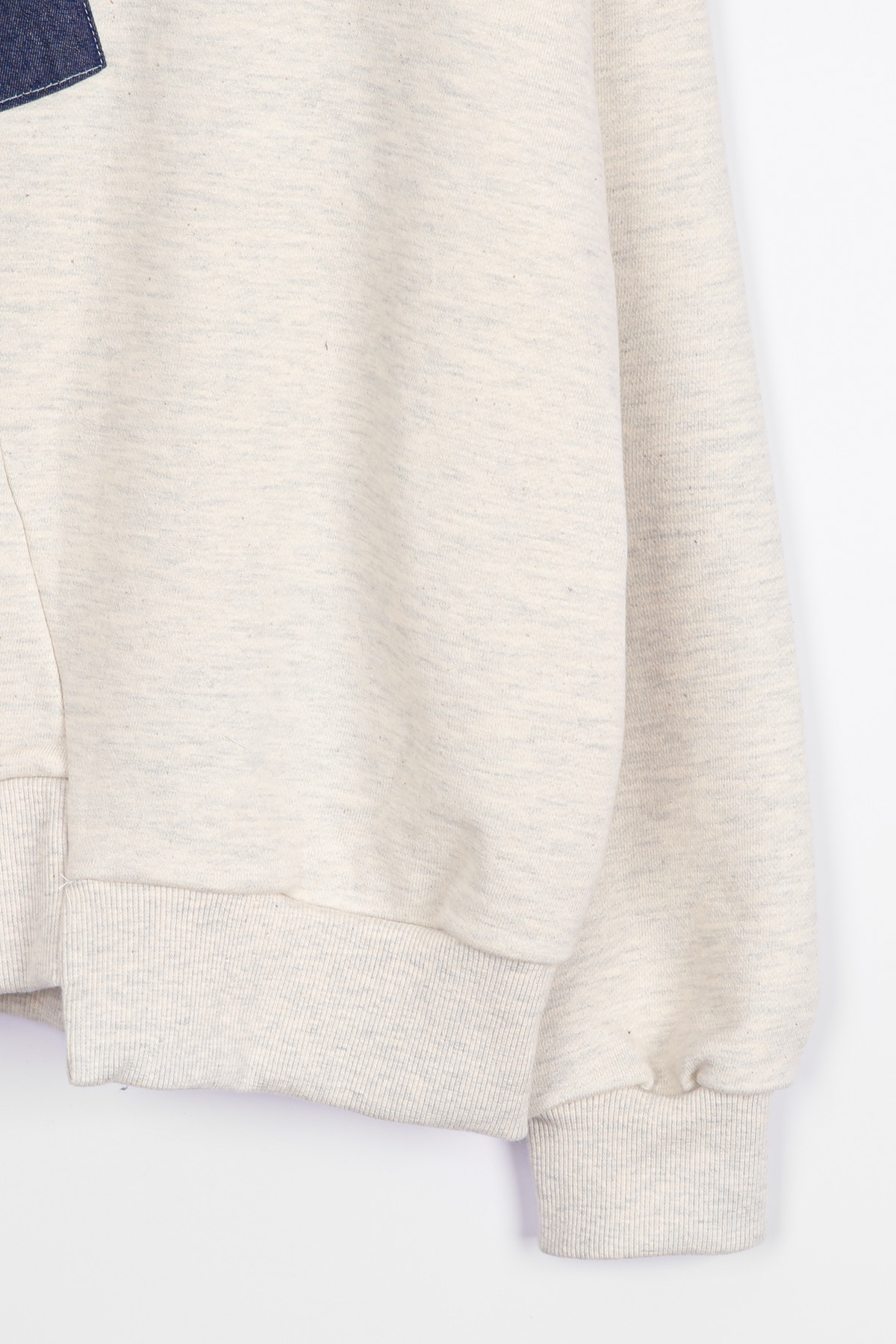 마름모 형태로 자리한 데님 블럭 패치.