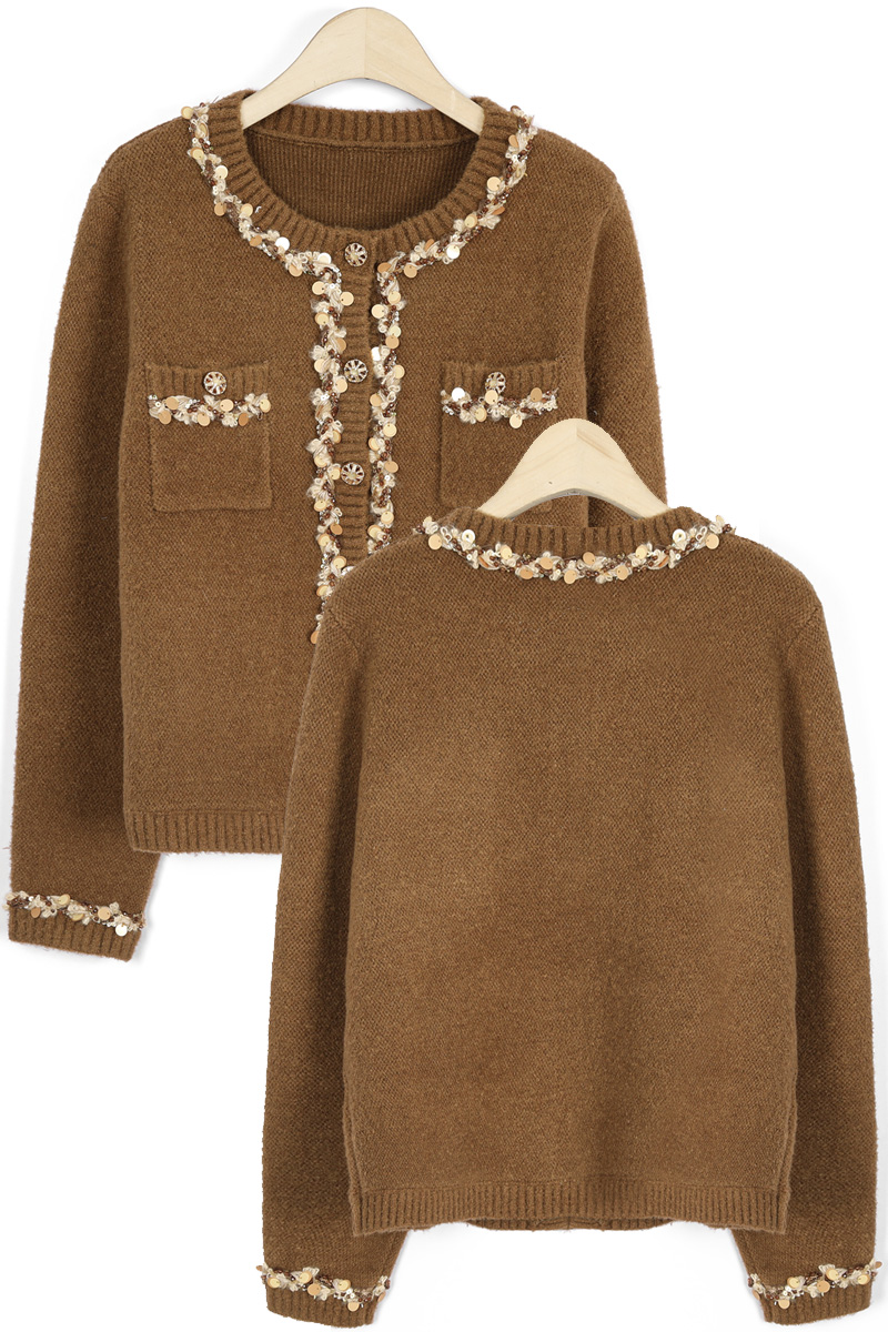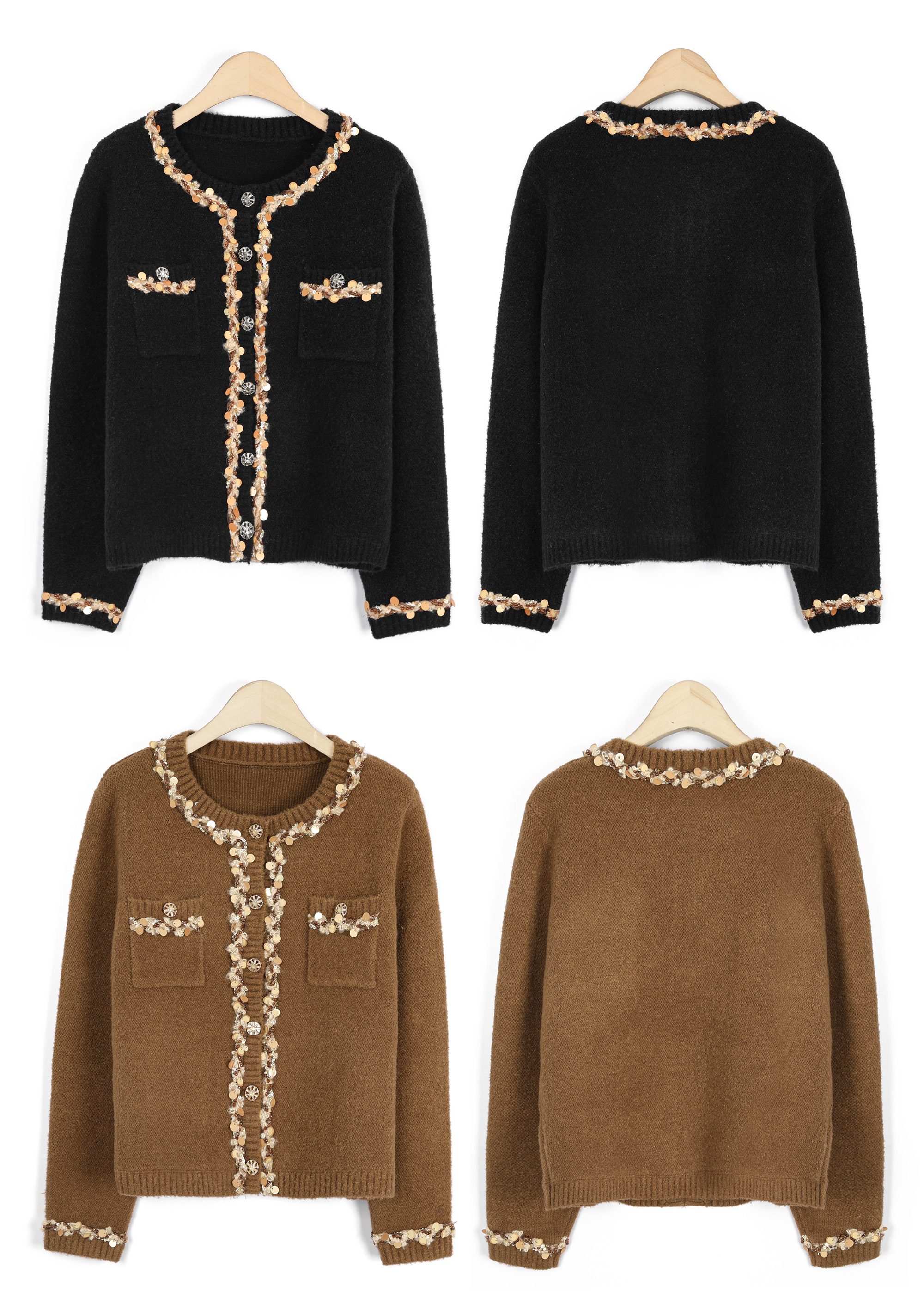 블랙과 카멜 모두 아일렛 스팽글 비즈 컬러는
