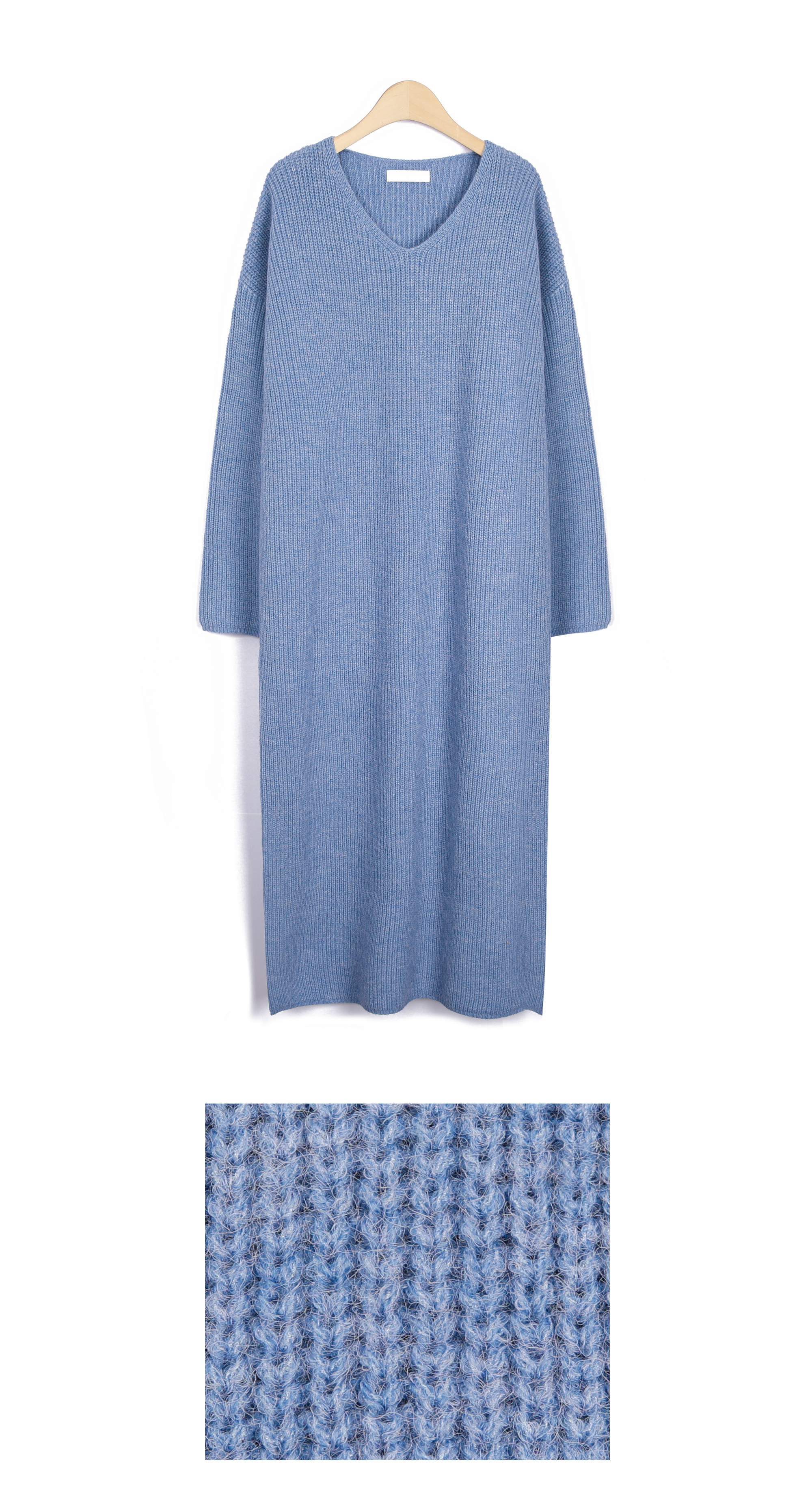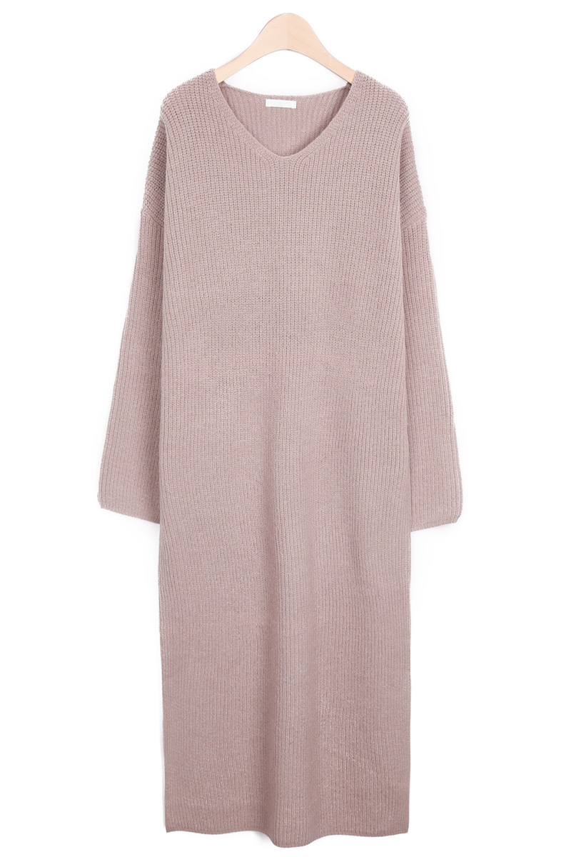 Garter Stitch Knit Dress 아침마다 옷장 앞에서 고민하는 시간. 결국 '믿고 입는 한 벌'이죠. 가벼운 동네 외출부터 지인과의 점심 약속까지, 상체부터 허벅지까지 자연스럽게 흐르는 라인은 절묘한 실루엣을 완성할 거예요 :) 아크릴 42 / 폴리에스터 30 / 나일론 28 1x1 립 구조의 하찌 짜임. 은은한 입체감이 멀리서 보면 심플하지만, 과하지 않지만 결코 평범하지 않은, 울이나 캐시미어가 들어가지 않았다는 건 보풀 걱정 없는 내구성, 겨울 내내, 그리고 초봄까지 처음의 상태를 유지하는 원단. 이것이 데일리 니트 원피스가 갖춰야 할 편의성을 포기한 게 아니라 하찌 조직은 유연한 만큼 주머니 하나가 만드는 두께감, 그 결과 얻은 건 외출복으로서의 완성도를 택한 셈이랄까요? :) 쇄골 중앙에서 2-3cm 아래. 이너를 겹쳐 입지 않아도 되는, 겨울엔 목선이 답답하지 않고, 어깨선은 자연스럽게 내려앉고, 타이트하지 않지만 헐렁하지도 않은, FREE (55-77) 신축성 좋은 니트 조직 덕분에 단품 원피스로 입을 수 있지만 몸에 딱 맞춰 입는 것보다 여유 사이즈를 선호하는 55부터 정 77사이즈까지 충분한 텐션감으로 안정적으로 착용할 수 있어요. 가슴품 57cm, 밑단 56cm. 거의 일자에 가까운 이 비율이 정강이 중간을 가리는 앞길이, 키 165cm 기준 완벽한 밸런스, 안정적으로 소화 가능한 기장이에요. 이너 상의 + 레깅스 + 원피스 + 패딩 단순해 보이지만 두툼한 니트와 기모 팬츠를 겹쳐 입은 것보다 겨울 스타일링이 완성될 거예요 :) 초봄 활용도 역시 놓칠 수 없어요. 브이넥의 적절한 깊이 덕분에 얇은 스카프 하나, 바쁜 아침, 옷장 앞에서 보내는 10분. 고민 없이 꺼내 입을 수 있는 안정감. 퇴근 후 약속 자리에서도 자연스러우며, 그런 한 벌을 찾고 계셨다면,