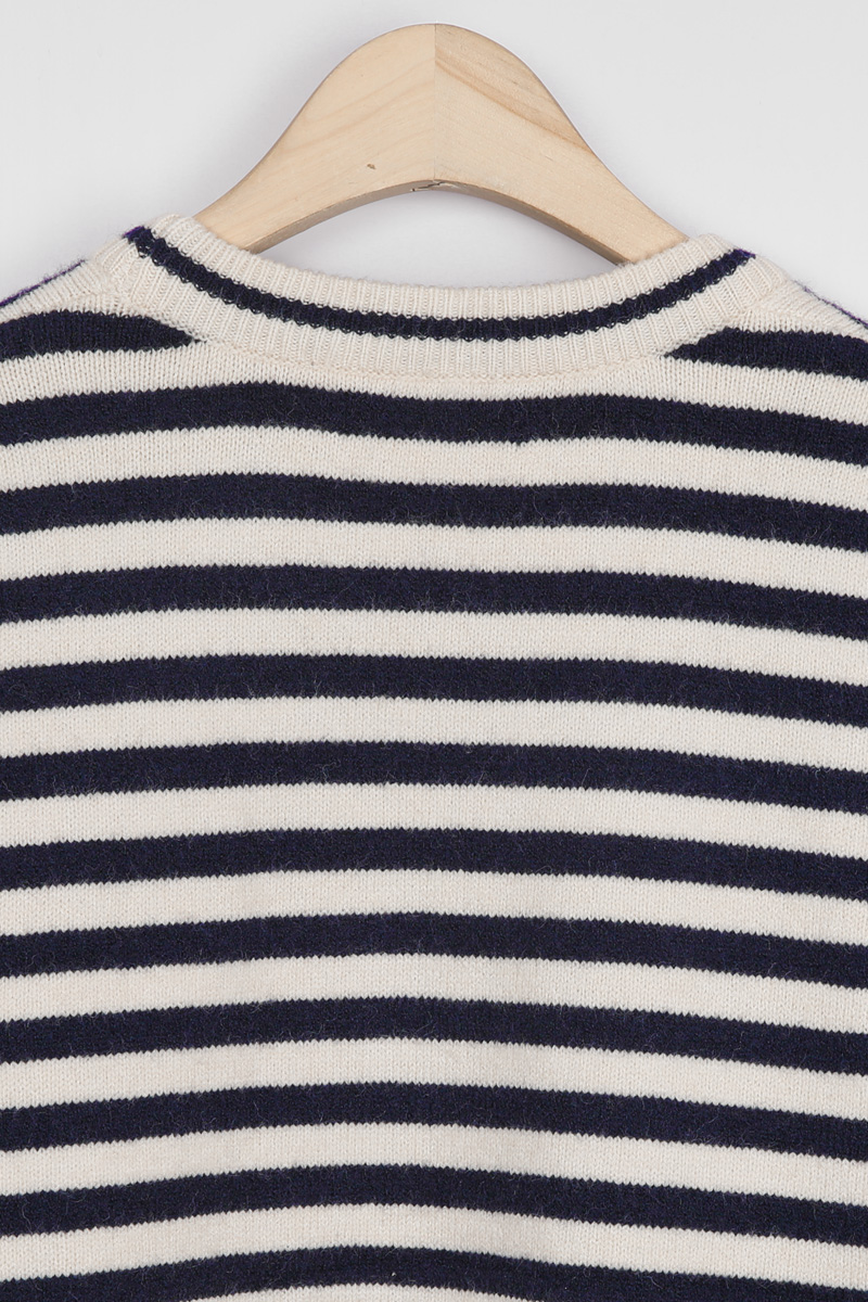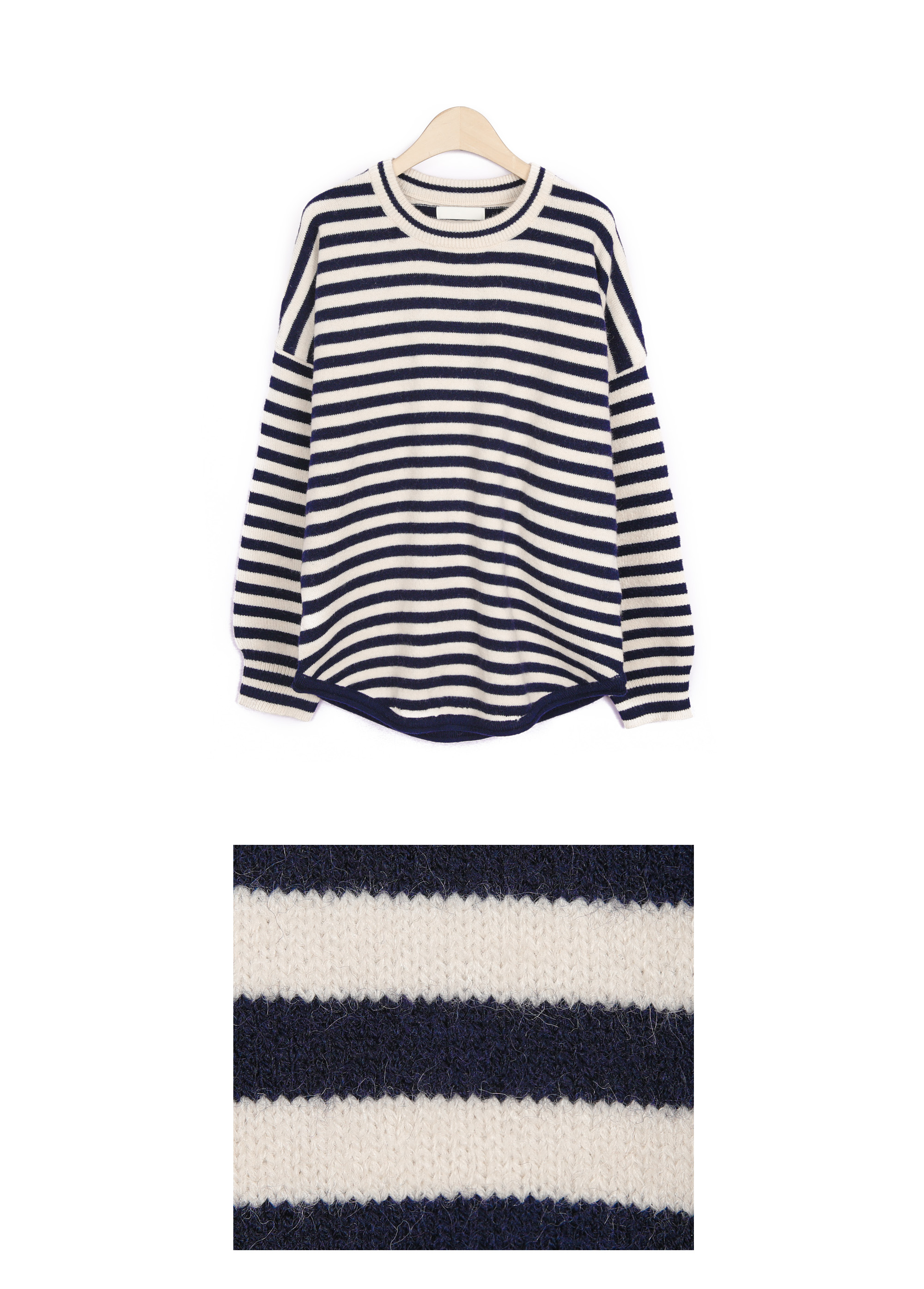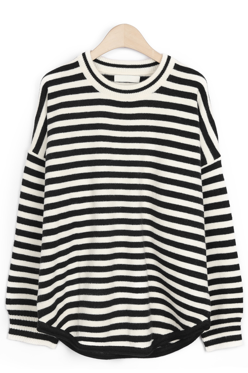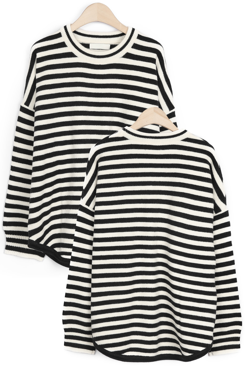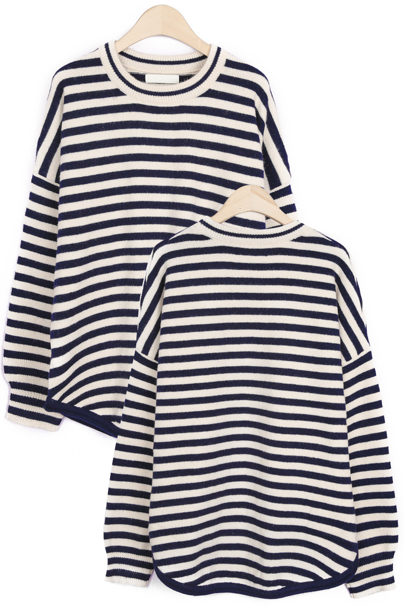 동네 카페에서의 커피 한 잔, 일상의 작은 순간들에 도톰한 FW 니트의 따스함을 간직하면서도 모두 안정감 있게 감싸주는 넉넉한 품. 클래식한 스트라이프 패턴이 동시에 완성하실 수 있어요 :) 쇄골선을 가볍게 덮는 네크라인에 네크라인 시보리 정중앙에는 피부 민감도가 높으신 분의 경우 어깨선이 팔뚝 중간 정도까지 내려오는 팔뚝부터 소매 시보리 윗선까지 소맷단 부분만 가볍게 모아지는 형태인데, 약 7cm 높이의 소맷단 시보리는 측면에서 본 실루엣은 가슴품에서 밑단까지 어깨 & 소매 팔뚝 중간까지 내려오는 라인. 몸판 가장 좁은 폭인 밑단 기준(55cm)으로도 기장 (U라인 커팅으로 사이드가 가장 짧은 구조) 아크릴 42% 폴리에스터 30% 나일론 28% 울이나 캐시미어는 들어가지 않았지만, 네이비 또는 블랙 스트라이프가 스트라이프 폭은 너무 좁지도, 넓지도 않은 니트 조직이 촘촘하게 짜여 밑단은 약 3cm 높이의 시보리로 마감되었으며, 둥근 U라인 커팅 형태로 정면·뒷면 중앙: 중힙을 가리는 기장 가장 신경 쓰이는 밑배의 중앙과 근거리 외출 캐주얼 데일리 계절 활용 관련 상품 OPS222(원피스)와는 차이점은 몸통 디자인이 원피스인지, 세미 가오리핏 티셔츠인지의 차이뿐! 두 아이템을 함께 구매하시면