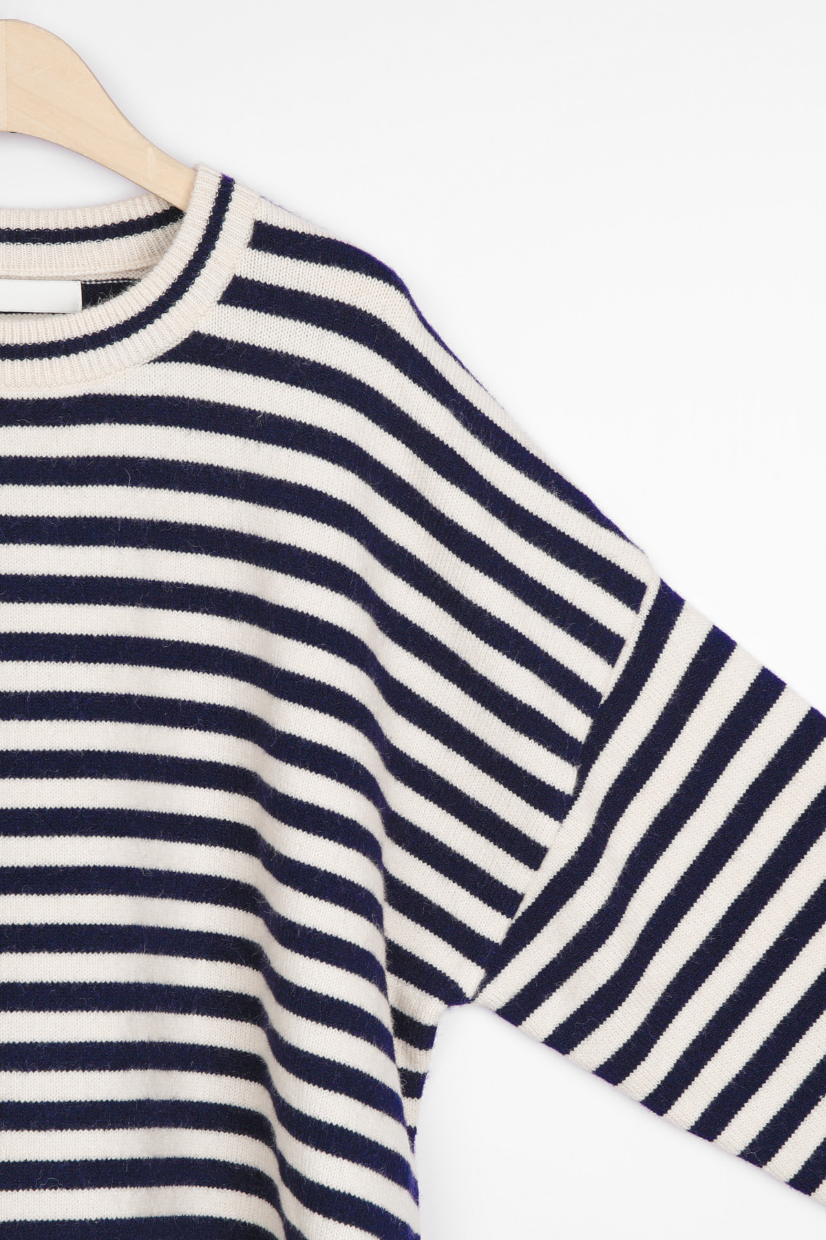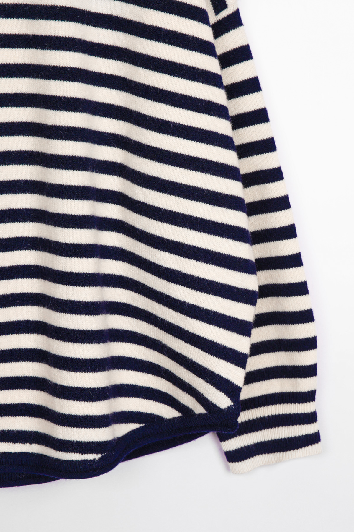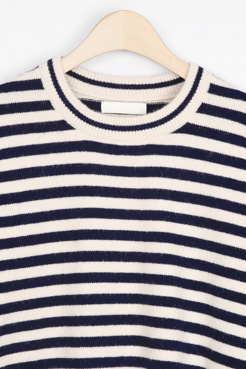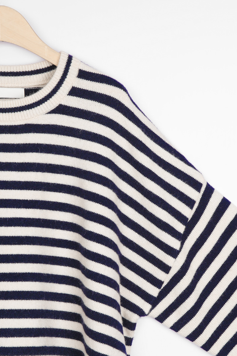동네 카페에서의 커피 한 잔, 일상의 작은 순간들에 도톰한 FW 니트의 따스함을 간직하면서도 모두 안정감 있게 감싸주는 넉넉한 품. 클래식한 스트라이프 패턴이 동시에 완성하실 수 있어요 :) 쇄골선을 가볍게 덮는 네크라인에 네크라인 시보리 정중앙에는 피부 민감도가 높으신 분의 경우 어깨선이 팔뚝 중간 정도까지 내려오는 팔뚝부터 소매 시보리 윗선까지 소맷단 부분만 가볍게 모아지는 형태인데, 약 7cm 높이의 소맷단 시보리는 측면에서 본 실루엣은 가슴품에서 밑단까지 어깨 & 소매 팔뚝 중간까지 내려오는 라인. 몸판 가장 좁은 폭인 밑단 기준(55cm)으로도 기장 (U라인 커팅으로 사이드가 가장 짧은 구조) 아크릴 42% 폴리에스터 30% 나일론 28% 울이나 캐시미어는 들어가지 않았지만, 네이비 또는 블랙 스트라이프가 스트라이프 폭은 너무 좁지도, 넓지도 않은 니트 조직이 촘촘하게 짜여 밑단은 약 3cm 높이의 시보리로 마감되었으며, 둥근 U라인 커팅 형태로 정면·뒷면 중앙: 중힙을 가리는 기장 가장 신경 쓰이는 밑배의 중앙과 근거리 외출 캐주얼 데일리 계절 활용 관련 상품 OPS222(원피스)와는 차이점은 몸통 디자인이 원피스인지, 세미 가오리핏 티셔츠인지의 차이뿐! 두 아이템을 함께 구매하시면