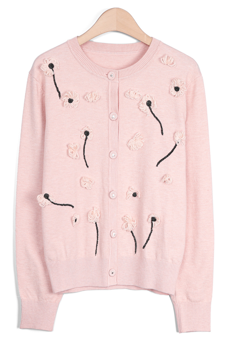 몸판 전면에 섬세하게 피어난 실꽃 모티브예요.