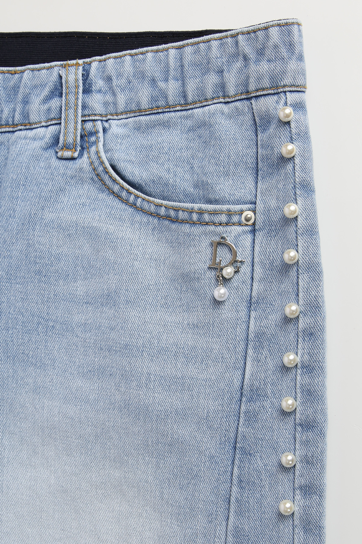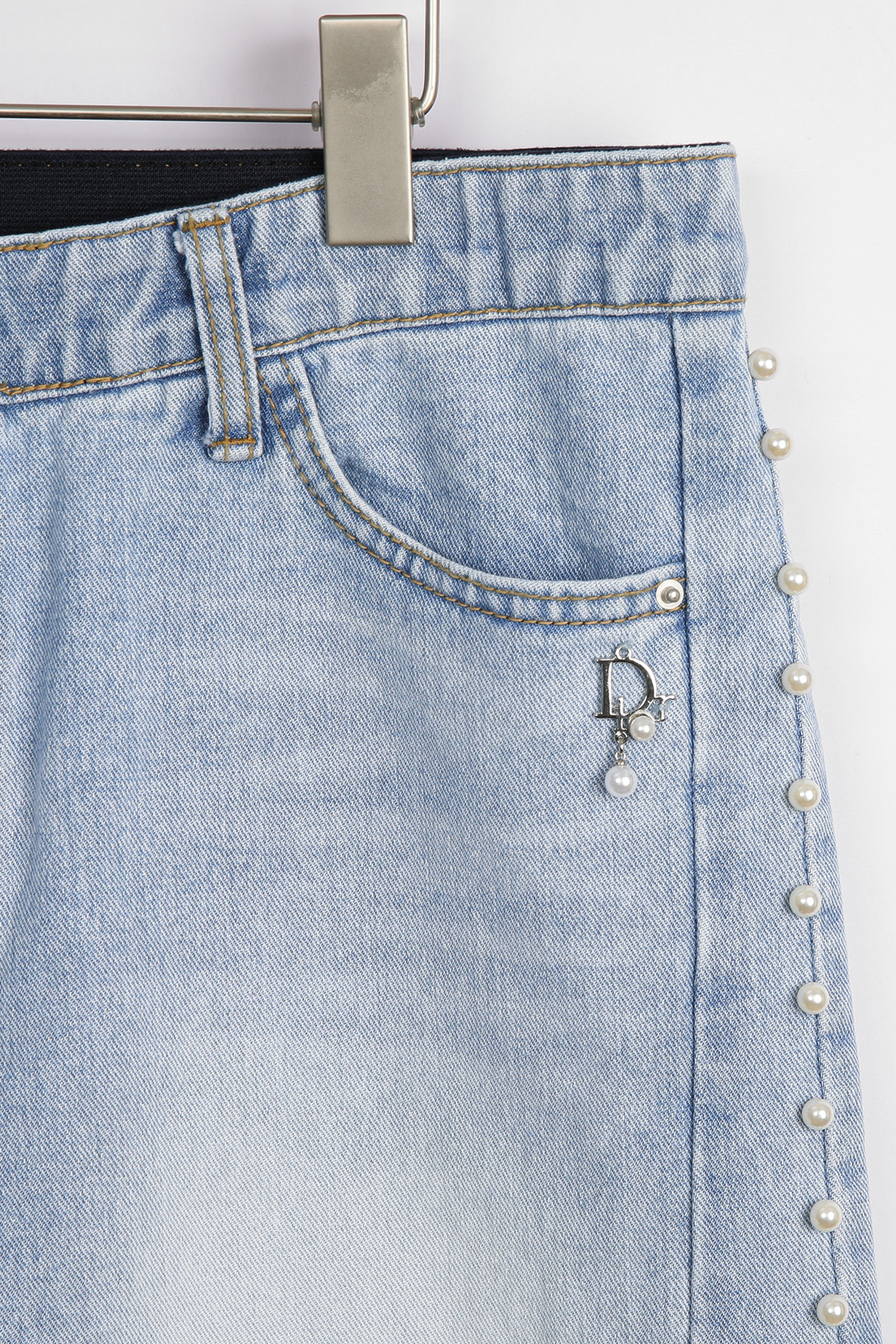 밑단까지 일정한 간격으로 배열된 진주 디테일이