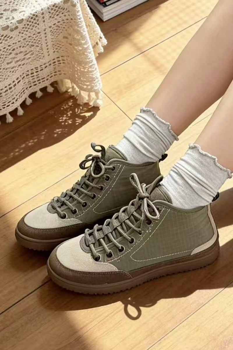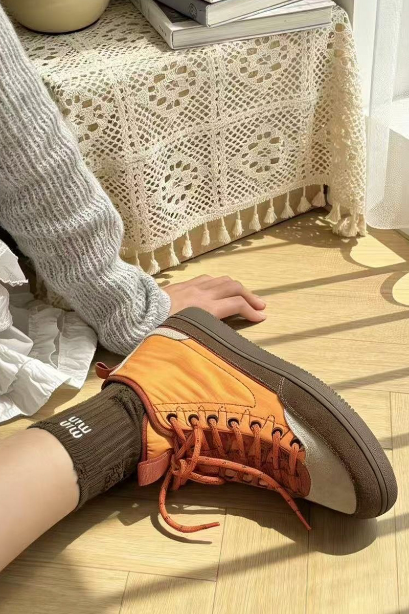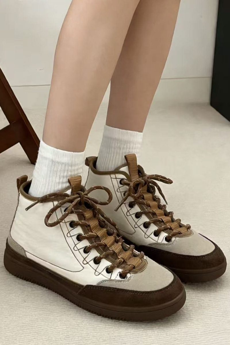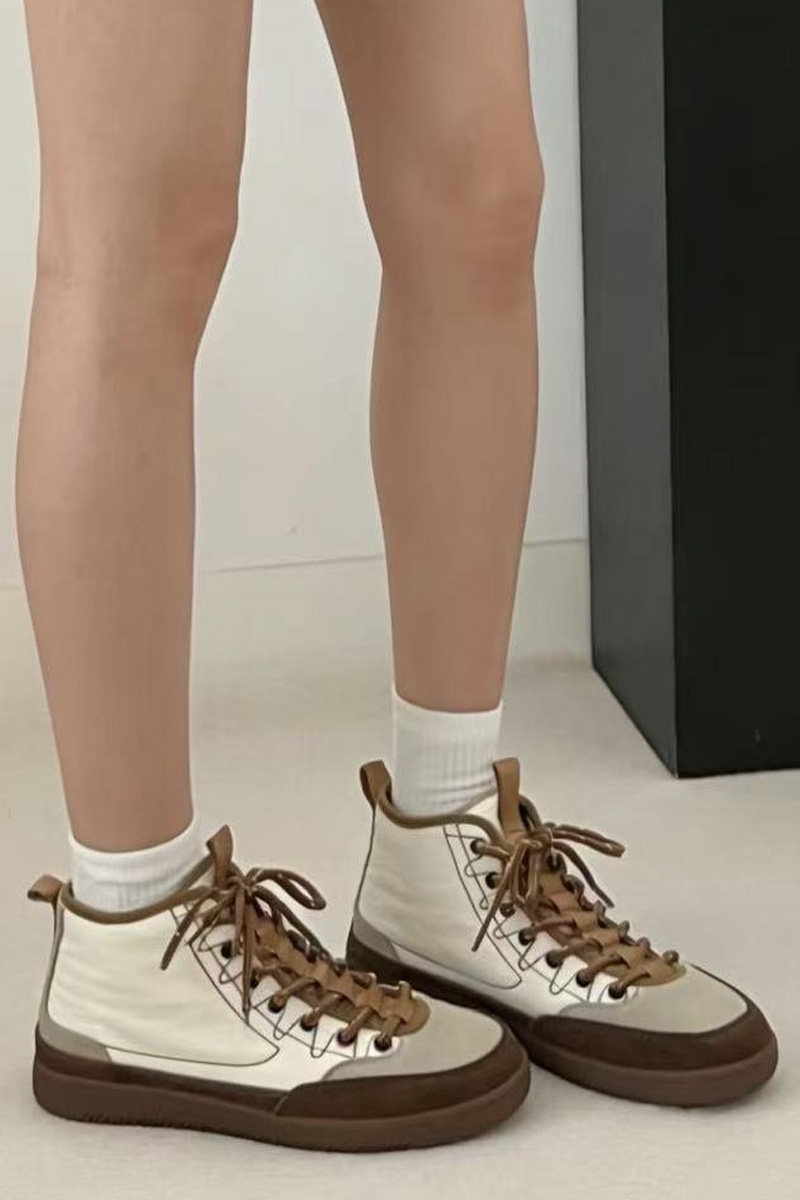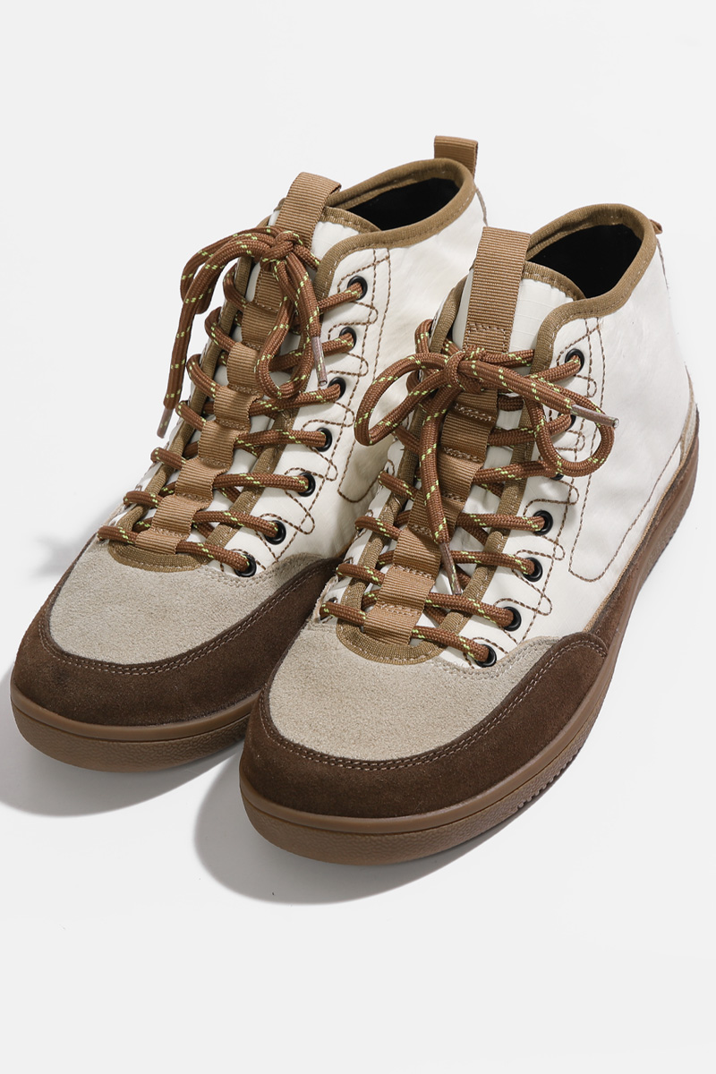 도심 속에서도 세련되게 완성되는 스니커즈 운동화 하나만 바꿔도 전체 분위기가 달라질 때가 있잖아요? 도심 속에서 세련된 무드를 완성해주는 디자인이랍니다! 발목선을 자연스럽게 감싸는 하이탑 실루엣과 안정적인 균형을 만들어 줄거예요. 편안함은 기본이지만, 살아있는 그런 스니커즈랍니다 :) 소가죽 스웨이드와 패디드 나일론의 조화 앞코와 사이드 라인은 소가죽 스웨이드로 제작되어 특히 베이지와 진브라운의 투톤 배색은 고급스럽게 만들어준답니다! 발등을 덮는 본체 부분은 패디드 나일론 소재로 제작되어 겉면은 나일론, 안쪽은 패디드 소재로 발을 편안하게 감싸주는 점이 특징이에요. 발목까지 안정적으로 감싸는 실루엣 일반 스니커즈보다 발목선을 조금 더 감싸는 하이탑 디자인이라 안정적인 분위기를 만들어줘요. 또한 발등을 덮는 면적이 넉넉하게 설계되어 안정적으로 감싸지는 느낌이랍니다. 덕분에 간절기 아우터와 함께 매치했을 때 편안한 착용을 위한 사이즈 선택 정사이즈 기준으로 제작된 모델. 일반적인 발볼이라면 평소 사이즈 그대로 선택하시면 좋고 한 사이즈 업 후 스트링을 조절해 스트링 구조 덕분에 발등 핏 조절이 유연한 편이랍니다! 걸음이 가벼워지는 우레탄 아웃솔 밑창은 유연한 우레탄 고무 아웃솔로 제작되어 그래서 장시간 착용해도 발의 피로도가 비교적 적고 부드럽게 완화되는 느낌이에요. 아웃솔 바닥은 다양한 패턴 구조로 설계되어 궂은 날의 걸음부터 여행, 일상 외출까지 스포티한 감각을 더하는 스트링 구조 발등 부분은 스포츠 슈즈처럼 스트링 구조로 설계되어 있어요. 이 구조 덕분에 발등을 안정적으로 잡아주면서도 자연스럽게 유연하게 반응해요. 스트링 컬러 역시 본체와 톤을 맞춘 디테일이 인상적이랍니다. 카키 : 카키 스트링 오렌지 : 오렌지 스트링 아이보리 : 브라운 스트링 스타일에 따라 선택하는 컬러 아이보리 만들어주는 데일리 컬러 오렌지 전체 코디가 살아나요. 카키 편안함 위에 더해진 세련된 균형 단순히 편안한 운동화라기보다 한층 세련되게 만들어주는 아이템이에요. 소가죽 스웨이드와 나일론의 조화, 편안함과 스타일을 모두 챙기고 싶은 날, 스니커즈가 되어드릴 거예요 :)Urban Trek Chic