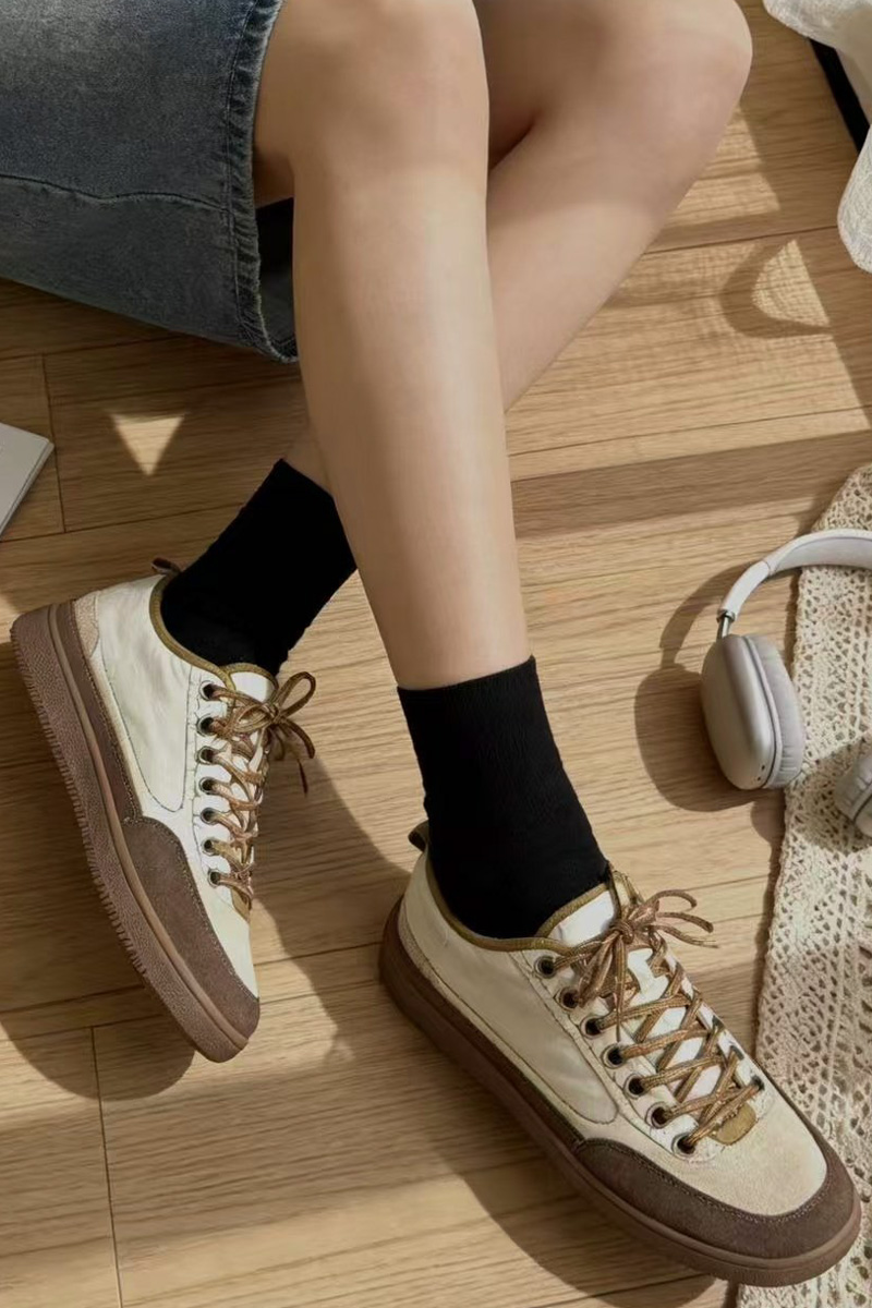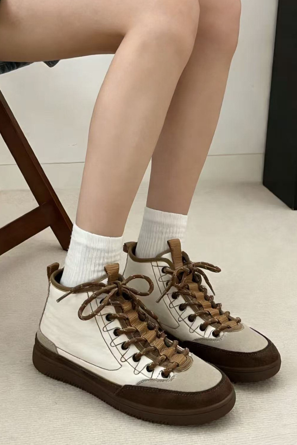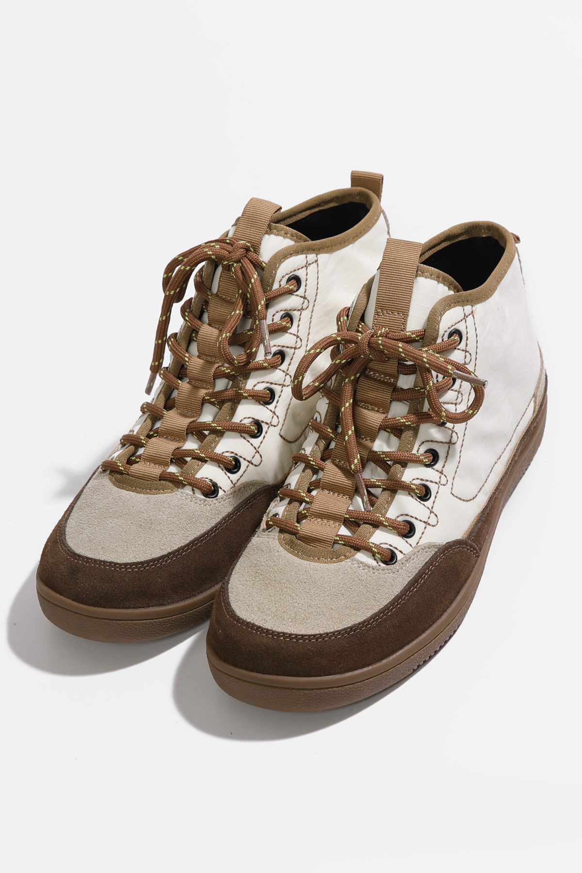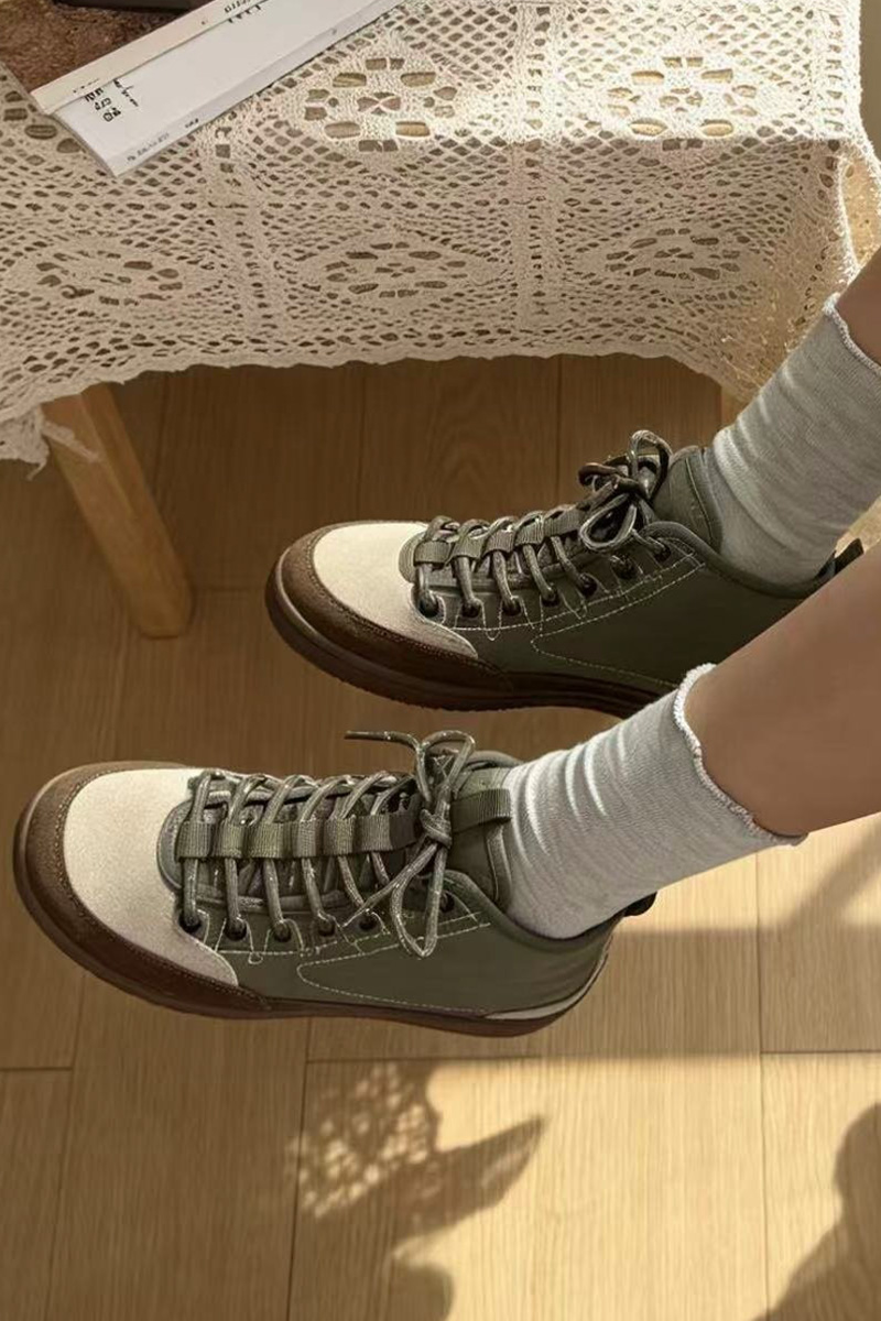 도심 속에서도 세련되게 완성되는 스니커즈 운동화 하나만 바꿔도 전체 분위기가 달라질 때가 있잖아요? 도심 속에서 세련된 무드를 완성해주는 디자인이랍니다! 발목선을 자연스럽게 감싸는 하이탑 실루엣과 안정적인 균형을 만들어 줄거예요. 편안함은 기본이지만, 살아있는 그런 스니커즈랍니다 :) 소가죽 스웨이드와 패디드 나일론의 조화 앞코와 사이드 라인은 소가죽 스웨이드로 제작되어 특히 베이지와 진브라운의 투톤 배색은 고급스럽게 만들어준답니다! 발등을 덮는 본체 부분은 패디드 나일론 소재로 제작되어 겉면은 나일론, 안쪽은 패디드 소재로 발을 편안하게 감싸주는 점이 특징이에요. 발목까지 안정적으로 감싸는 실루엣 일반 스니커즈보다 발목선을 조금 더 감싸는 하이탑 디자인이라 안정적인 분위기를 만들어줘요. 또한 발등을 덮는 면적이 넉넉하게 설계되어 안정적으로 감싸지는 느낌이랍니다. 덕분에 간절기 아우터와 함께 매치했을 때 편안한 착용을 위한 사이즈 선택 정사이즈 기준으로 제작된 모델. 일반적인 발볼이라면 평소 사이즈 그대로 선택하시면 좋고 한 사이즈 업 후 스트링을 조절해 스트링 구조 덕분에 발등 핏 조절이 유연한 편이랍니다! 걸음이 가벼워지는 우레탄 아웃솔 밑창은 유연한 우레탄 고무 아웃솔로 제작되어 그래서 장시간 착용해도 발의 피로도가 비교적 적고 부드럽게 완화되는 느낌이에요. 아웃솔 바닥은 다양한 패턴 구조로 설계되어 궂은 날의 걸음부터 여행, 일상 외출까지 스포티한 감각을 더하는 스트링 구조 발등 부분은 스포츠 슈즈처럼 스트링 구조로 설계되어 있어요. 이 구조 덕분에 발등을 안정적으로 잡아주면서도 자연스럽게 유연하게 반응해요. 스트링 컬러 역시 본체와 톤을 맞춘 디테일이 인상적이랍니다. 카키 : 카키 스트링 오렌지 : 오렌지 스트링 아이보리 : 브라운 스트링 스타일에 따라 선택하는 컬러 아이보리 만들어주는 데일리 컬러 오렌지 전체 코디가 살아나요. 카키 편안함 위에 더해진 세련된 균형 단순히 편안한 운동화라기보다 한층 세련되게 만들어주는 아이템이에요. 소가죽 스웨이드와 나일론의 조화, 편안함과 스타일을 모두 챙기고 싶은 날, 스니커즈가 되어드릴 거예요 :)Urban Trek Chic