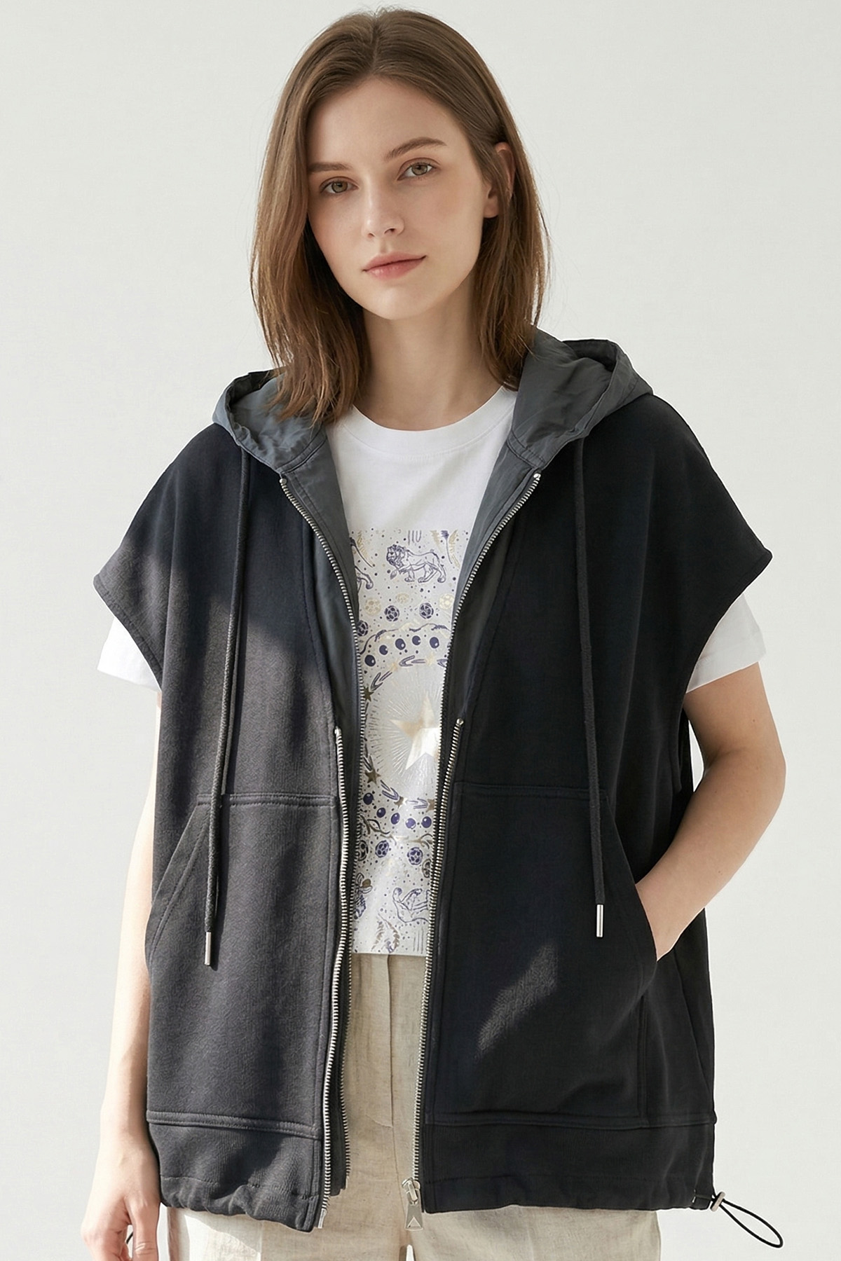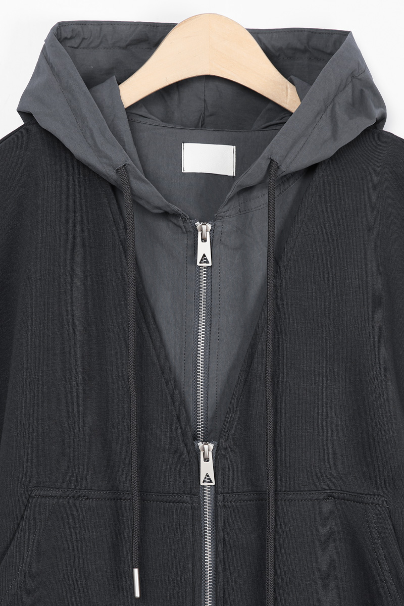 안쪽 후드 지퍼는 앞목 끝까지 올라와