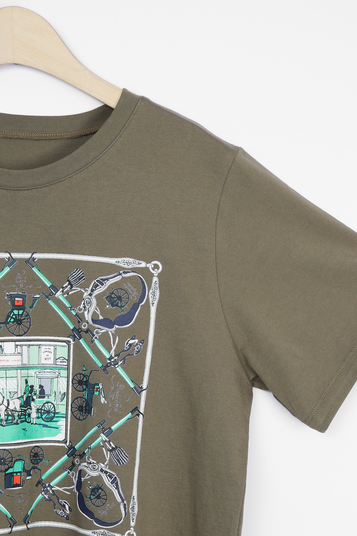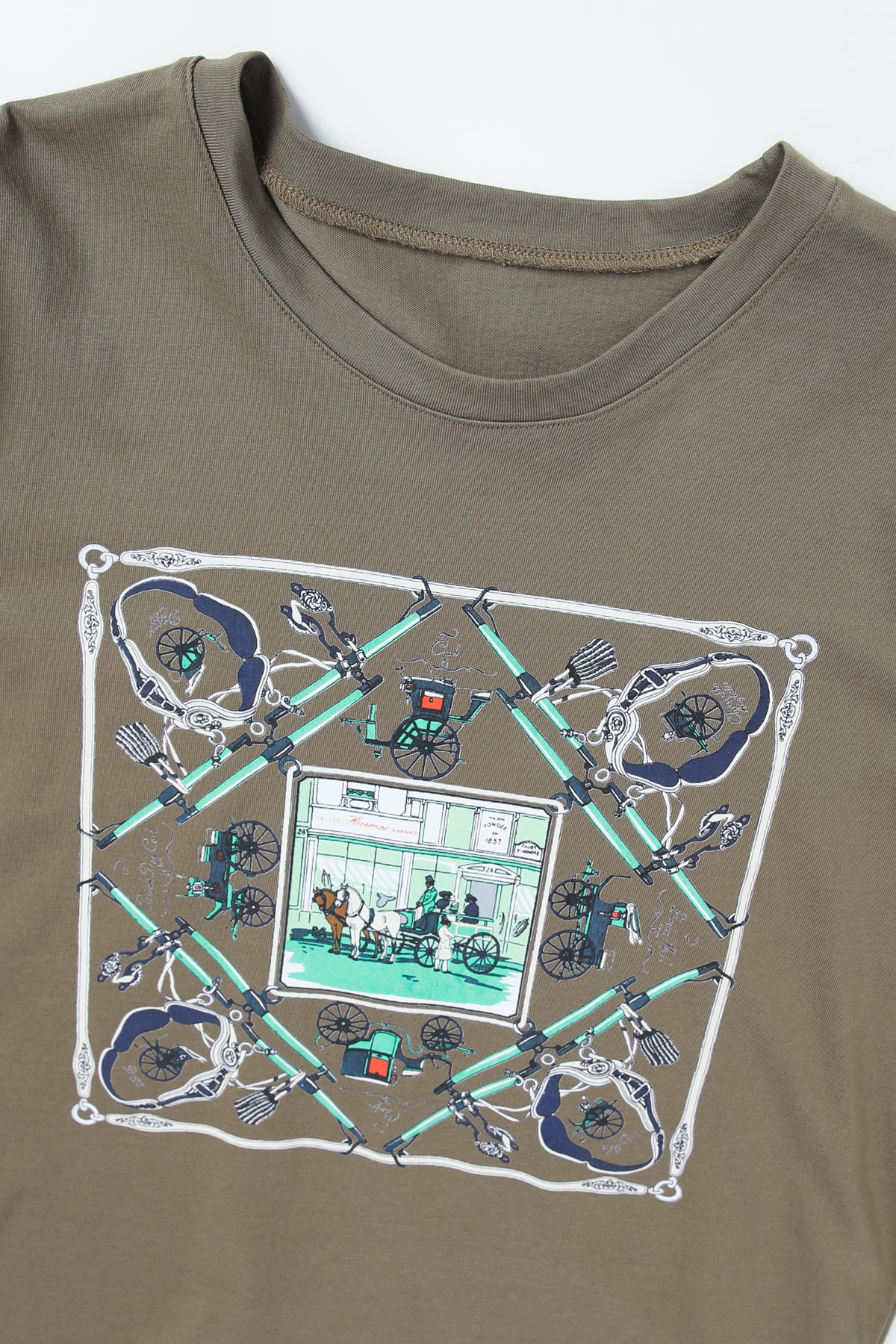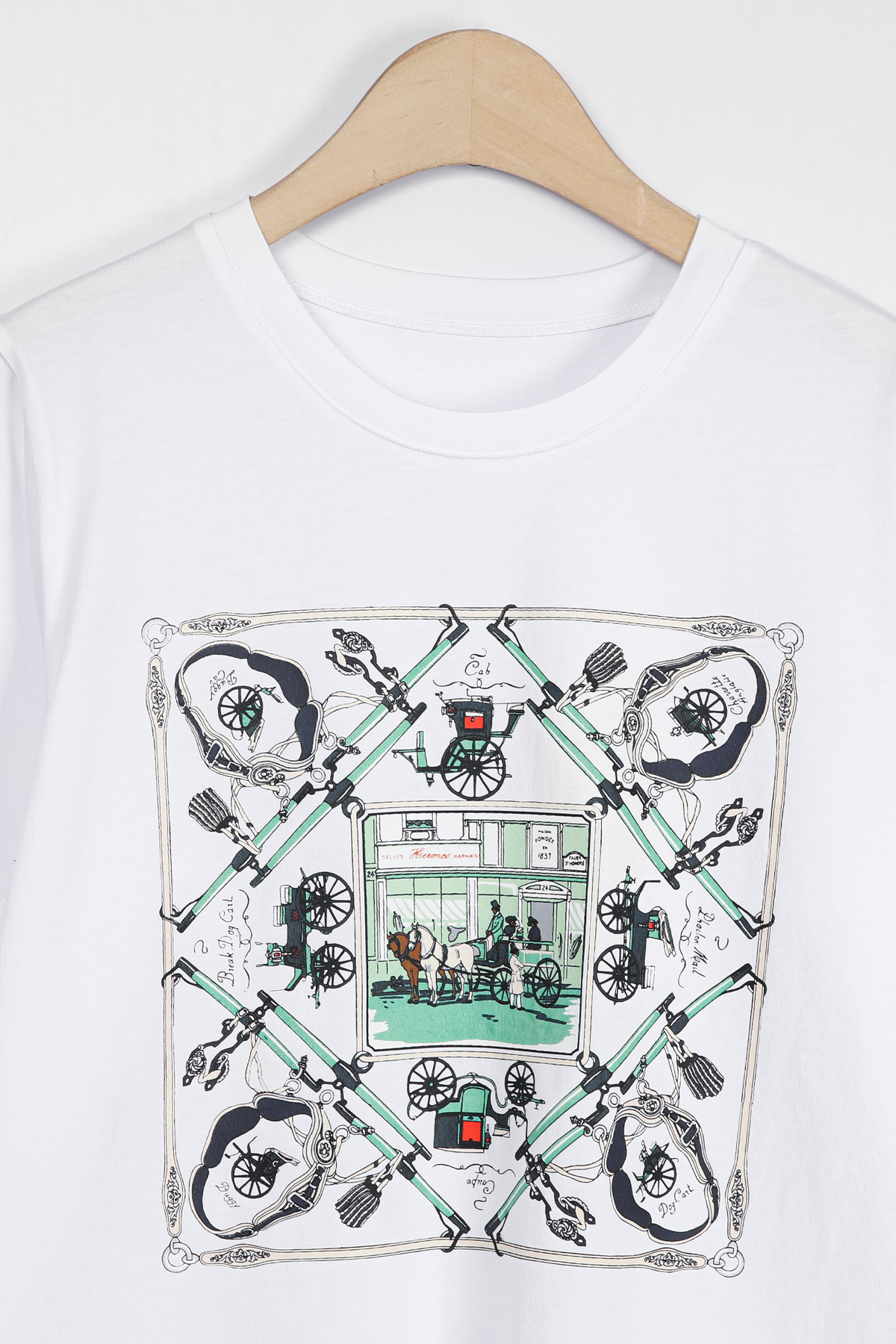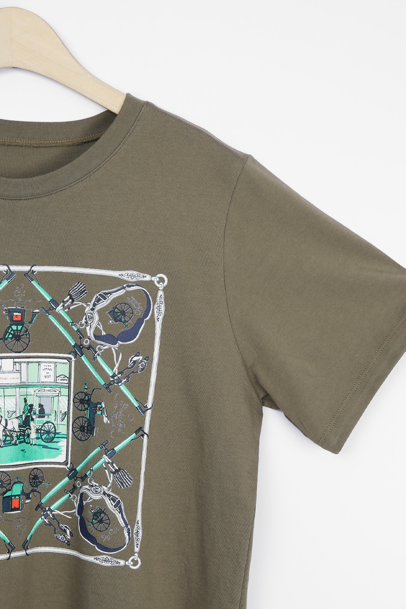 애써 꾸미지 않아도 느껴지는 감각, 티셔츠 한 벌의 그래픽이 전체 분위기를 바꾸어 드려요 :) 지금부터 여름 시즌은 물론, 가을철 아우터 속 이너로도 엉김 없이 활용하기 좋은 면 100% 티셔츠를 소개해 드려요. 고풍스러운 레트로 스타일의 전사 나염 디테일이 있어, 별다른 액세서리 없이도 충분히 감각적인 스타일링을 도와준답니다. 지금부터 적어도 5개월 이상 일상에서 가장 든든한 파트너가 되어줄 아이템이에요. 산뜻하고 가벼운 코튼 100 소재로 제작했어요. 자체적인 신축성이 있는 편이라 입고 벗을 때 뻣뻣함 없이 유연하게 몸을 감싸준답니다. 두툼하지 않고 선선한 질감을 갖추어, 지금 같은 봄부터 여름 내내, 그리고 초가을까지 단품으로 즐기기 딱 좋은 두께감이에요. 피부와 비슷하거나 살짝 낮은 온도를 유지해 주는 소재라 맨살에 닿는 느낌이 무척 쾌적하실 거예요. :) 차분한 카키와 깨끗한 화이트, 두 가지 컬러로 제작했어요. 카키는 비침이 전혀 없어 단독 착용이 무척 편안하고요. 화이트는 여름 기본 티 정도의 약한 비침이 있지만, 전면의 사각 나염 디테일이 시선을 분산해 주어 특히 가슴선 비침 부분 전혀 신경 쓰이지 않았어요. 두 컬러 모두 굳이 이너 슬리브리스를 챙겨 입지 않아도 되는 정도라, 한여름에도 한결 가볍게 착용하실 수 있답니다. :) 전면의 배색 나염은 원단 위에 열압착해 준 전사 나염 방식으로 제작되었어요. 이 덕분에 그래픽의 선명함과 레트로한 무드가 더욱 잘 살아난답니다! 오래도록 프린팅 손상 없이 입으시려면 케어라벨에 기재된 대로의 세탁을 권장드리며 부득이 직접 세탁하실 경우 뒤집어서 가볍게 단독 손세탁하시는 것을 권장해 드려요. 세심한 관리가 지속된다면 퀄리티가 오랫동안 무너지지 않고 항상 새 옷처럼 입으실 수 있어요 :) 양 옆목으로 살짝 여유를 둔 라운드넥 디자인이에요. 목에 타이트하게 올라붙지 않아 답답함이 없고, 오히려 목선이 가늘어 보이면서 여성스러운 분위기를 자아내는 기분이었어요. 코튼 100이지만 직조 특성상 자체 텐션 있어 입고 벗을 때 목선 안쪽으로 화장품 묻어날 염려 또한 없어요! ✔ 키 165 / 정 66 기준 스탠다드 레귤러 핏 어깨 & 소매: 어깨선이 기본형보다 약 여유 팔뚝 군살을 충분히 가려주는 넉넉한 3부 소매 기장 바스트 & 허리: 여성스러운 가슴선을 살리면서 허리선은 여유 있게 떨어지는 일자 핏 기장: 힙선과 중힙 사이를 가뿐하게 덮어주는 안정적인 길이감 짧뚱하지 않고 날씬해 보이되 레귤러핏으로 잘 빠진 디자인이라 55부터 66반까지 두루 예쁘게 소화 가능하셔요. 특히 소매 기장이 적당히 여유로워 팔뚝 가림이 필요하신 회원님들께 적극 추천해 드려요 :) 거울 앞에서 티셔츠 한 벌을 고를 때, 결국 손이 자주 가는 건 내 몸의 단점을 파악해 가려주고 동시에 편안하게 만들어주는 옷이죠. 흡습성과 통기성 좋은 코튼 100의 쾌적함, 그리고 데님 하나만으로도 코디를 완성해 주는 키치한 프린팅. 이 두 가지 조화가 주말과 평일 내내 기분 좋은 여백이 되어줄 거예요. 가볍게 툭 입어도 흐트러짐 없이 깔끔하게 떨어지는 이 핏, 하루를 시작할 때 자연스럽게 손이 가는 한 장이 되어줄 거예요!