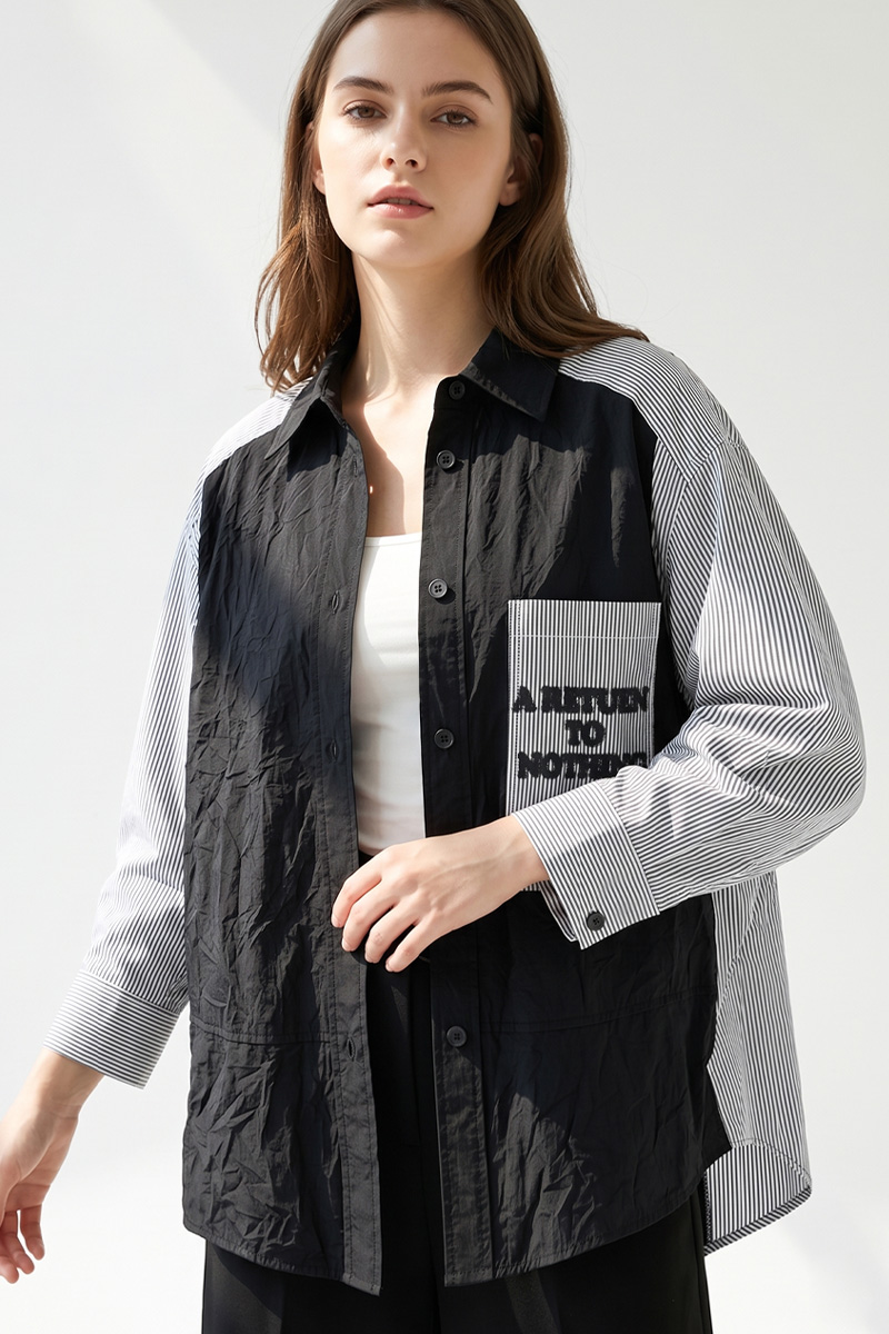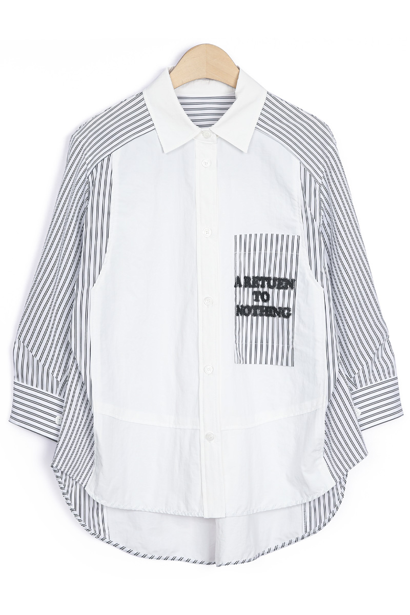 SH142 | 펄 니트 레이어드 텍스처 블록 셔츠, 오피스웨어 에센셜