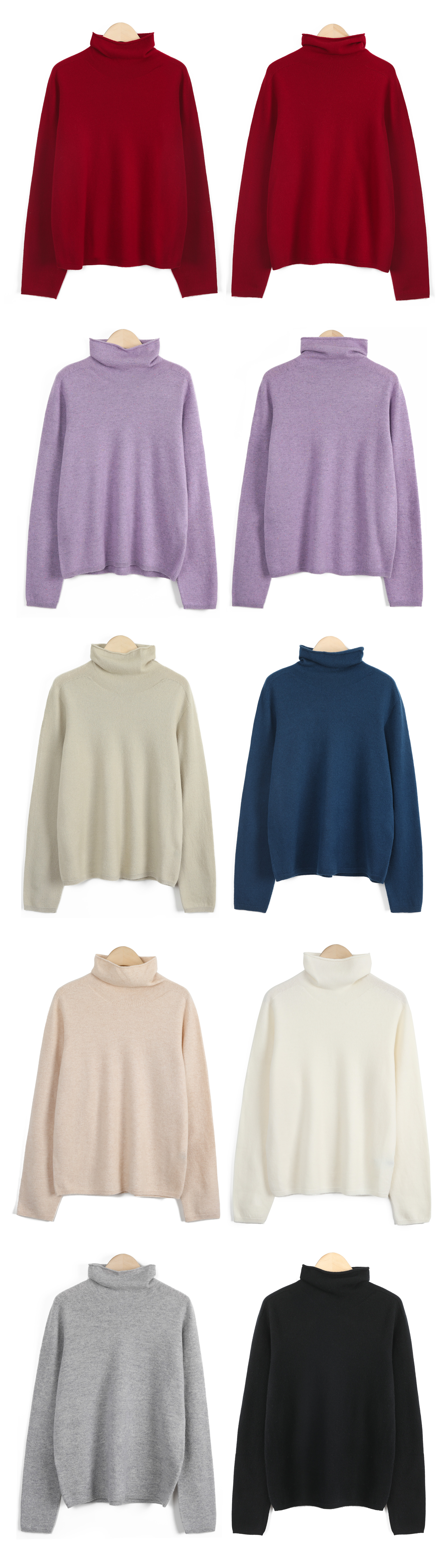 KNIT265 롤업 터틀 소프트 울 100 니트