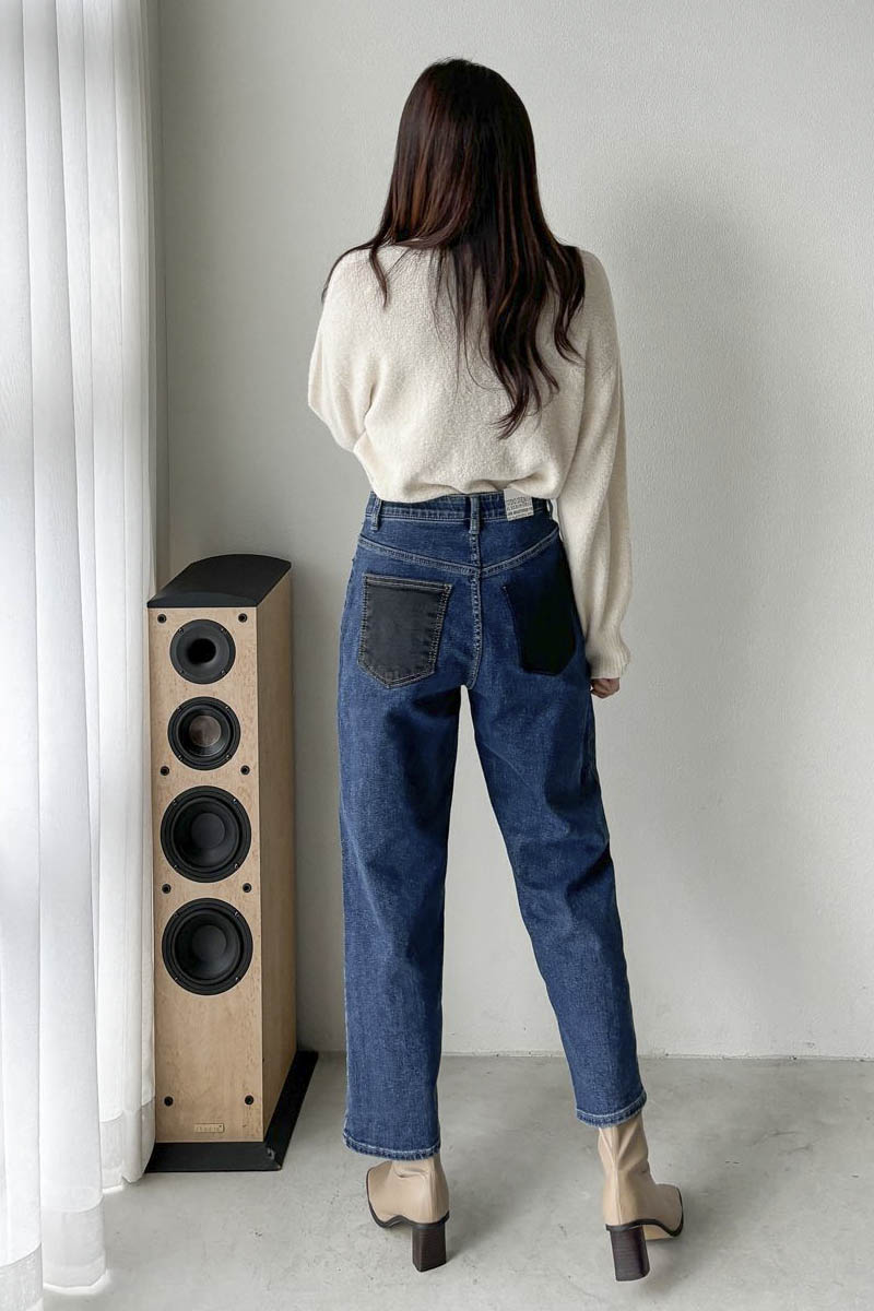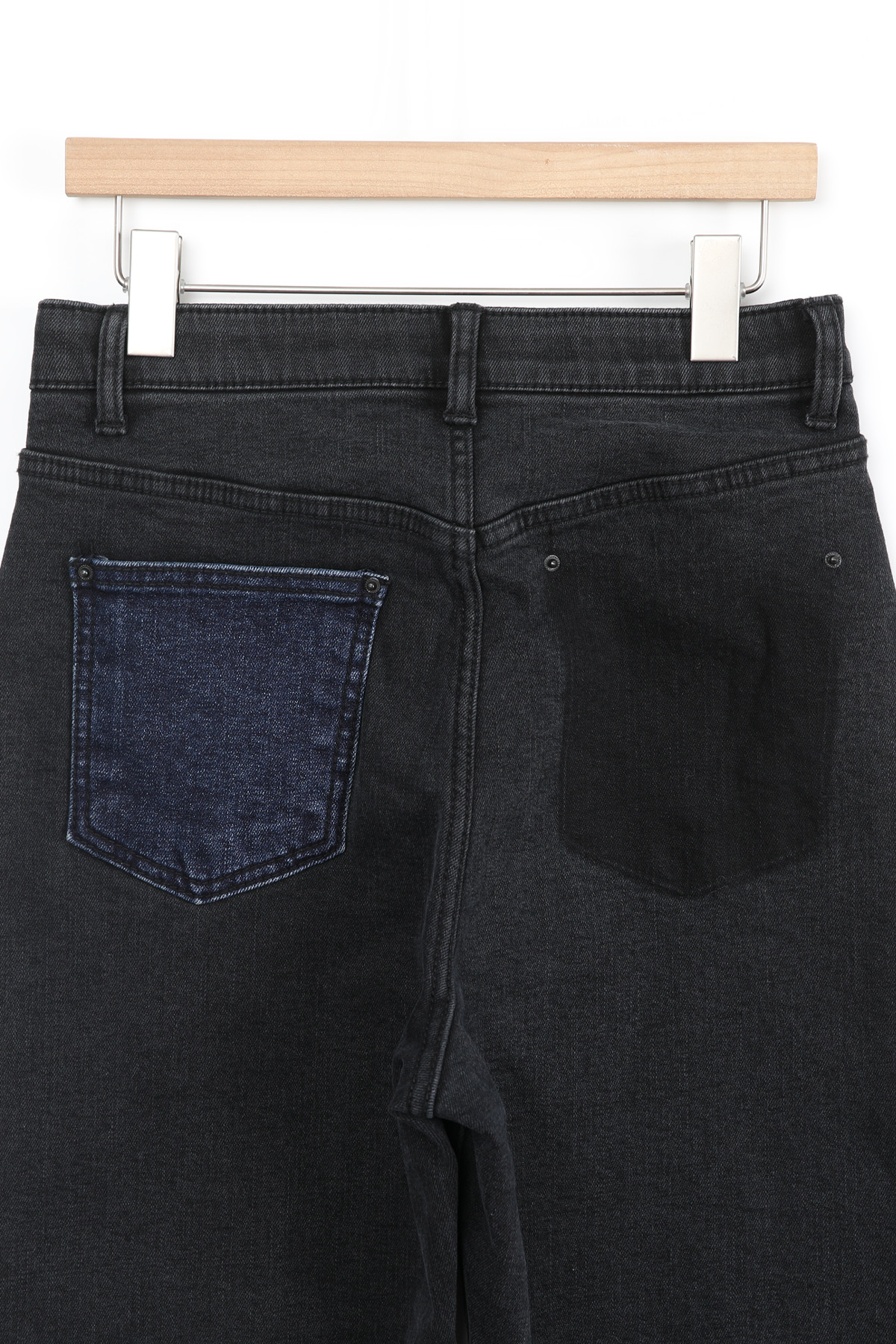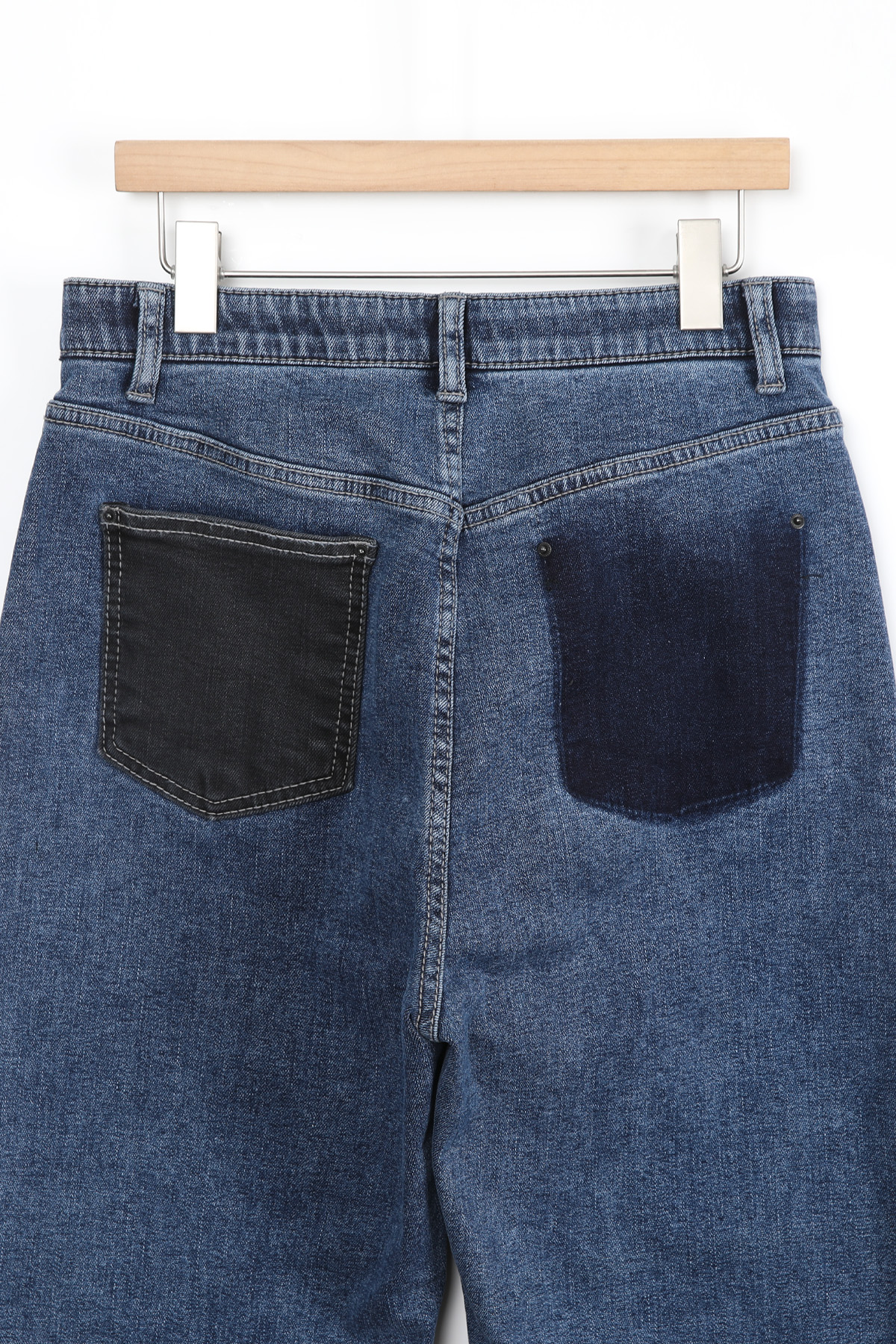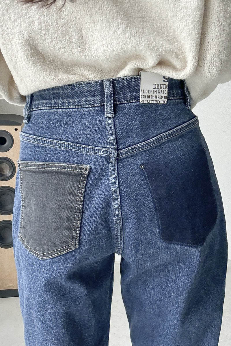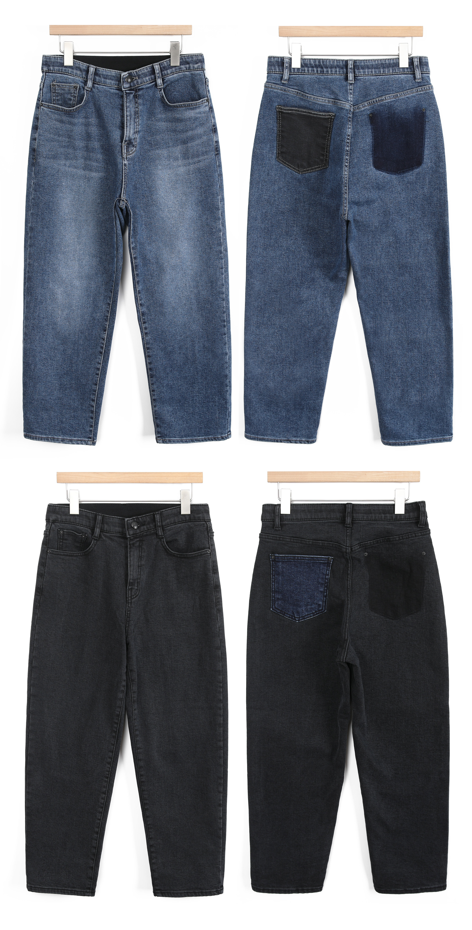 착용 기준 오른쪽 엉덩이 포켓은 생지 원단이에요