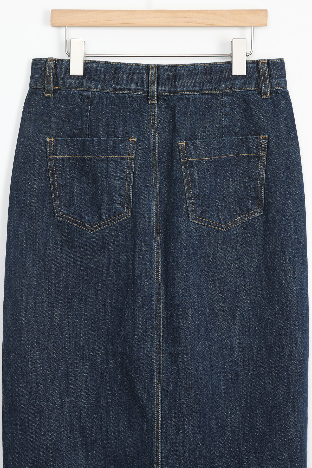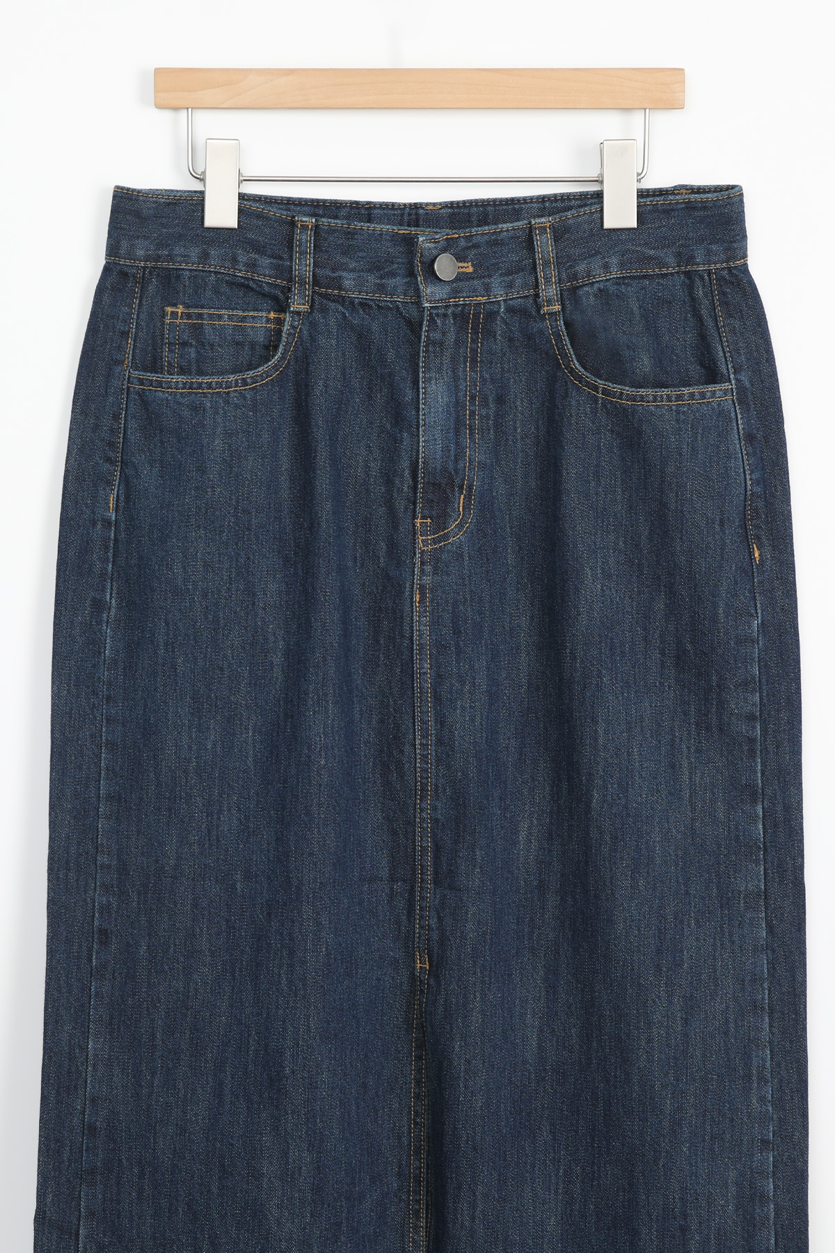 -소재 코튼 100데님 소재만의 감각적인 워싱과 프론트 슬릿 디테일로 활동성을 더한프론트 슬릿 데님 스커트입니다경쾌한 아웃 스티치 라인과전면 중앙 하단에 슬릿 디테일이 돋보이며,롱한 기장감으로 하체 군살을 감쪽같이 쏙! 커버해주는 여성스럽고 세련된 실루엣의 데님 스커트에요프론트 포켓을 추가하여 실용성을 높였고탄탄한 코튼 100 소재를 사용하여구김에 민감하지 않아생활 링클 염려없이 착용 가능하고 높은 내구성으로 원단 변형이 적어 오랫동안 착용하실 수 있어요바람이 잘 통하는 구조로 흡습성이 뛰어나땀을 흘려도 쉽게 흡수되어 산뜻하고 보송한 컨디션을 유지해줘요
