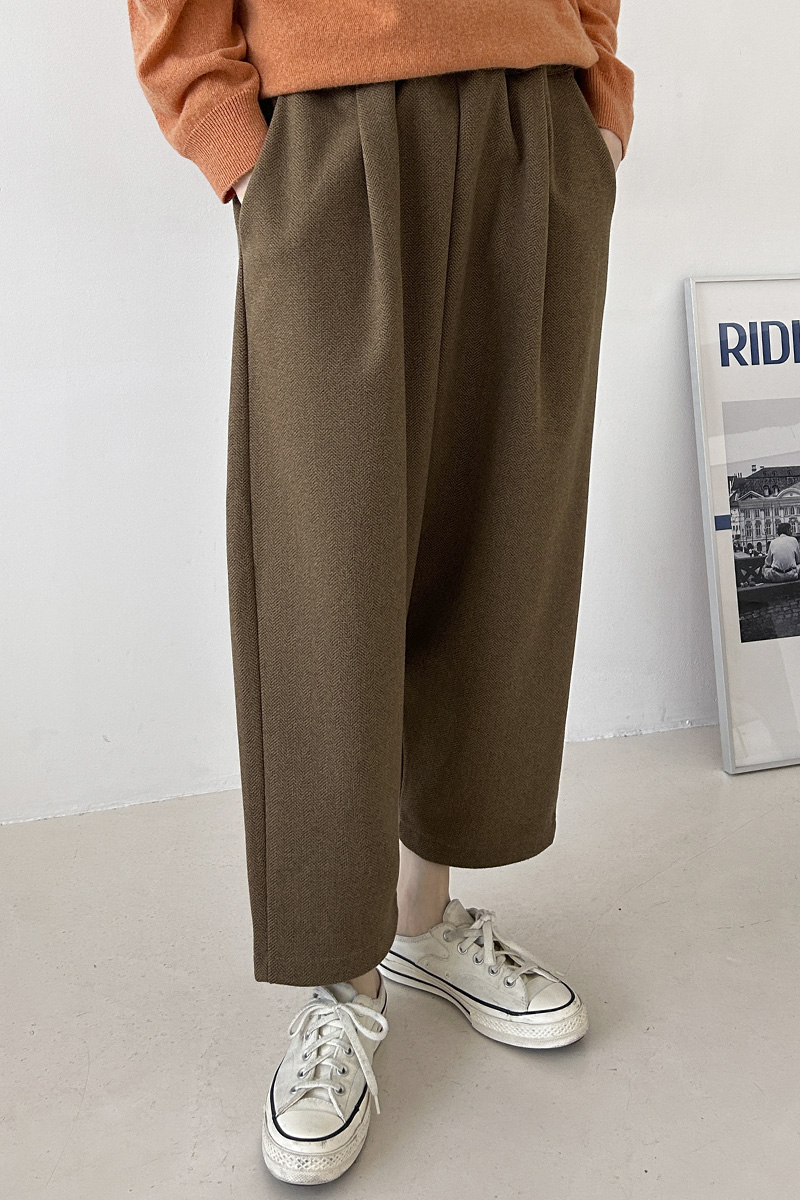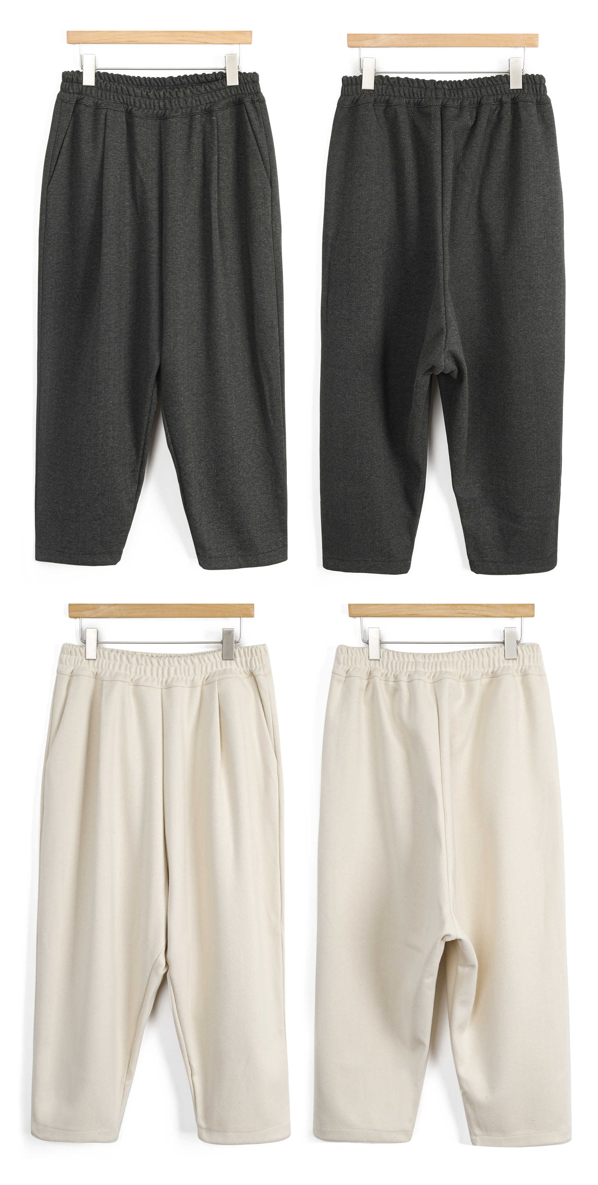 여유있는 와이드 배기핏 실루엣으로도톰한 두께감에 피치기모를 추가해겨울 시즌 내내 든든한기모 밴딩 배기 팬츠 소개해드려요
