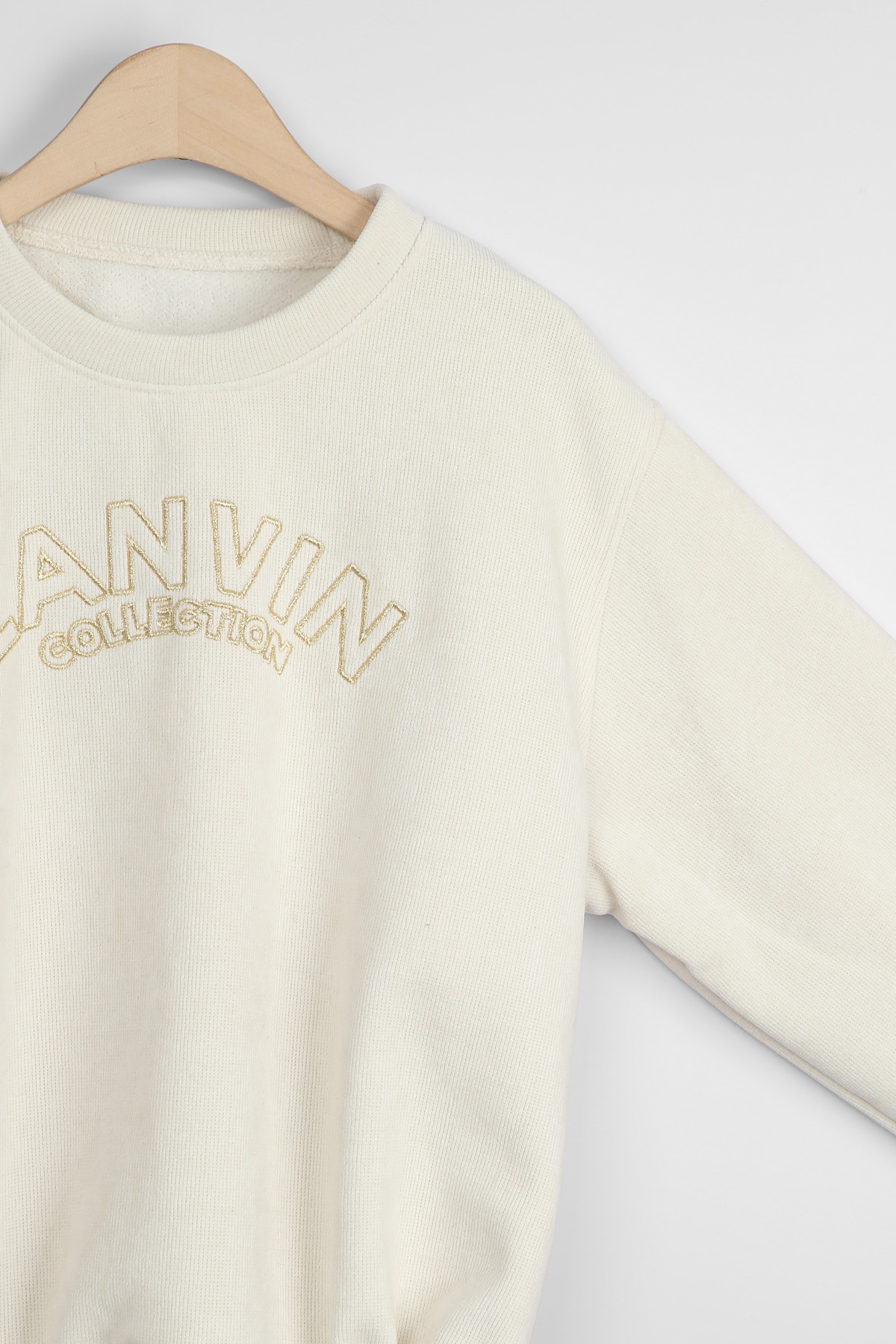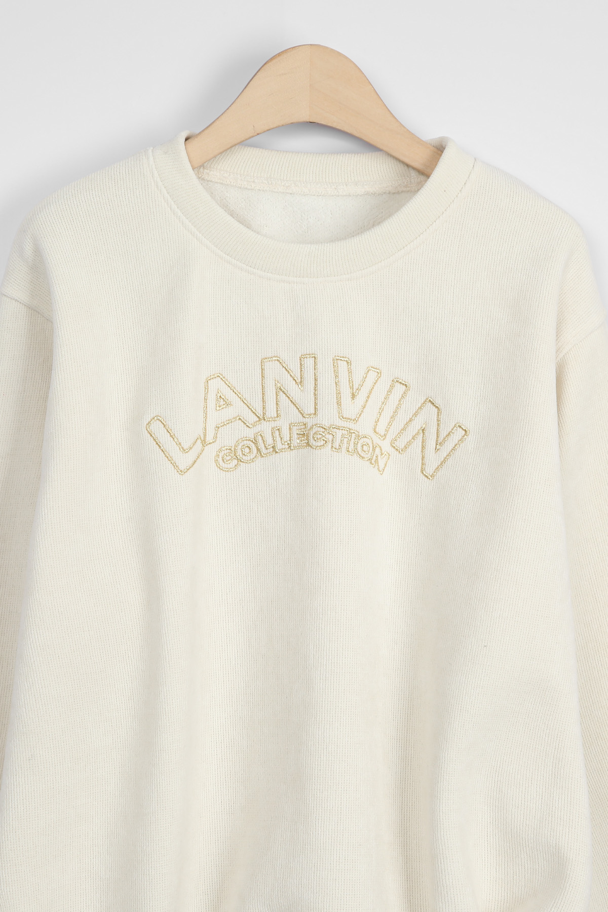 배색 바지로 착용한 아이보리 컬러 일자 팬츠는