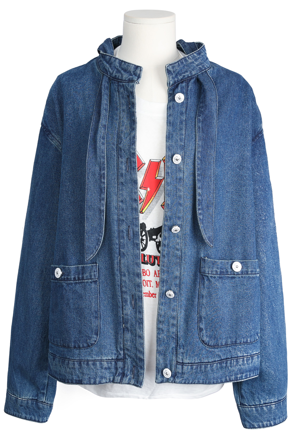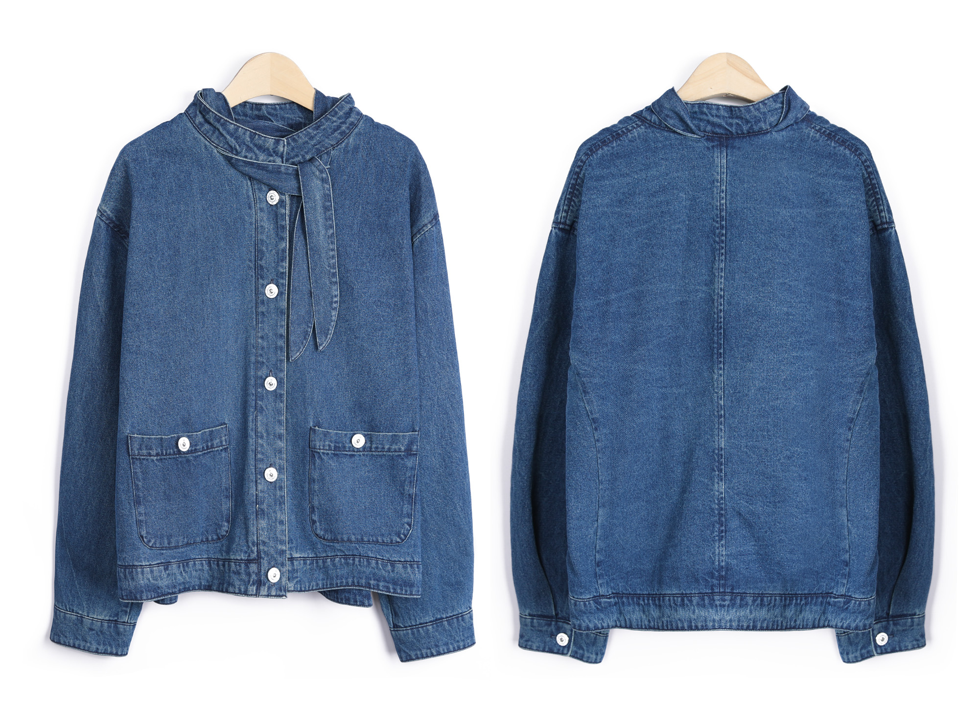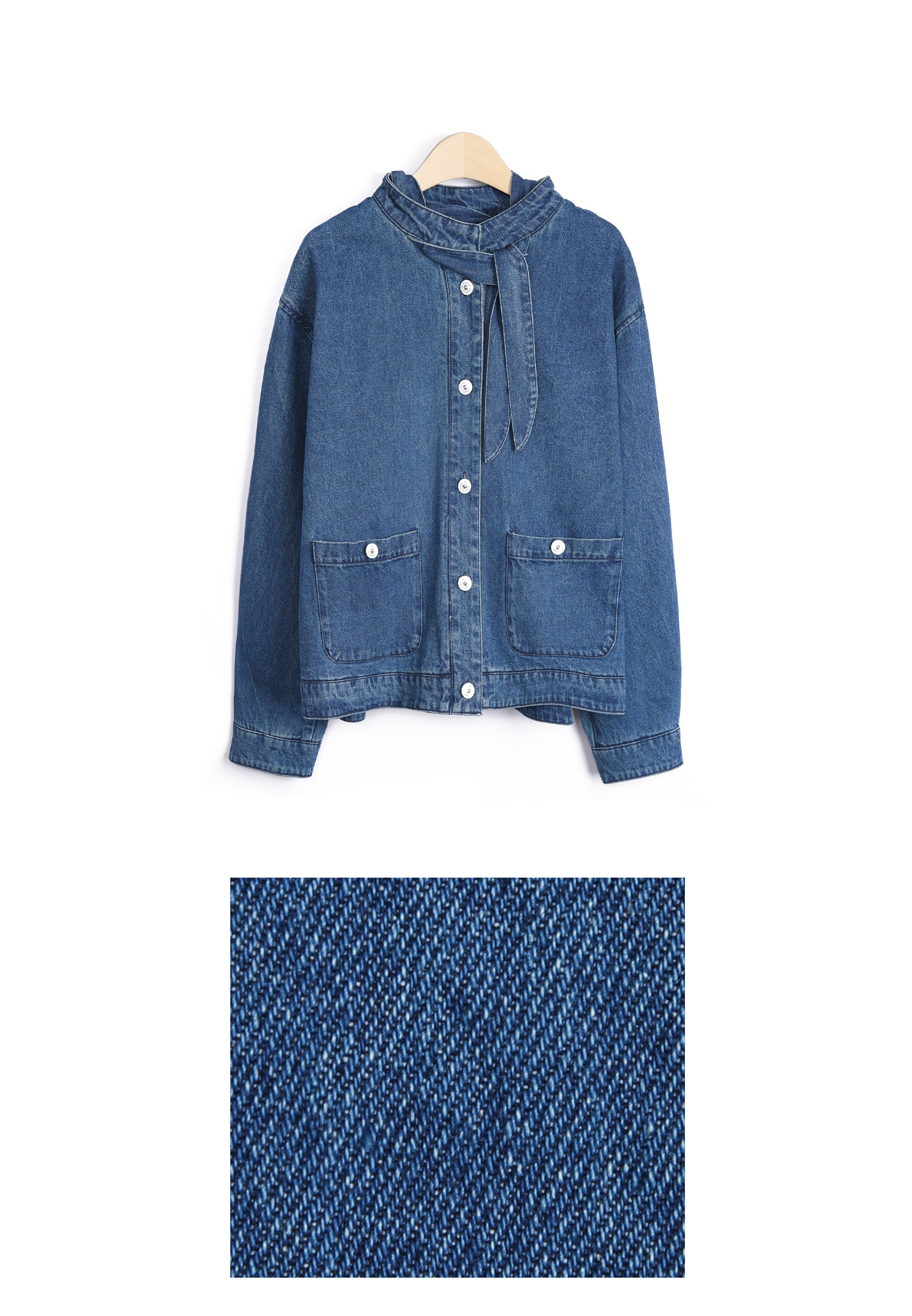 JK465 스카프 패널 데님 자켓