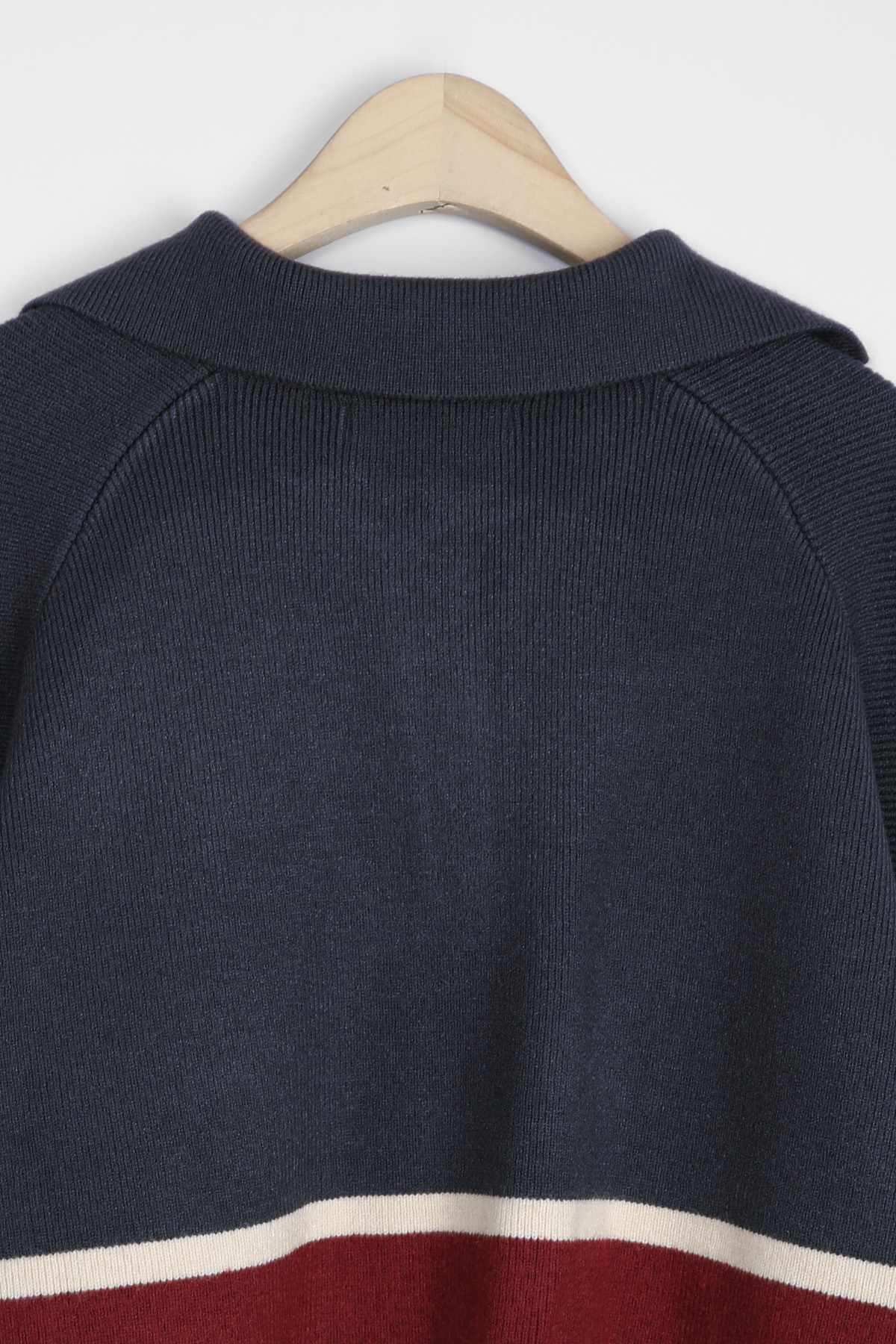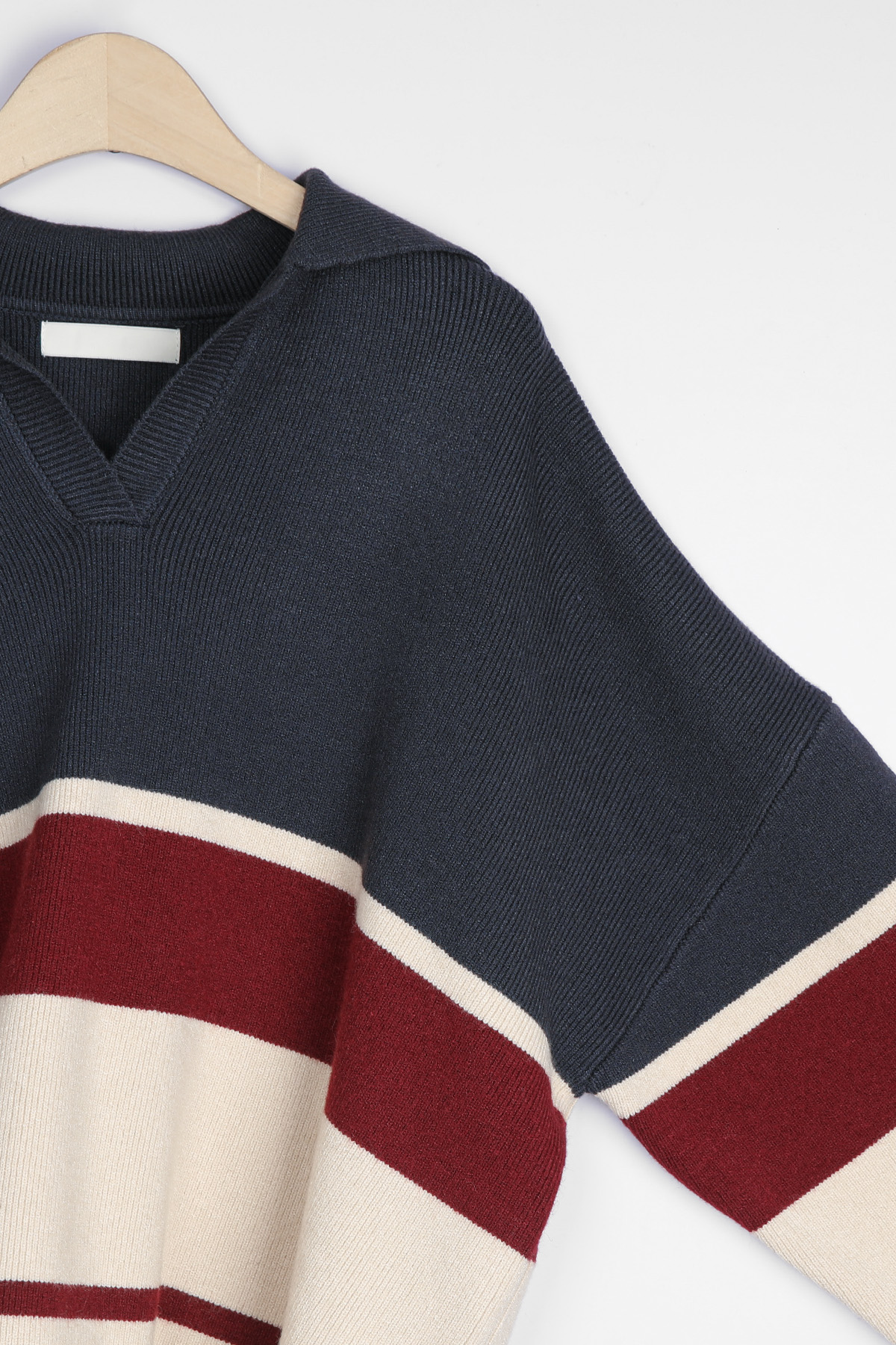 폴로 카라와 브이넥 디자인을 조화롭게 결합하여