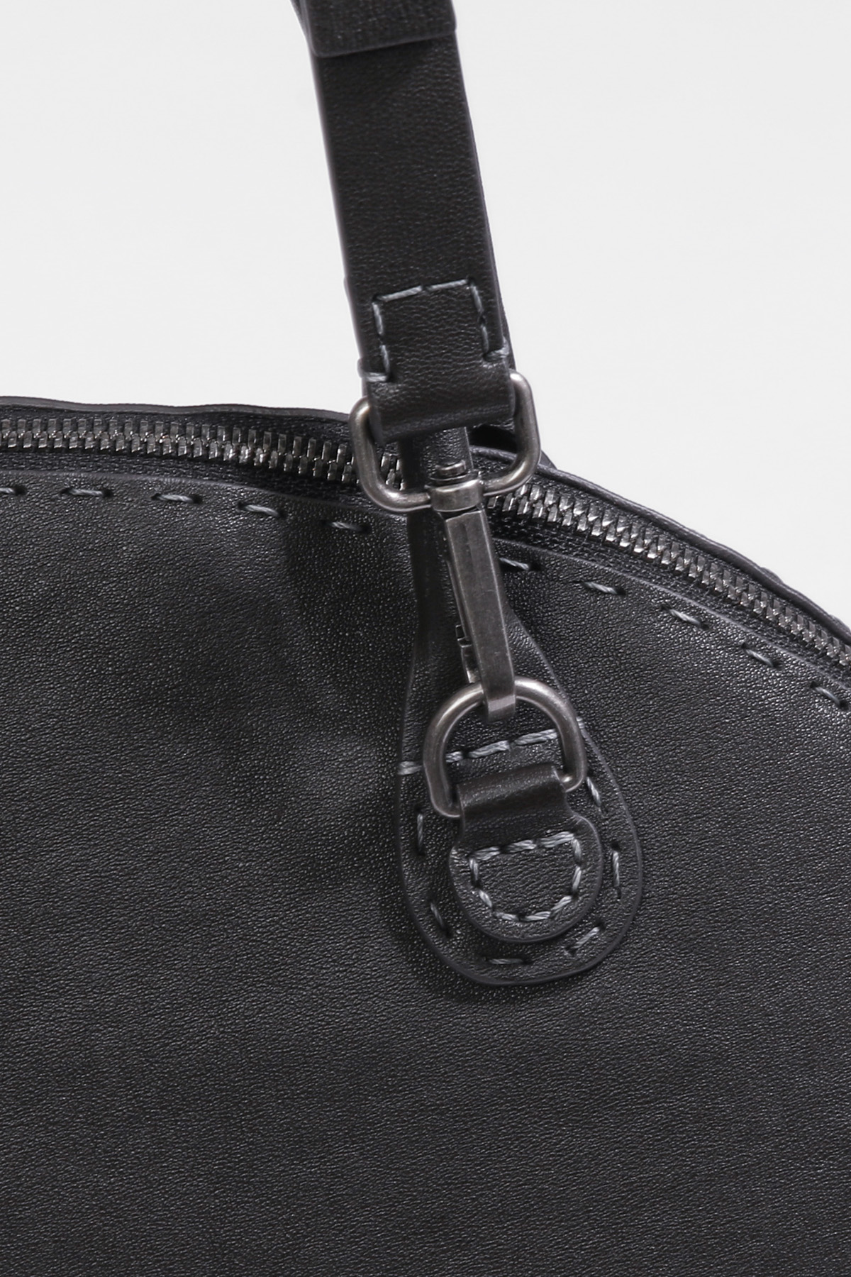 빛을 입은 반달의 구조 첫 인상은 단정하지만 결이 다른 깊이를 보여줘요. 옴브레지아토 가죽 특유의 명암이 어우러지며 작은 요소에서 드러나는 완성도 지퍼 고리는 좌우 어디서든 열 수 있도록 구성되어 세심하게 고려했어요. 스톤·구슬 디테일은 자연스럽게 균형을 이루며 빛과 그림자가 만드는 깊이 옴브레지아토는 단순한 그라데이션이 아니에요. 먹차콜에 가까운 다크그레이와 블랙 사이의 오묘한 컬러는 자연광 아래에서는 은은한 차콜빛으로 드러나요. 탄력 있는 표면감이 빛을 깊게 받아 고급스러운 분위기가 느껴진답니다. 과하게 광택을 내지 않았지만, 조용히 반응하는 결이 참 세련됐어요. 구조로 완성된 반달 라인 상단은 부드러운 타원형 반달 구조, 폭이 자연스럽게 넓어지는 설계예요. 겉으로 보이는 크기보다 실제 내부 깊이와 폭이 훨씬 넉넉해 대형 못지않은 수납력을 갖추고 있어요. 밑판 가로 길이는 성인 여성 손끝에서 팔꿈치 직전까지 오는 안정적인 비율이라 여유 있는 존재감을 줘요. 특히 측면을 보면 더 매력적! 입체적인 구조감을 형성했답니다. 그 설렘이 느껴지실 거예요 :) 실용성을 품은 정갈한 내부 안감은 코튼 캔버스 베이스로 가방 전체 공간을 자유롭게 활용할 수 있는 구조라HENRY Goat Ombreggiato Bag