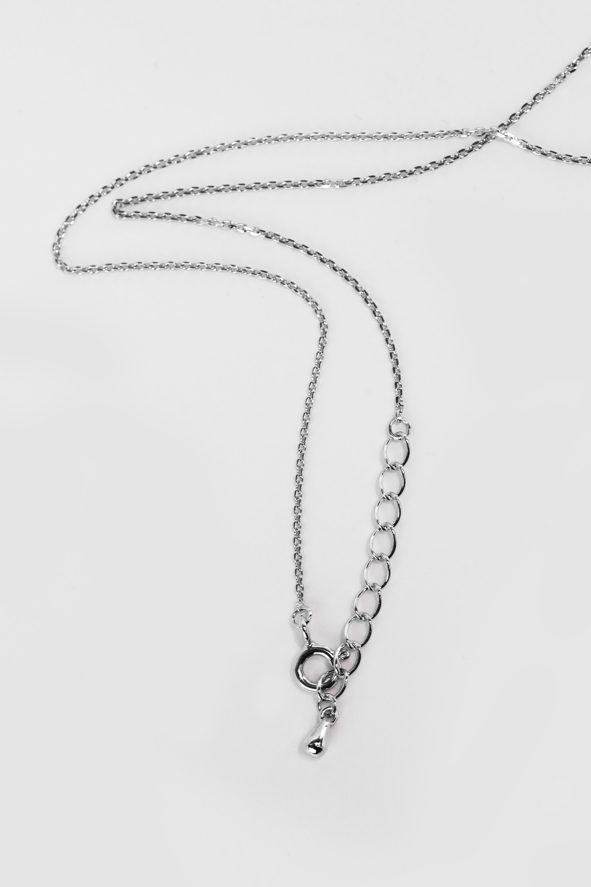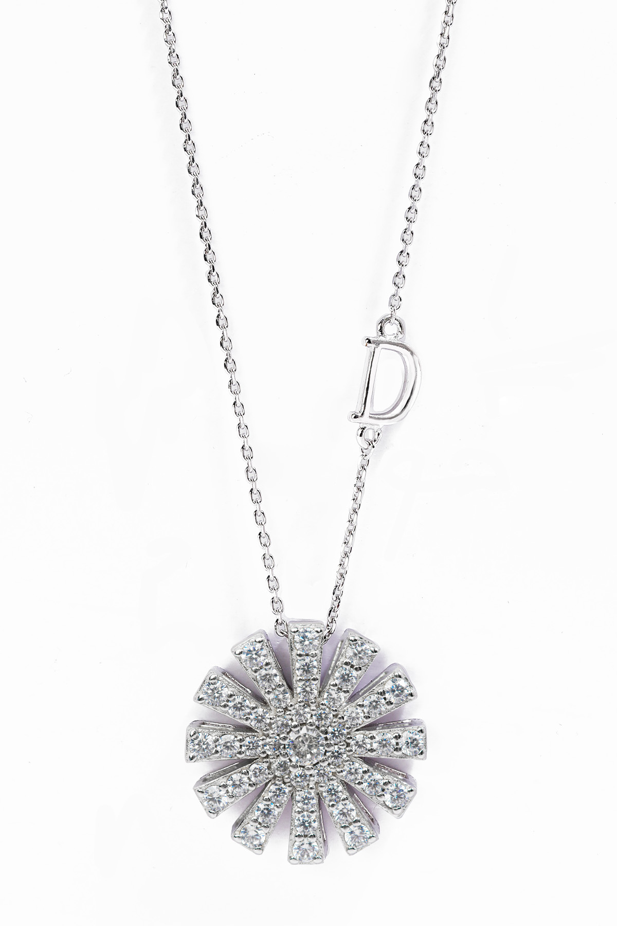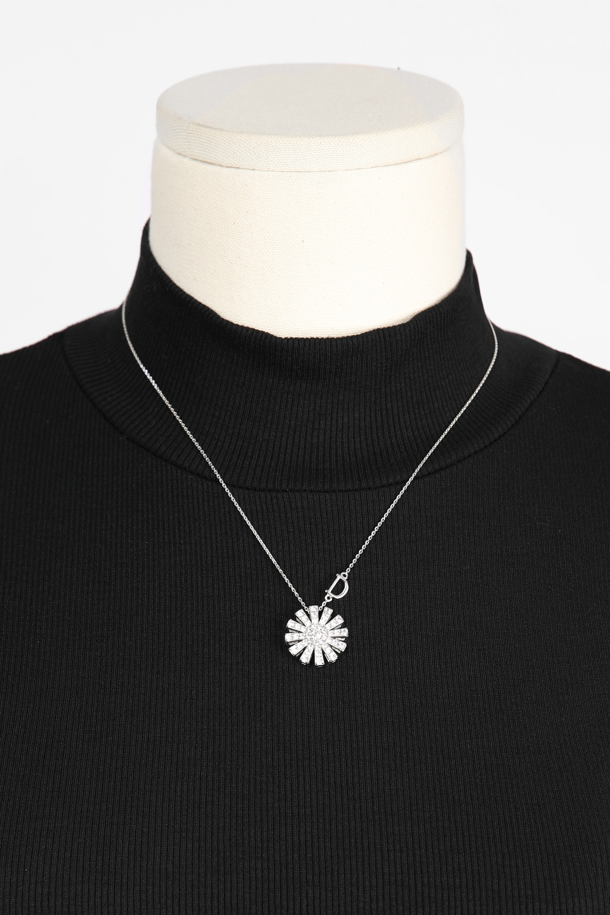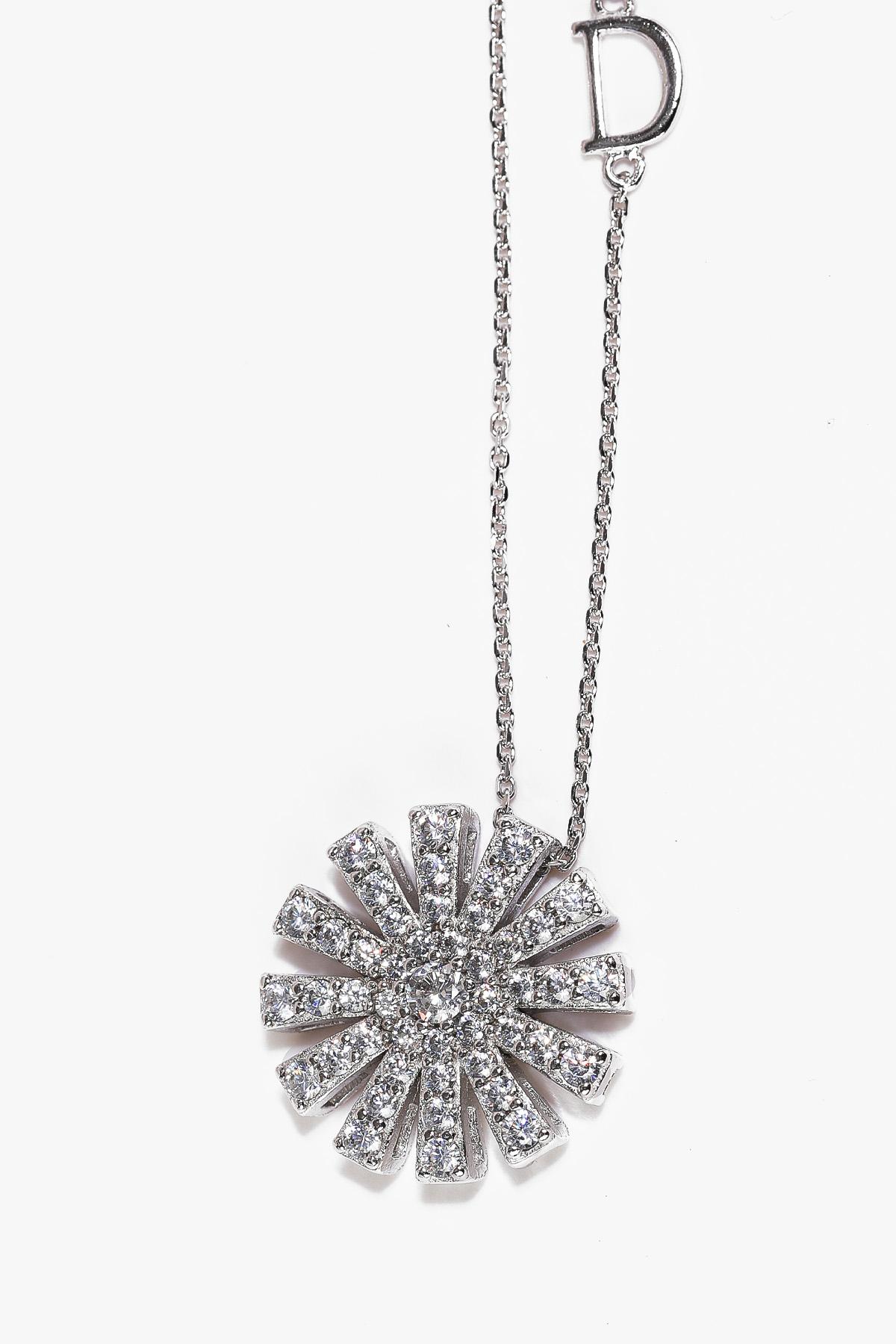 쇄골선을 지나 데콜테 라인에 안정적으로 안착하는 길이예요. 목이 가는 체형이라면 여유 고리를 최소로 사용해 유연한 고방 체인이라 체인 끝단에 펜던트가 연결되어 왼쪽 체인 방향에는 D 레터링 디테일이 더해져 앞면은 파베 큐빅 세팅으로 뒷면은 오픈워크 구조로 마감해 그래서 조명 아래에서는 물론, 각기 다른 반짝임을 보여줘요. 평면적인 실버 펜던트와는 다른, 차이를 느끼실 수 있을 거예요 :) 펜던트와 체인 모두 실버 925 소재로 제작해 총 무게 약 5.43g으로 하루 종일 착용해도 목에 무리가 가지 않는