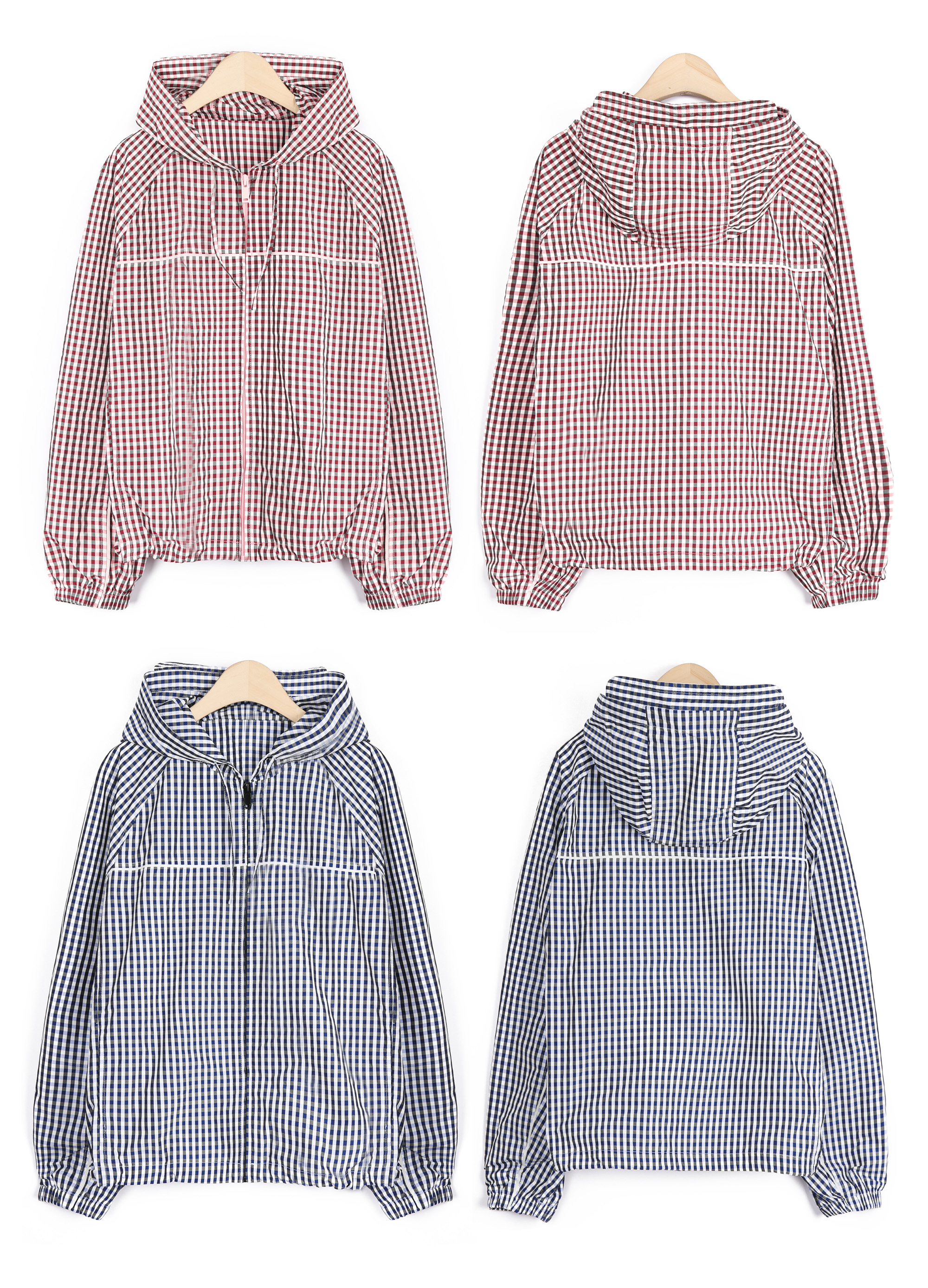 JUM515 체크 패턴 경량 바람막이 점퍼