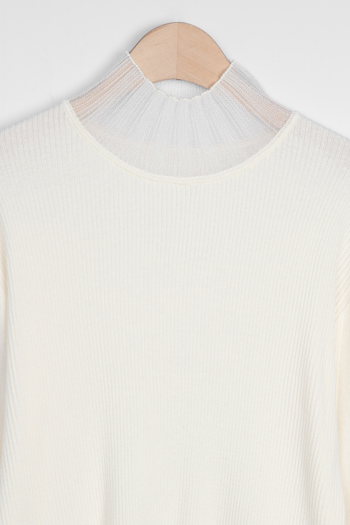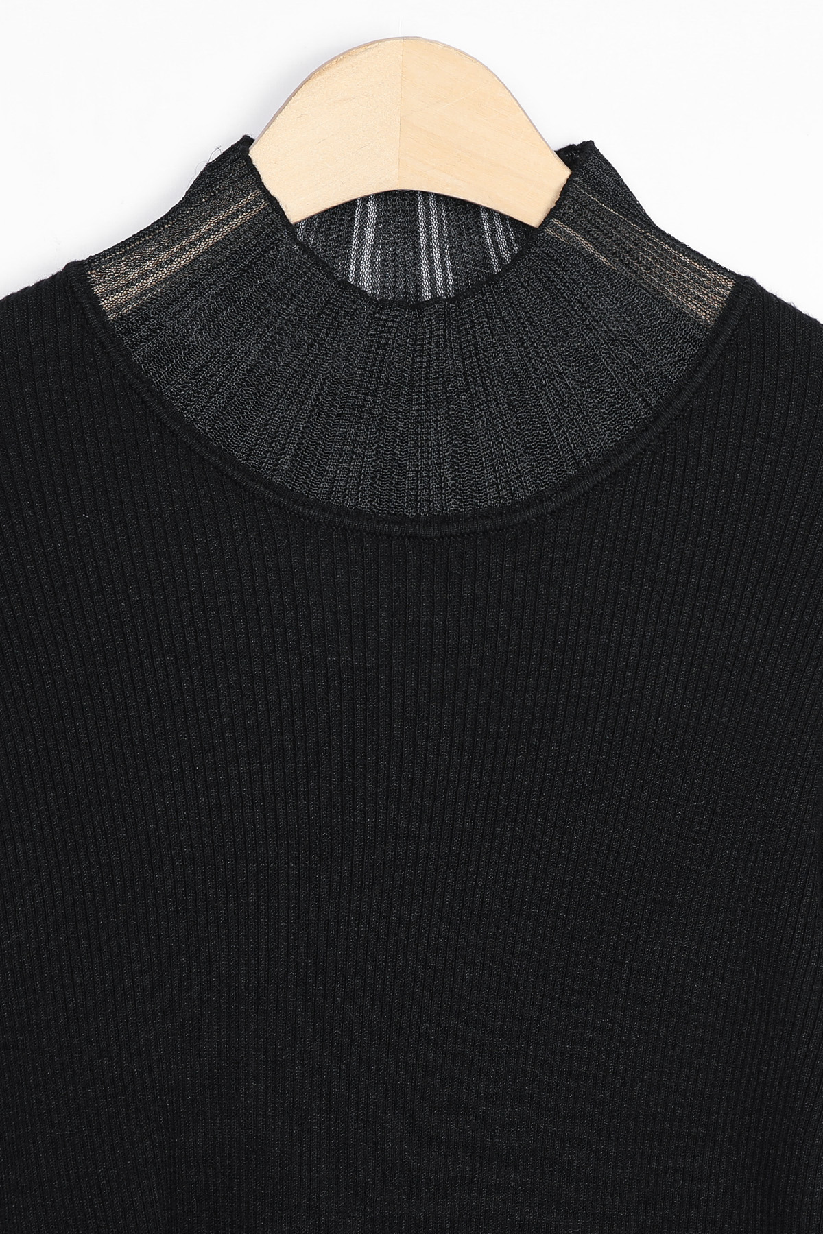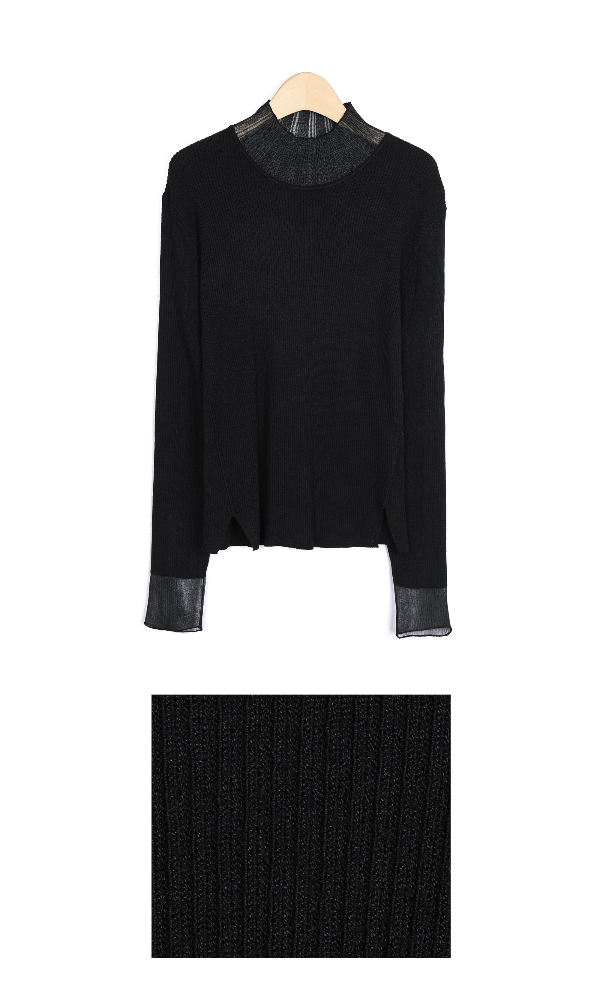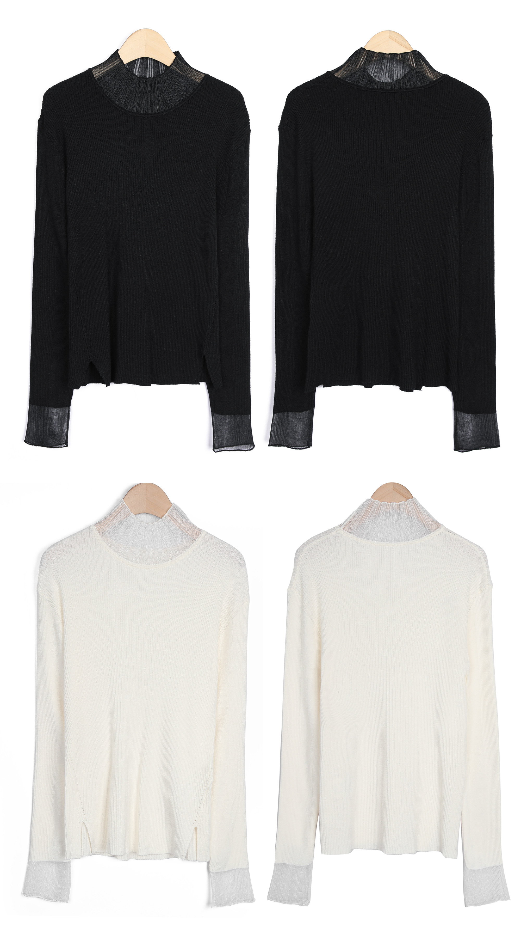 KNIT548 메쉬 플리츠 모크넥 슬림 골지 니트
